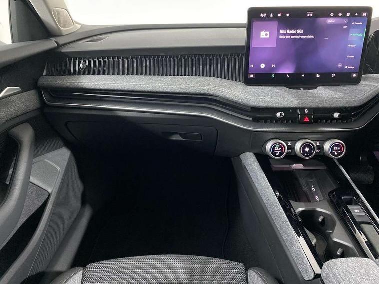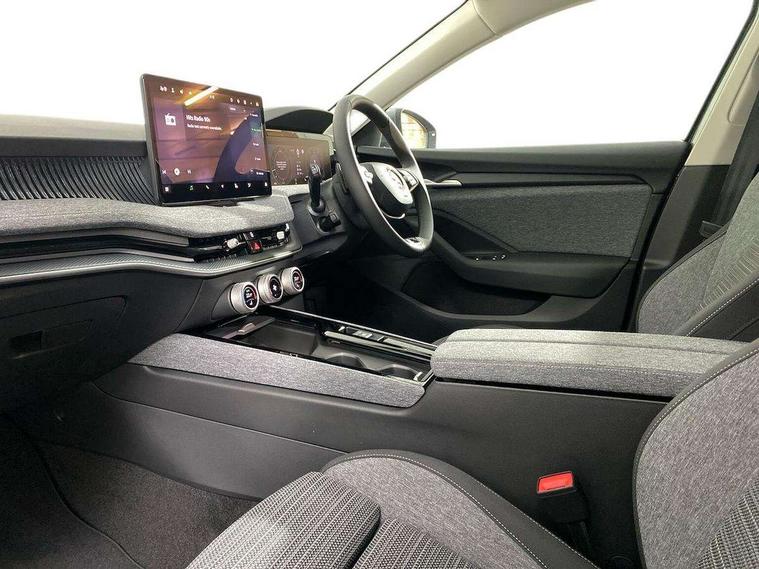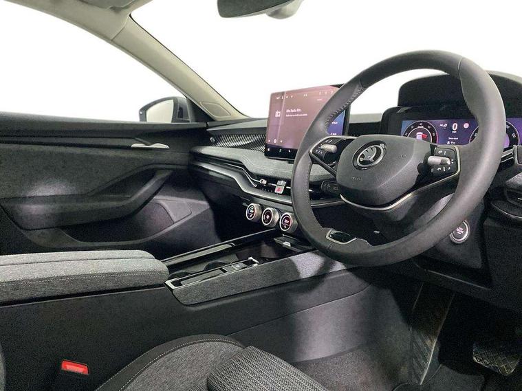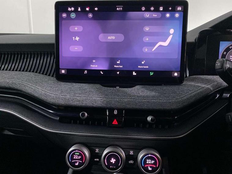 13" touchscreen display with satellite navigation, 4x USB-C ports (2x in front centre console and 2x in rear) (45W), Adaptive cruise control with speed assist, lane assist plus and traffic tram assist, Blind spot detection with door exit warning, Bluetooth system, CareConnect and Emergency Call, ChatGPT functionality, Driver fatigue sensor, Front assist with extended predictive pedestrian protection, Front cross traffic assist, PAS, Quick start all heating software functionality, Stop/start engine system, Traffic sign recognition, Turn assist with evasive assistance, Virtual Cockpit - 10.25" digital display, Voice control system, Washer for rear camera, Wireless charging for one smartphone (15W) with cooling function, Wireless smartlink apple carplay, SmartLink+ android auto, 8 Speakers, DAB Digital radio, Display cleaner, FM radio connection, Web radio connection, Acoustic side windows and interior noise suppression, Backdrop lighting, Body colour door handles, Body coloured door mirrors, Chrome window surround, Dark chrome grille surround, Electrically adjustable, heated, folding and driver side auto-dimming door mirrors with integrated indicators and logo projection, Frameless auto-dimming rear view mirror with USB-C, Ice scraper in fuel tank cap, LED 3rd brake light, Light assist with High beam control, Light assistant (coming/leaving home/tunnel light), Privacy glass, Rear fog light (x1), Rear side wing doors, Unique dark chrome design logo on alloy wheels, Windscreen wipers with rain sensor, 12V socket 1x centre console 1x boot, 2x cargo elements in boot, 2x light in boot, 3 seat bench in 2nd row, 60:40 Split folding rear seats, Bottle holders in the front doors 1.5 litre bottle and rear 1.5 litre bottle, Cup holder in front with easy open mat, Front armrest with storage box, Front comfort seats, Heated front seats, Height adjustable driver and front passenger seats with 2-way electric tilt, 4-way pneumatic lumbar support, and extendable thigh support, Height adjustable front and rear head restraints, Height adjustable front passenger seat, Illuminated glovebox, Interior lights with control switches, Isofix child seat fittings in outer rear and front passenger seats, LED front and rear reading lights, Massage function for front seats, Single front passenger seat, Skoda lettering on steering wheel, Storage compartment with cover, Storage pockets on back of front seats, Sun visors with illuminated vanity mirrors, Ticket holder on A Pillar, Tri zone climate control, Umbrella in driver's door, 3 rear seatbelts, 8 Airbags - Front driver and passenger, front side driver and passenger, centre, curtain front and rear, drivers knee, Crew protect assist, Driver and passenger seatbelts with warning light, Electronic parking brake, ESC including ABS, EBV, MSR, ASR, EDS, HBA, DSR, RBS, CBC, multi-collision brake (MKB) and Auto hold, Hill hold assist, Power operated child lock in rear doors, Alarm with interior monitoring tilt sensor and back up horn, Backrest remote release from trunk, Electronic engine immobiliser, Keyless start/stop, Remote central locking with SAFE system, Third key, Decorative front door sills,