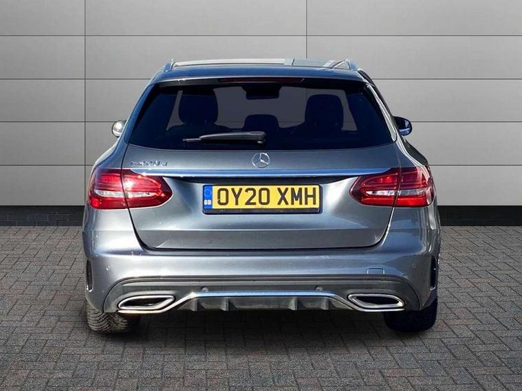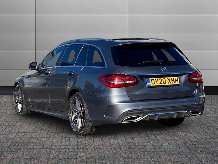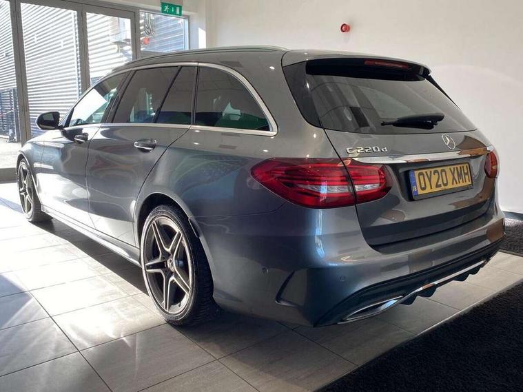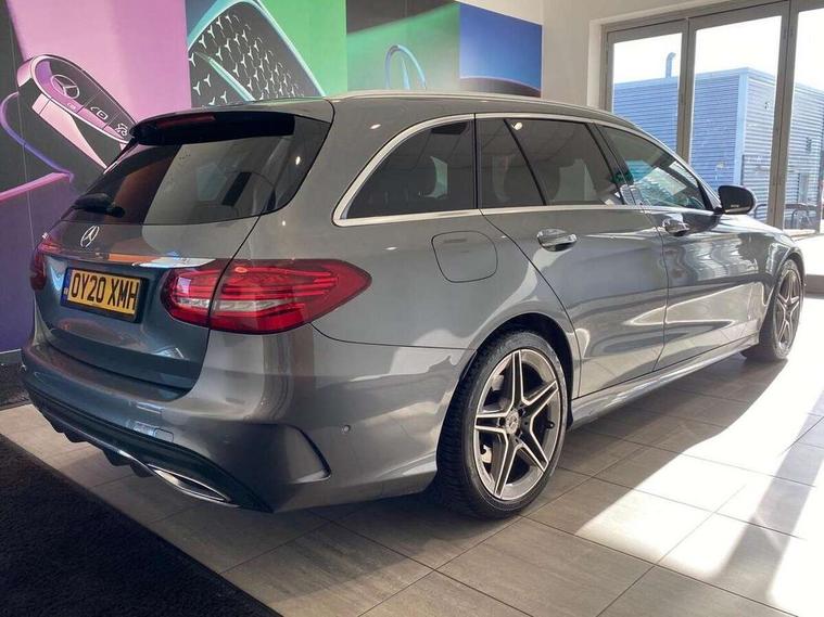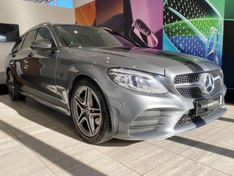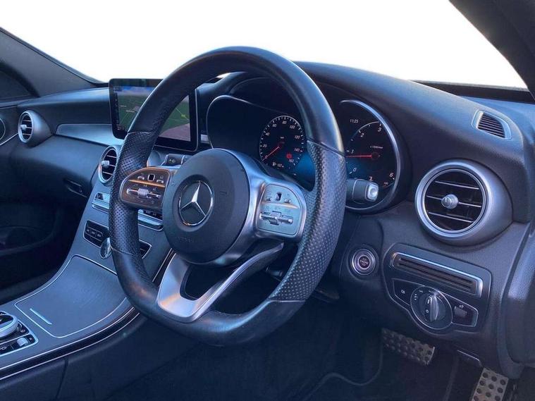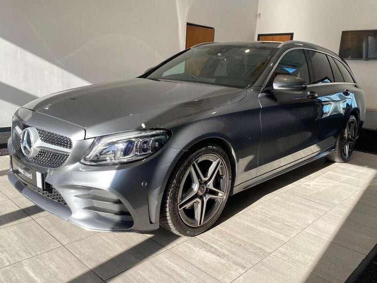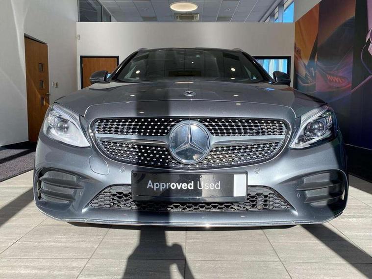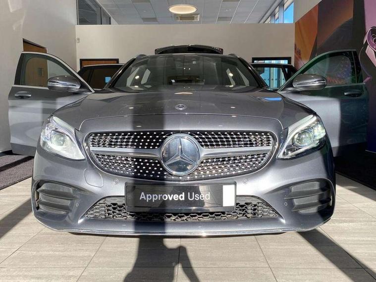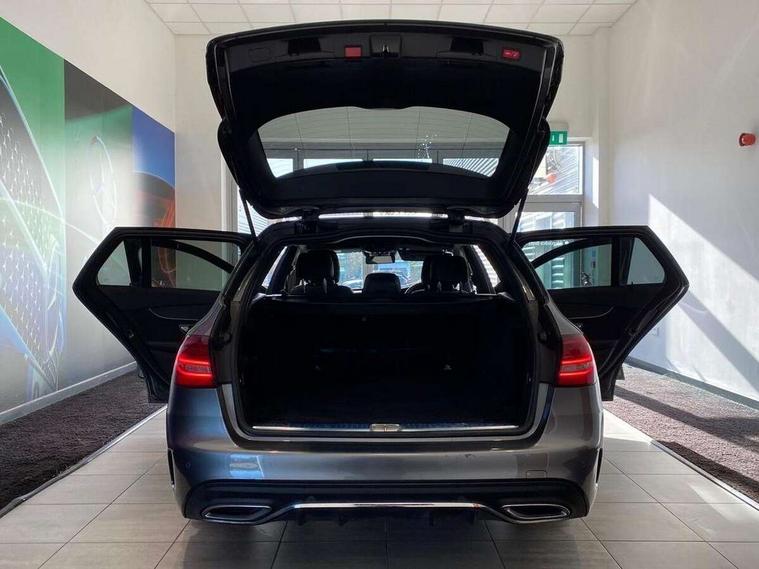 12.3" digital instrument cluster display, Active park assist with parktronic system, Analogue clock, Attention assist, Collision prevention assist plus, Colour display - 10.25" colour display screen, Cruise control with speedtronic variable speed limiter, DYNAMIC SELECT with a choice of driving modes (ECO, Comfort, Sport, Sport+ and Individual), Easy pack automatic powered tailgate, Mercedes connect me, Multi function trip computer, Outside temperature gauge, Remote boot release, Reversing camera, SD card based satellite navigation system, Service indicator (ASSYST), Sports direct steer speed sensitive steering, Status display for rear seat belts in instrument cluster, 66 litre fuel tank, Agility control sports suspension lowered by 15 mm, Diesel particulate filter, 2 USB ports and one SD card slot centre console, Audio 20 with integrated media interface and bluetooth handsfree function, DAB Digital radio, Frontbass loudspeakers, Steering wheel mounted audio controls, Adaptive brake lights, AMG body styling front apron, rear apron and side skirts, Automatically dimming rear view mirror and driver's exterior mirror, Body coloured bumpers, Body coloured door mirrors, Chrome pins diamond radiator grille with integrated stars, Chrome roof rails, Electric windows with one touch opening/closing and obstruction sensors, Electrically adjustable and heated door mirrors, Green tinted glass, Heated windscreen washers, LED Indicators, LED tail lights, LED third brake light, Multi beam LED headlights, Privacy glass (rear side windows and rear screen), Radio aerial integrated into rear window, Rain sensor windscreen wipers, Rear wiper, Side windows surround in polished aluminium, Twin tailpipe design integrated into rear bumper, 2 cupholders in front centre console, 3 spoke flat bottom AMG steering wheel in nappa leather with chrome inserts perforated leather grip, 40:20:40 split folding rear seats, AMG sports seats, Auto Mercedes-Benz child seat recognition sensor, Black floor mats with AMG lettering, Dual zone automatic climate control, Front and rear head restraints, Front centre armrest with storage compartment, Front door sills with Mercedes Benz lettering, Gearshift paddles on steering wheel, Heated front seats, Height/reach adjustable steering column, Illuminated glovebox, Leather upholstery, Load compartment cover, Multifunction steering wheel, Rear top tether child seat ISOFIX attachment, Sports pedals with stainless steel surfaces and rubber studs, Sunvisors with illuminated vanity mirrors, Lighting pack - C class, Mirror pack - C Class, Seat comfort pack - C Class, Stowage space pack - C Class, 3 rear 3 point seatbelts, Active bonnet, Adaptive brake system with HOLD function and brake drying in the wet, Anti-lock braking system (ABS), Black seat belts, Brake calipers with Mercedes-Benz lettering + perforated front brake discs, Child proof door locks, Drivers knee airbag, Drivers pelvis airbag, Dual stage driver/passenger airbags, Electronic parking brake, ESP with ASR, Front passenger seat occupancy sensor, Front side airbags, Hill start assist, Rear seatbelt warning indicator, Sports braking system, Tyre pressure monitoring system, Warning triangle and first aid kit, Window airbags, Alarm system/interior protection/immobiliser, Central locking with interior switch, automatic locking and crash sensor with emergency opening function, Chrome surround in electric key, Grey oak open pore trim, 18" AMG 5 twin spoke aero alloy wheels in tremolite grey, TIREFIT with tyre inflation compressor,