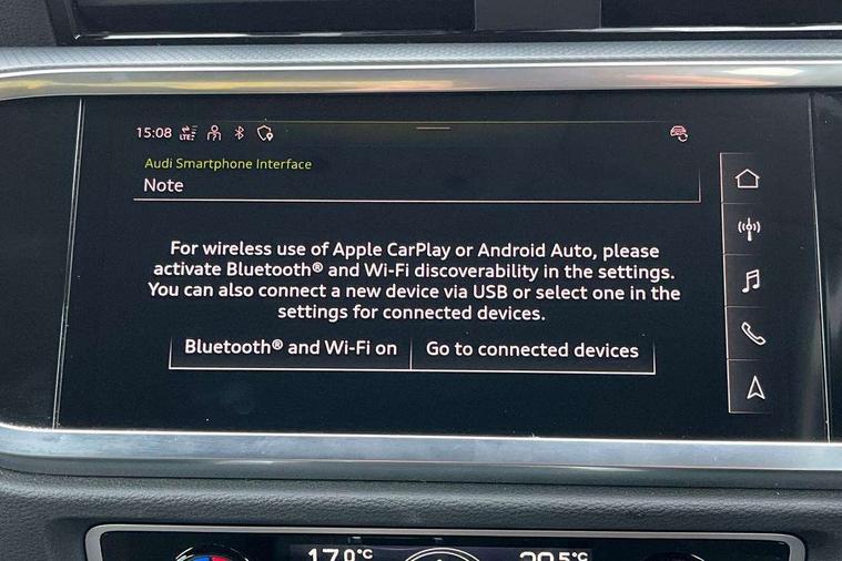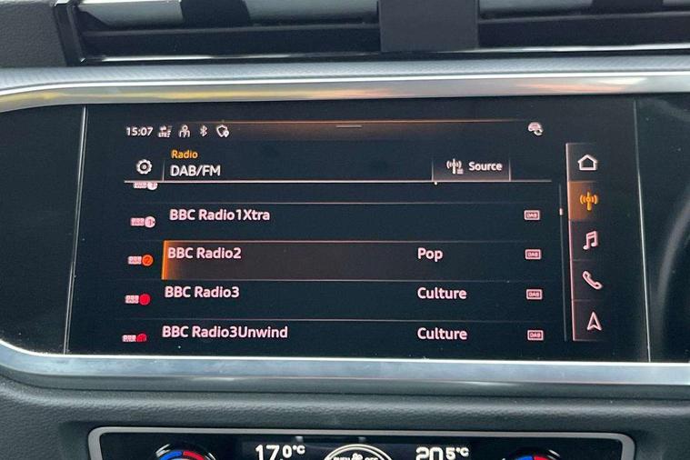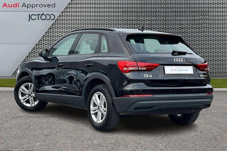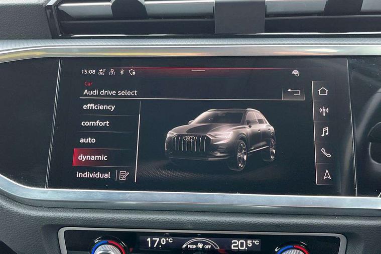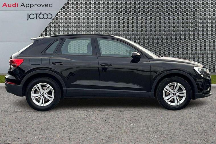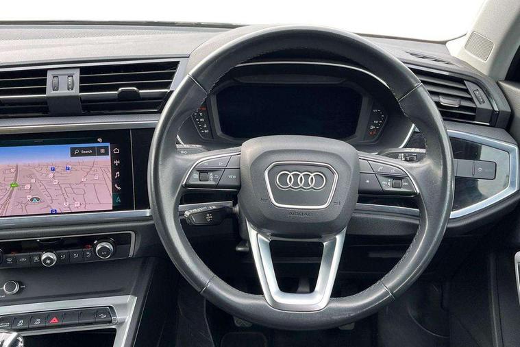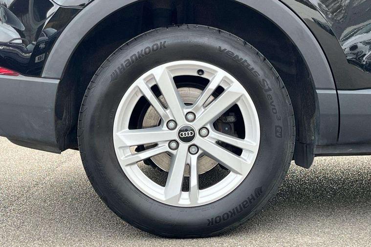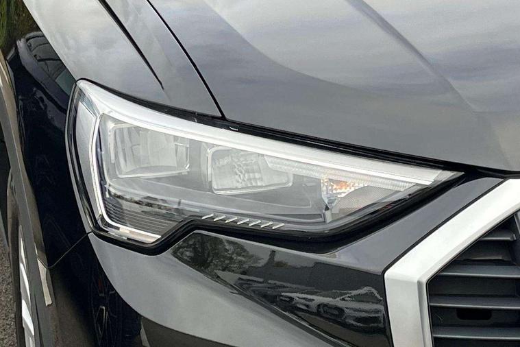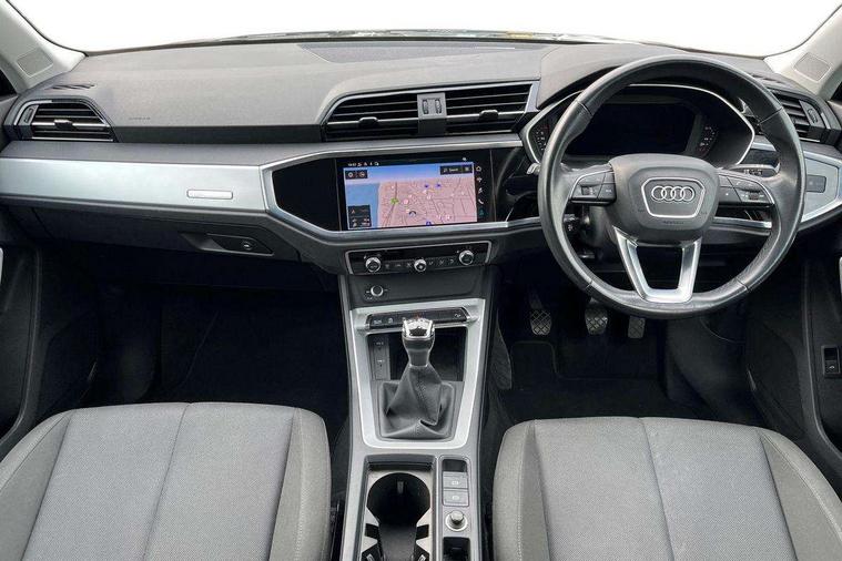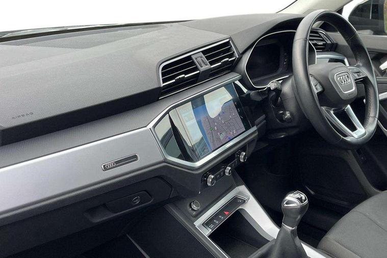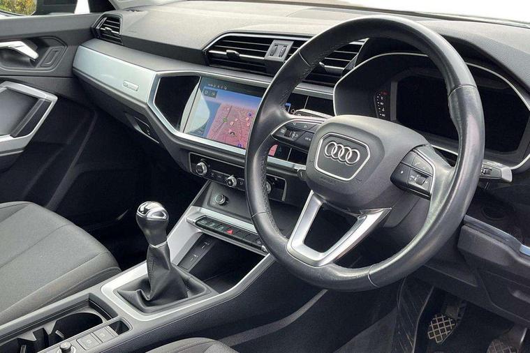 Amazon alexa Integration, Audi connect safety and service (e-call), Audi drive select, Audi lane departure warning, Audi Virtual Cockpit - 10.25" display, Bluetooth interface, Camera based traffic sign recognition, Cruise control + speed limiter, MMI Navigation Plus with high resolution 10.1 inch touchscreen colour display, Power operated tailgate, Progressive steering, Rear parking sensors, Service interval indicator, Smartphone interface includes wireless Apple carplay/Android Auto, Start stop system with recuperation, Voice control system with natural language interaction, Standard suspension, 2 USB-C ports with charge and data functions, 6 passive loudspeakers, DAB digital radio module, Acoustic windscreen, Auto dimming frameless rear view mirror, Black roof rails, Body colour door mirrors, Diffuser in grained anthracite, Electrically folding, adjustable and heated door mirrors with integrated LED side indicators and kerb view function for passenger side, Exterior bumper with wheel arch trims and side sill trims in grained black matt, Front and rear electric windows, Grained radiator protective grille, Halogen rear lights, LED headlights with LED daytime running lights, Rain and light sensors, 12V socket in rear centre console, 3 spoke multi-function leather steering wheel, 40:20:40 folding with manual adjustment for 60:40 forwards/backwards position and backrest angle, Dual zone electronic climate control, Front and rear floor mats, Front and rear headrests, Front and rear roof module including reading lights, Front centre armrest, Glove compartment lighting, Height and reach adjustable steering wheel, ISOFIX child seat mounting for front passenger with airbag deactivation and outer rear seat including top tether attachment point for outer rear seats, Luggage compartment light, Lunar silver cloth headlining, Manual front seats with height adjustment, Stainless steel luggage compartment sill finisher, Non smoking pack - Q3, 3x3 point rear seatbelts, 6 airbags - Driver, front passenger, curtain and side windows, Audi pre-sense front with pedestrain and cyclist recognition, Electrically operated child locks on rear doors, Electromechanical parking brake, Electronic stabilisation control including ABS, ASR and EDL, Hill descent control, Hill hold assist, Pre sense basic, Seatbelt monitoring, Tyre pressure warning, Warning triangle and first aid kit, Anti theft alarm, Anti theft wheel bolts, Remote central locking, Detail dashboard around MMI touch colour display in glass look, black with surround in aluminium look, Micrometallic silver inlay, 17" 5 twin spoke design alloy wheels,