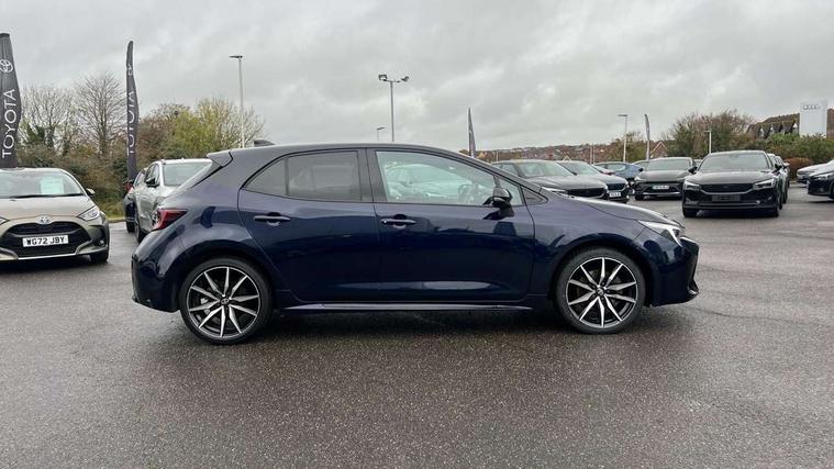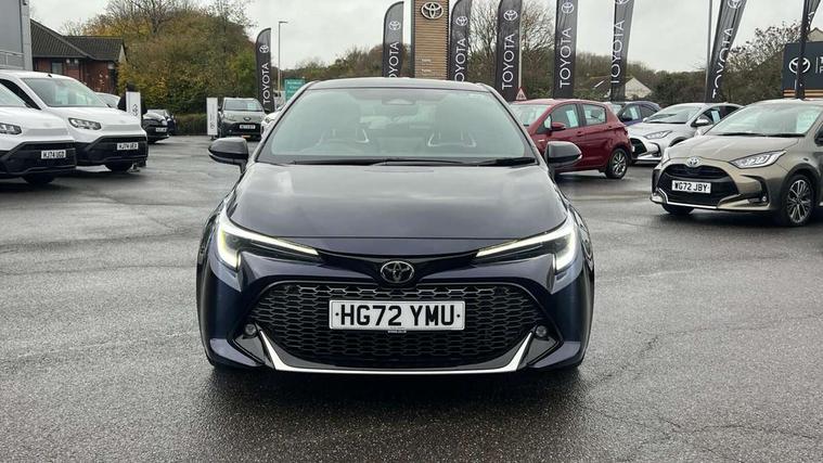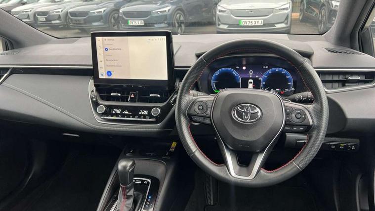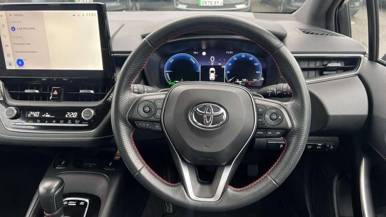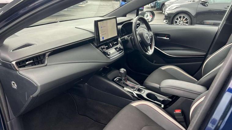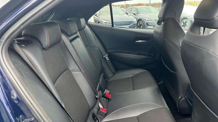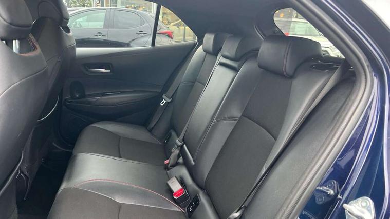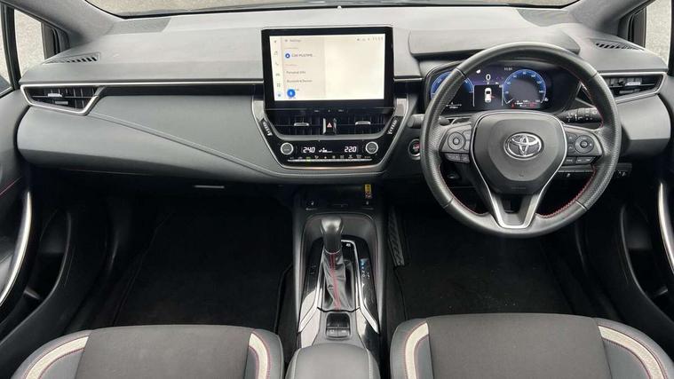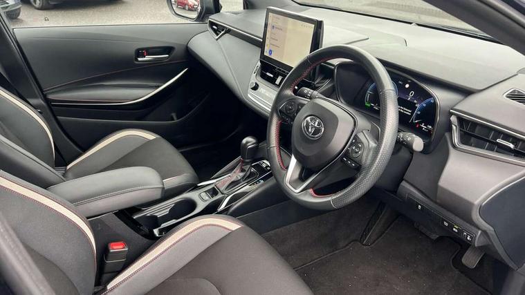 10.5" Multimedia display screen, Attention assist, Bluetooth telephone connectivity, Connected car functionality upgrade, tracker, remote status and e-care, Drive mode select (Eco, Normal), E-call, Electrically assisted power steering, EV drive indicator, Front and rear parking sensors with auto brake, Full Digital 12.3" TFT Digital Combimeter, Key reminder warning, Lane Departure Alert (LDA) switch on steering wheel, Memory on adjustable speed limiter, MyT connected services, Proactive driving assist (PDA), Reversing camera, Smart entry and push button start with GR Logo, Smartphone integration with Apple CarPlay and wired android auto, Tailgate, Toyota remote services, Toyota smart connect navigation, Wireless charger, Gasoline particulate filter, Vehicle Stability Control (VSC), 6 speakers, AM/FM radio, DAB Digital radio, Front USB-C in centre console, Front USB-C in dashboard, Smart voice assist/ Voice recognition, USB and Aux in connectors + 12V front outlet, Anti-jam protection on power windows, Auto up and down function on all power windows, Automatic folding mirrors, Automatic headlights with high beam assist, Black centre and side air vents, Black toyota logo in front, Body coloured bumpers, Body coloured door mirrors, Body coloured outside door handles, Dark chrome lower grille, Electrochromatic mirror, Follow me home headlights, GR Sport dark chrome front mesh grille and black rear grille, GR Sport exclusive under guard, GR sport scuff plates, LED daytime running lights, LED dual beam projector headlights, LED front fog lights, LED High mounted stop light, LED rear combi lights with LED lightguide, Manual headlight levelling system, New grille pattern, Noise reduction layer on windscreen, Piano black diffuser, Power adjustable heated door mirrors, Power front windows, Power rear windows, Privacy glass with UV filter, Rain sensing wipers, Rear side wing doors, Rear window defogger, Rear window wiper, Reverse tilting door mirrors, Rocker and door lower moulding, Roof spoiler, Satin chrome insert on front air vents, Satin chrome insert on front door assist grips, Satin silver front spoiler, Shark fin antenna, Tailgate release with push button, Time adjustment on intermittent wiper, Turning signal integrated indicators in door mirrors, Unique lower skirt, Unique side rocker with black insert, UV-filter on driver and passenger windows, 2 Shopping bag hooks in luggage compartment, 3 rear headrests, 3 seat bench in 2nd row, 3 spoke leather steering wheel with satin insert/red stitching + gear knob, 4 tie down hooks in luggage compartment, 60/40 split folding rear seat, Adaptive cruise control (ACC) switch on steering wheel, Adjustable speed limiter switch on steering wheel, Audio, multimedia and telephone switches on steering wheel, Black armrest on centre console box, Black gear shift console, Boot light, Boot underfloor storage, Centre room light, Driver and front passenger personal light, Driver and passenger assist grip, Driver and passenger seatback pockets, Driver and passenger sun visor with mirror and light, Dual zone automatic air conditioning with ECO mode switch, Fabric/synthetic leather upholstery, Front and rear cup and bottle holders, Front door pockets, Front head restraints, Front passenger seat, Front sliding synthetic leather armrest, GR Sports seats with partial leather bolsters, Heated seats, Illuminated entry system in room lamp, ISOFIX seat fixing (2 fixings on rear outer seats), Manual height adjustable for driver and front passenger seat, Manually tilt with sliding driver and front passenger seat, Paddle shifts, Parcel shelf, Pollen filter, Power window switches with satin chrome inserts, Rear armrest with 2 cupholders, Rear passenger coat hooks (2), Red stitching on gear shift, Remote air conditioning, Satin chrome inside door handles, Satin chrome surround on speedometer, Sliding armrest on centre console box, Slow opening glovebox with lights, Textile floor mats, Tilt/telescopic steering column, Voice recognition switch on steering wheel, Whiplash Injury Lessening (WIL) feature (active headrest) for seats, White ambient lighting on open tray and front cup holder, Toyota safety sense 3 pack - Corolla, 3x3 point rear seatbelts, Adjustable driver and front passenger seat belt extender to top anchor point, Anti lock braking system + Electronic brake force distribution, Brake assist function, Child locks on rear doors, Downhill Assist Control (DAC), Electronic parking brake, Emergency brake light signal (EBS), Front passenger airbag on/off switch, Front seatbelt reminder, HAC-Hill-start Assist Control, Rear seat belt reminder, Seatbelt pretensioners and force limiters, Supplemental restraint system (SRS) 7 airbags - dual driver, dual side curtain, side impact and driver knee airbags, Traction control, Tyre pressure warning system, Acoustic vehicle alert system (AVAS), Alarm with motion sensor and immobilizer, Power passenger window lock, Remote central locking + deadlocks, GR Sport interior and exterior styling, Satin chrome dash trim, Soft touch texture on upper dashboard, Stitching on lower dashboard, 18" black machined face 10 spoke alloy wheels, Tyre repair kit, Unique wheel finish with red wheel cap,