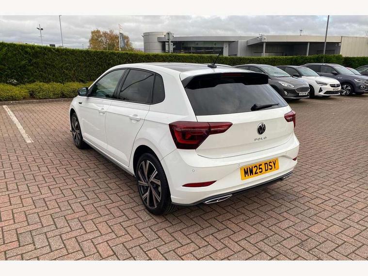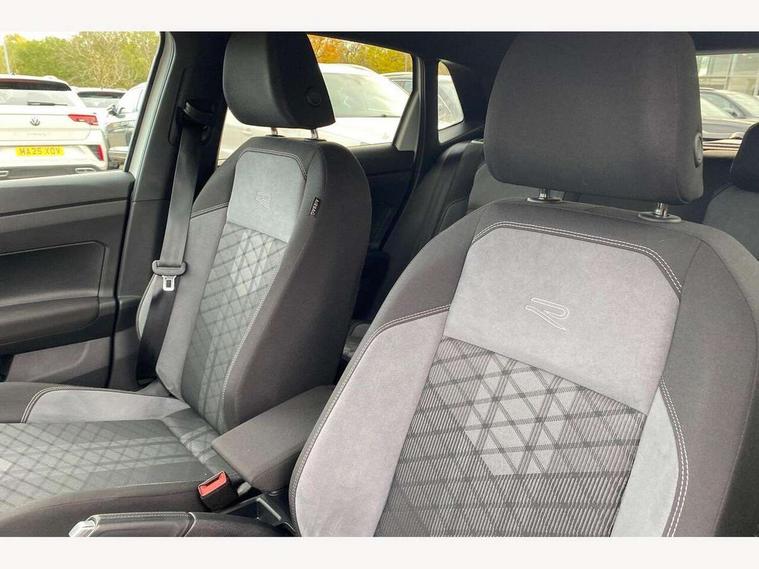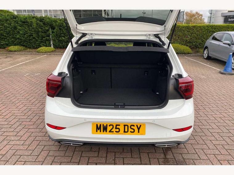 Adaptive cruise control with follow-to-stop and speed limiter, Advanced driver attention and drowsiness monitor, Bluetooth mobile phone interface, Digital Cockpit Pro with 10.25" Display, Dynamic road sign display, Emergency call service, Multifunction camera, Power assisted speed sensitive steering, Preparation for We connect and We connect plus, Speedo and rev counter, electronic odometer, trip, service interval display and fuel gauge, Standard rear axle, Travel Assist - Lane keeping system and traffic jam assist, Travel assist including emergency assist, Trip computer, Warning signal and warning light for front and rear seatbelts not fastened, Washer fluid level indicator, Wireless app connect, Front wheel drive, Rear shock absorpion, Start-stop system with battery regeneration (recuperation - energy recovery during braking), DAB Digital radio, Diversity antenna for FM reception, Front and rear 6 speakers, Body colour bumpers, Body colour door handles, Electric front windows, Front scuff plates with Black edition logo, Heat insulating glass windscreen, Power folding adjustable/heated exterior mirrors and front passenger exterior mirror lowering function, Rear electric windows, Rear fog light, Rear side wing doors, Rear windscreen washer and wiper with interval delay, Third brake light, 12V power socket in centre console, 2 USB-C ports in the front, 2 USB-C charging sockets on the center console in the rear, 3 rear head restraints, 60/40 split folding rear seat and rear seat bench not split, Air care climatronic air conditoning system with active combination filter and 2-zone temperature control, Black roof lining, Carpet mats, front and rear, Chrome plated radiator grille inserts, air vent surrounds and light switch surrounds, Door and side trim panel, Driver and front passenger seat height adjustment, Driver/passenger sunvisors with illuminated vanity mirrors, Front centre armrest, Front footwell illumination, Front seat backrest storage pockets, Front sports comfort seats, Handbrake lever handle in leather, Headliner in recycled material, Heated front seats, Isofix child seat preparation easy-fit (for two outer rear seats, and front passenger seat) compatible with I-size, Karoso artvelours cloth upholstery, Leather trimmed gear knob, LED interior light with switch off delay and dimmer, 2 reading lights front and rear, Luggage compartment cover, Luggage compartment floor, Luggage compartment lighting, Lumbar adjustment for front seats, Single front passenger seat, Stainless steel pedals, Standard pedal cluster, Three spoke leather wrapped multifunction steering wheel with shifting paddles, Black roof pack - Polo, IQ LED matrix headlights pack - Polo, Light and sight pack - Polo R-Line/Black Edition, 3 point height adj front seatbelts + pretensioners, 3x3 point rear seatbelts, ABS, Driver and front passenger airbag with front passenger airbag deactivation, Drivers and front passengers safety optimised head restraints, ESC (Electronic stability control) + EDL (Electronic Differntial lock) and ASR (Traction control), Extended and predictive pedestrian/ cyclist protection, Front curtain and side airbags with center airbag, Front/rear disc brakes, Hill hold control, Manual child lock in rear doors, Single tone horn, Tyre pressure loss indicator, Alarm with interior protection, Anti-theft alarm system with interior monitoring, backup horn, and towing protection, Anti-theft wheel bolts, Electronic engine immobiliser, Black dashboard, Chrome applications on rotary light, mirror adjustment, window regulator switches, outlet with frame in black, Dark grey anodised matt decorative inserts in dash and front door panels, 17" York alloy wheels, Low rolling resistance tyres,