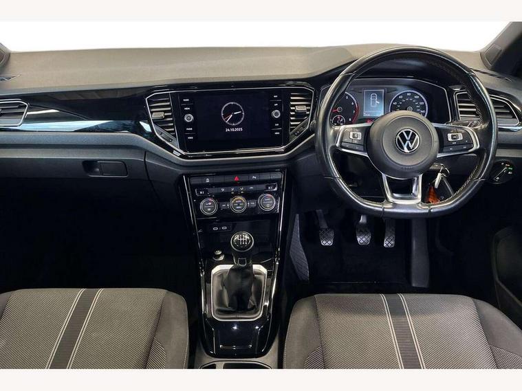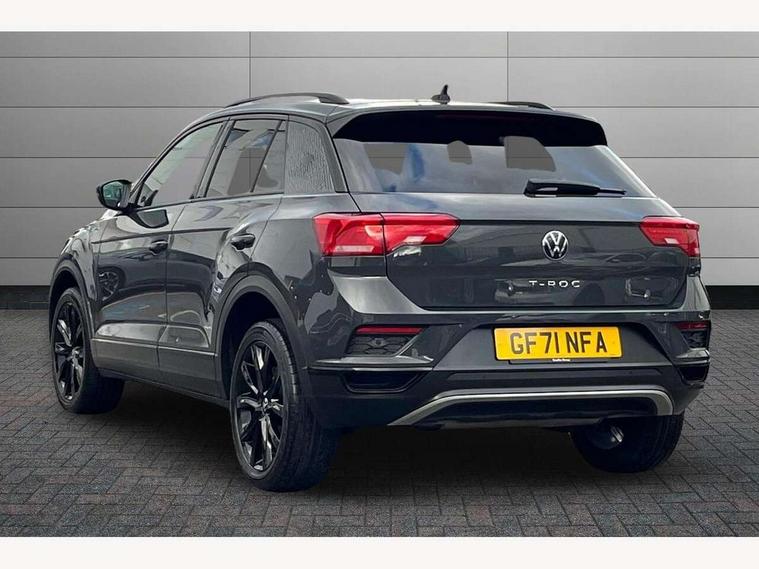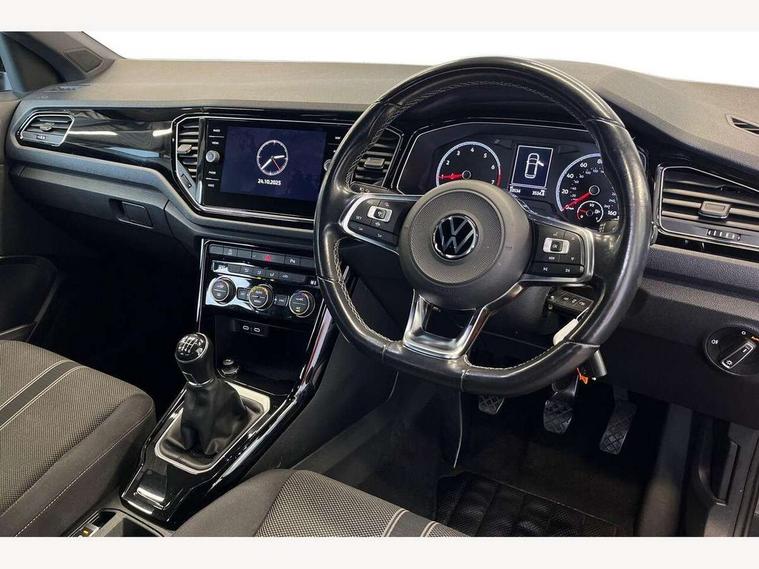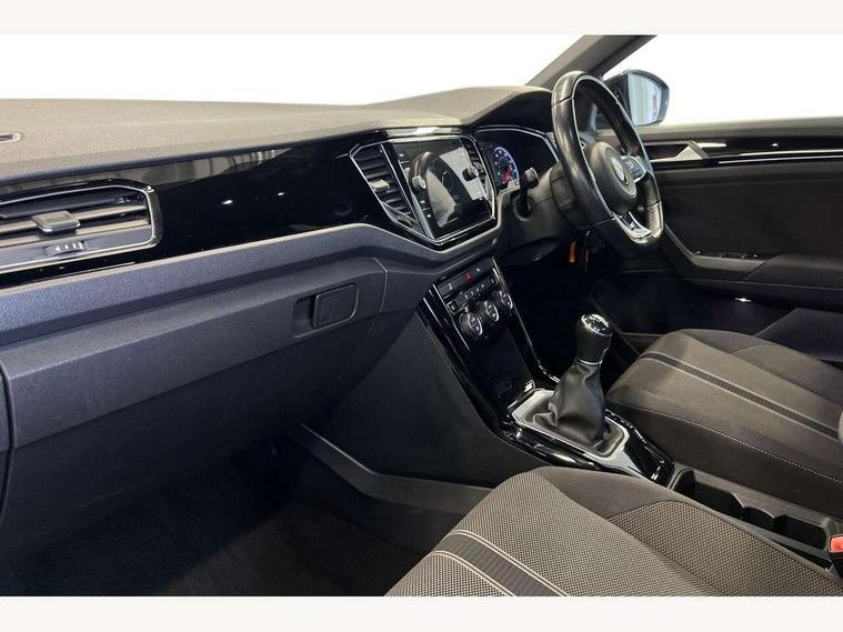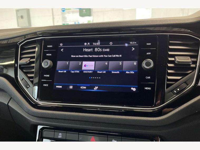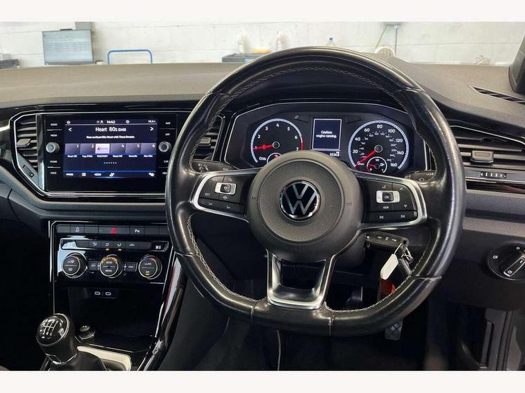 'Lights On' Reminder warning buzzer, Adaptive cruise control, Bluetooth telephone and audio connection for compatible devices, Car information display, Driver tips and journey analysis, Emergency call service, Lane assist with warning text instrument cluster, Modified key software - reduce switch off time for key status change to Long no motion, Multifunction camera, Multifunction computer with visual gear change recommendation for fuel consumption, Service interval indicator, Think blue trainer driver tips and journey analysis, Warning sound and light for doors and tailgate open, Warning sound and light for front seatbelts unfastened, Wireless app connect for apple carPlay, Battery regeneration during braking, Start/stop function with battery regeneration, DAB Digital radio, Diversity antenna for FM reception, Multi device interface (MDI) with USB connection, Music playback - MP3, WMA and AAC files, Premium USB cable in choice of either Apple or Android smartphone compatibility, SD card slot, Simultaneous pairing of 2 compatible mobile devices, Single CD player, glovebox mounted, SMS functionality - read, compose and send SMS messages using touch-screen display, Storage compartment with longitudinal and height adjustable in armrest and two rear air vents, Title and cover art display, USB-C Interface and USB charging socket, Auto dimming interior rear view mirror, Automatic coming/leaving home lighting function and daytime running lights, Automatic hazard lights activation under emergency braking, Black grained lower door protectors, Black grained wheel arches, Black roof rails, Body colour door handles, Body colour sports bumpers with silver metallic underbody fascia, Body coloured bumpers and radiator grille with chrome trim and front fog lamps with chrome bezel, Chrome trim on upper and lower radiator grille, Dusk sensor, Electrically foldable, adjustable and heated door mirrors with puddle lights and reverse activated kerb-view adjustment on passenger's door mirror, Exhaust tailpipes in black, External USB type C socket and charging sockets, Front and rear electric windows, Front windscreen wiper with intermittent wipe and 4 position delay, Fully galvanised body, Heated rear window, High level 3rd brake light, LED headlamps with automatic range adjustment and unique signature LED separate daytime running lights, LED rear number plate lights, LED tail lamp rear comination lamps, Privacy glass, Rain sensor, Rear tinted glass from B-pillar backwards approx 65% tinted, Rear wash/wipe with intermittent wipe setting, Trim strips on grille and vehicle side, Volkswagen roundel, 12V socket in centre console storage area, 3 rear head restraints, 4 load lashing points in luggage compartment, Black roof lining, Climate control - 2 zone electronic air conditioning with automatic air recirculation and allergy filter, Door and side trim panel, Drawer under drivers seat, Front centre armrest, Front cupholders x 2, Front seat back storage pockets, Glovebox, Height adjustable front seats, Height/reach adjust steering wheel, Instrument lighting, white adjustable panel illumination, Interior light in footwell, Isofix easy fit child seat preparation for 2 outer rear seats, LED interior light with switch off delay/dimmer and 2 front/rear LED reading lights, Load through provision with single cup holder when folded down, Luggage compartment cover, removable, Luggage compartment lighting, Split folding rear seat backrests with centre armrest, Storage compartment in left and right luggage area, Storage compartment in rear doors, Storage compartments in driver and front passenger doors, Sunvisors with illuminated vanity mirrors, Three spoke multi-function leather trimmed steering wheel and gearknob, White ambient lighting, Black decal on C-pillar pack - T-Roc, 3 rear three point seatbelts, ABS, Curtain airbags, Driver and front passenger safety-optimised head restraints, Drivers and front passengers airbags with passengers deactivation switch, Drivers seatbelt reminder, Electronic parking brake with auto hold, Electronic stability control (ESC) includes ASR, EDL, EDTC and trailer stabilisation function, Front assist with city emergency braking and pedestrian monitoring, Front seat side impact airbags, Predictive pedestrian protection, Rigid safety cell with front and rear crumple zones, Single tone horn, Three point height adjust front seatbelts + pretensioners, Tyre pressure loss indicator, Ventilated front and rear disc brakes, Volkswagen roadside assistance, Alarm with remote central locking and interior protection, Electronic engine immobiliser, Remote central locking with SAFELOCK, radio remote control with 2 remote control folding keys, Black decorative trims, Piano black decorative inserts in dash, centre console and door panel, 18" Arlo black diamond turned surface alloy wheels with low rolling resistance tyres and anti theft wheel bolts,