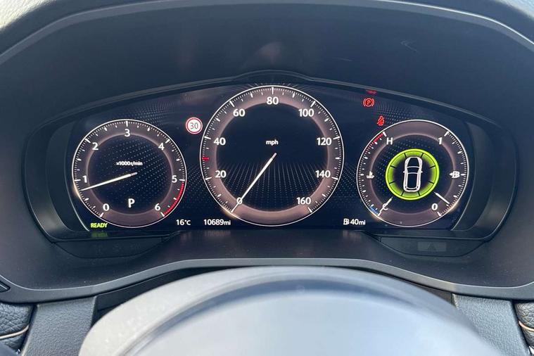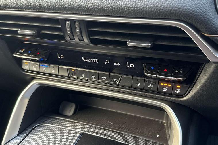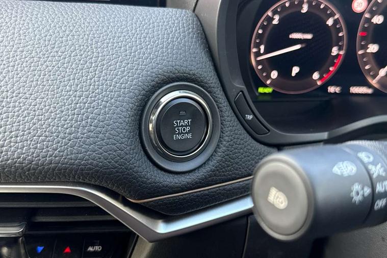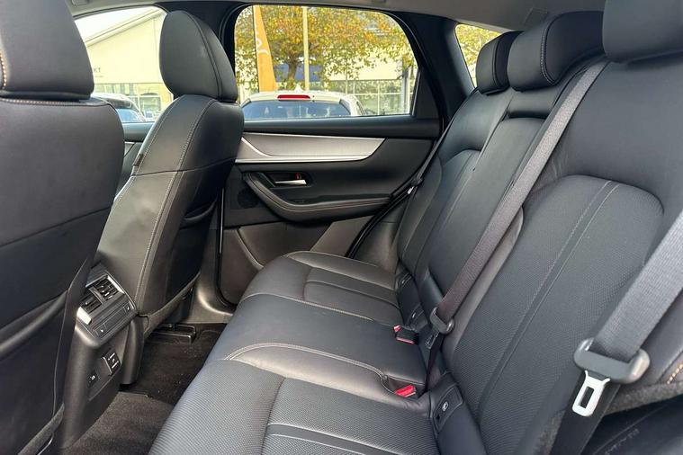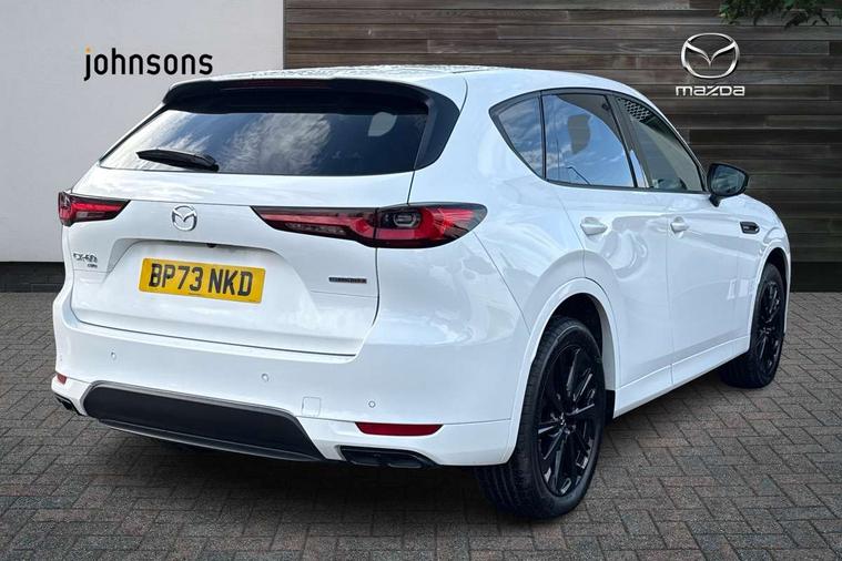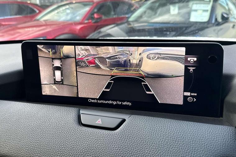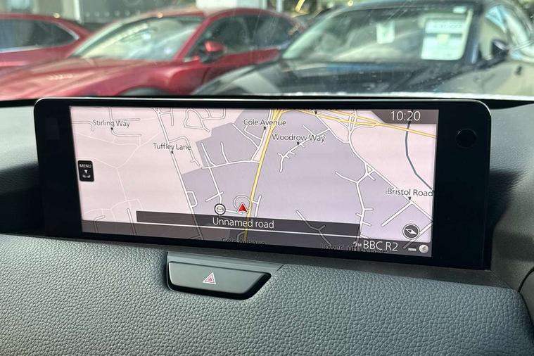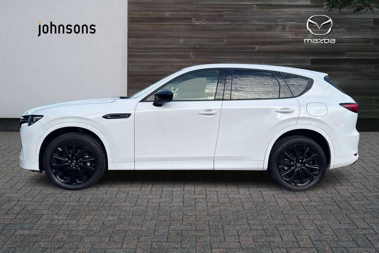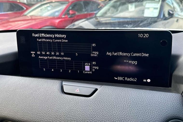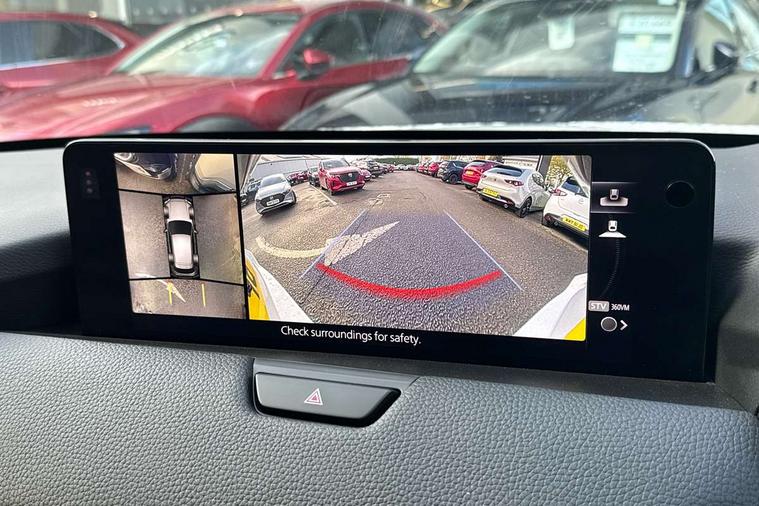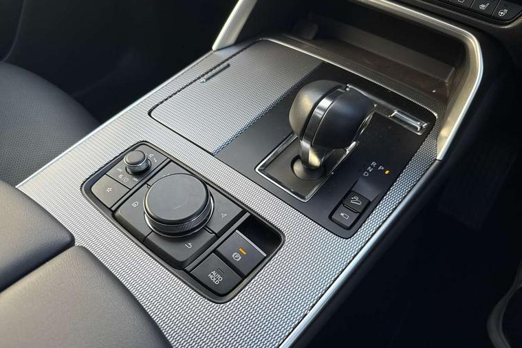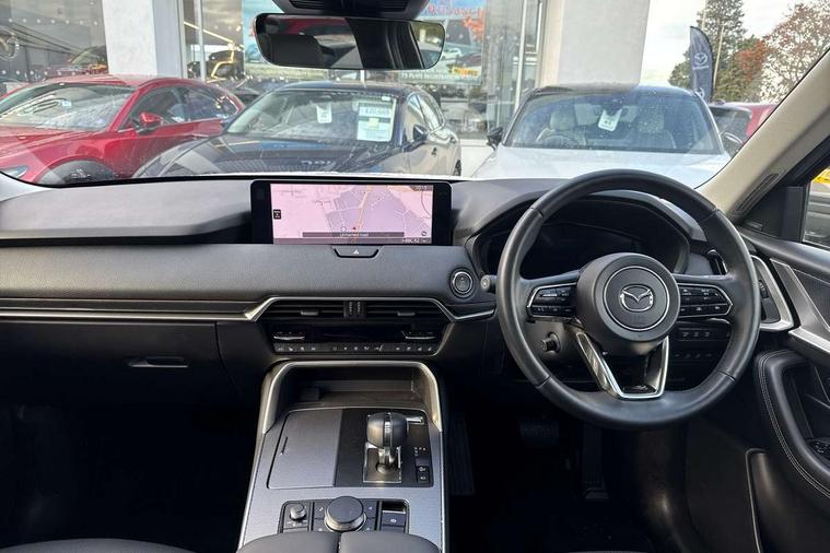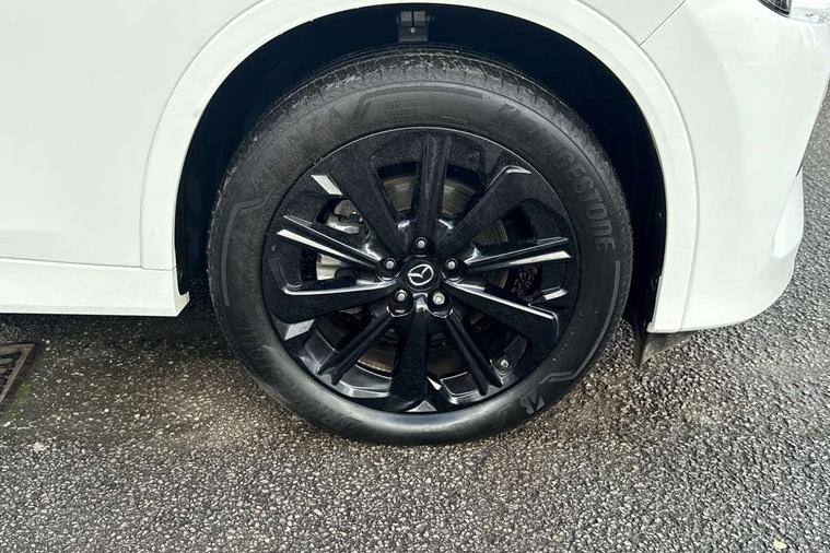 Emergency lane keeping with blind spot assist, Low washer fluid warning light, 12.3" Colour entertainment centre display with mazda connect infotainment, 12.3" TFT Colour display, Adjustable speed limiter, Black faux leather vinyl dashboard with titanium piping, Blind spot assist, Blind spot monitoring with rear cross traffic alert, Cruise control, Distance alert system, Driver attention alert system, Driver Monitoring with personal identification, E-call with GPS, Emergency stop signalling system, Exit warning function, Front and rear parking sensors, Ingress / Egress support and automatic driver position guide, Integrated bluetooth, Intelligent speed assist, Kinematic posture control, Lane keep assist system (LAS) with Lane departure warning system (LDWS), Mazda Driver Personalisation System, Mazda Navigation System with european mapping, Multimedia Commander, PAS, Power lift gate with handsfree function, Power start/stop button, Reversing camera with static guide lines, Speed alert, Traffic sign recognition, Trip computer, Windscreen projected colour active driving display, Wireless apple car play/android Auto, Internal Combustion Engine Sound Emulator, Mi-Drive (Normal, Sport, Off-road, Towing and EV mode), Paddle shift, AM/FM and DAB radio, Bose surround sound system with 12 Speaker, Bose center point, Bass match and audio pilot technology, Steering wheel mounted audio/bluetooth controls, USB-C inputs (x2 front and x2 rear), Auto dimming driver's door mirror, Automatic headlight levelling, B-pillar and C-pillar garnishes in gloss black finish, Body colour roof spoiler, Body coloured bumpers, Body coloured wheel arch and side mouldings, Coming/leaving home lighting function, Dark plated headlight lense, Dark plating finish signature wing in front grille, Dark plating front side garnish, Differentiated front bumper design to accentuate the intake, Dusk sensing headlights, Electric front/rear windows with one touch auto up/down, Electrically adjustable, heated auto power folding door mirrors with memory, Frameless auto dimming interior rear view mirror, Front kodo turn signal, Front wiper de-icer, Gloss black door mirrors, Headlight washers, High beam control, Honeycomb radiator grille in gloss black, LED 3rd brake light, LED headlamps, LED rear signature combination lamps, Rain sensing front wipers with adjustable sensitivity and speed, Rear side wing doors, Rear wiper, Roof pillars and roof lining finished in lighter colour to soften the overall look, Signature LED daytime running lights, Silver decoration panel, 12v power outlet - front, 12V socket in boot, 3 height adjustable rear headrests, 3 seat bench in 2nd row, 40/20/40 split folding rear seats with quick levers in the boot, Ambient lighting, Cargo net, Chrome interior trim accents with steering wheel centre bezel, surround of engine start / stop button and glove box handle, Door panel trim vinyl leather with armrest, Driver and front passenger two rear grab handles with rear coat hooks, Driver and front passenger visors with covered vanity mirror and driver ticket holder, Driver seat electric tilt, slide, recline, height and lumbar adjustment, Driver, front passenger and two rear door pockets, Driver/passenger front seatback pockets, Dual zone climate control air conditioning with rear air vents, Electric telescopic and tilt adjustment steering wheel, Folding rear centre armrest with two cup holders, Front centre storage with two cupholders, Front down lamp with front and rear foot lamps, Front headrests, Front passengers seat electric slide, recline, height and lumbar adjustment, Front seat ventilation with 3-stage setting, Glovebox illumination, Heated front seats with 3 stage setting, Heated leather wrapped steering wheel, Heated outer rear seats with 3-stage setting, ISOFIX child seat anchorage points attached on outer rear seats, Karakuri tonneau cover, Leather upholstery, Leather wrapped gear shift knob, LED illumination luggage compartment, Practical and spacious front centre armrest storage, Rear seat recline function for rear passenger comfort, Remote fold down rear seats, Remote pre-heating/cooling, Roof mounted sunglasses holder, Single front passenger seat, 3 point ELR front seat belts x2 with pretensioners, 3 point ELR rear seat belts, Active bonnet, Anti-lock braking system (ABS), Drivers knee airbag, DSC - Dynamic Stability Control, Electronic parking brake with auto disengage function and auto hold function, Front and rear curtain airbags, Front dual stage driver and single stage front passenger airbags, Front passenger airbag cut-off switch, Front side airbags, Front smart city brake support, Hill decent control, Hill launch assist, Manual rear child locks, Seatbelt reminder for driver/front passenger and rear seats, Traction control, Tyre pressure monitoring system (TPMS), Remote central locking with deadlocking and automatic door lock when driving, Smart keyless entry, Thatcham accredited alarm and immobiliser, Black centre console panel, Dashboard panel - Black Vinyl, 20" Black metallic alloy wheels, Emergency tyre repair kit,