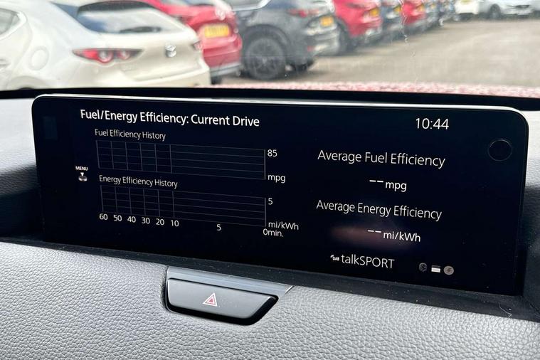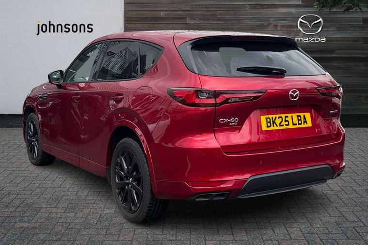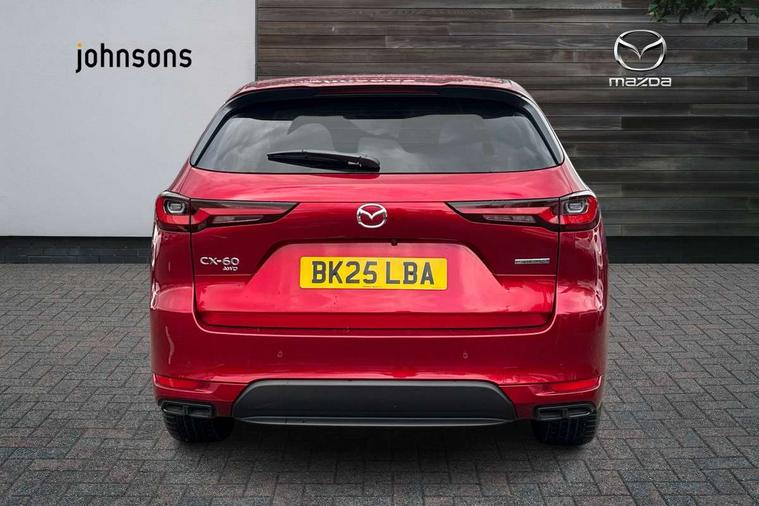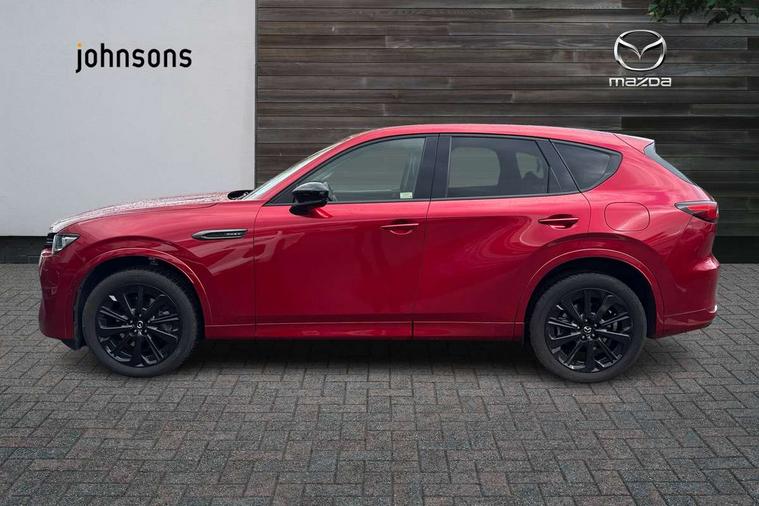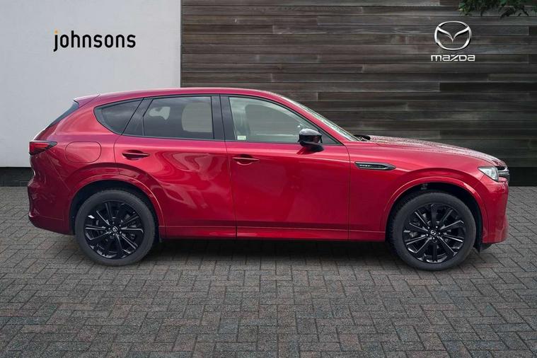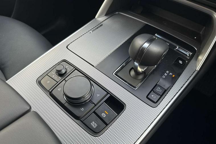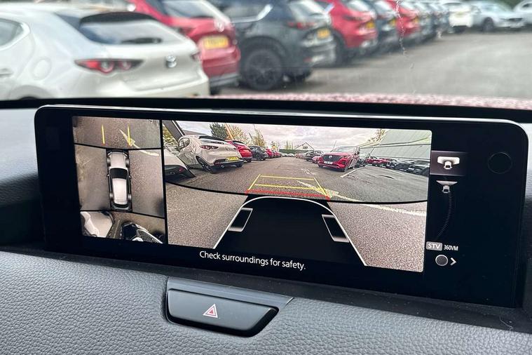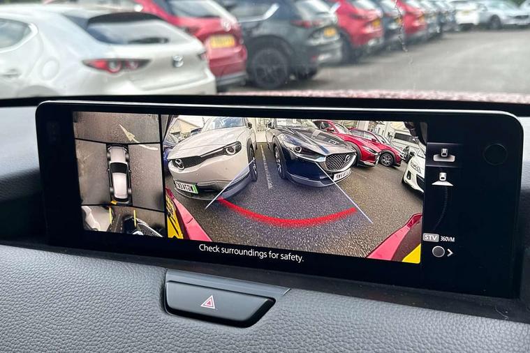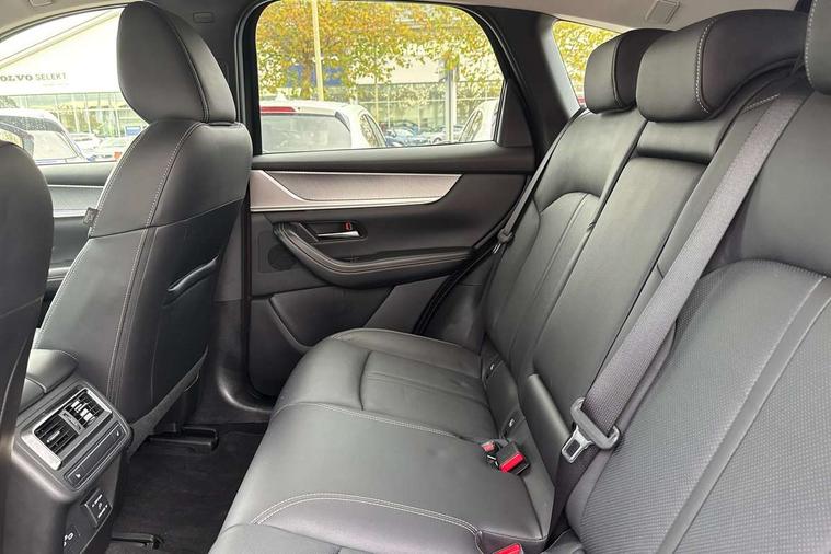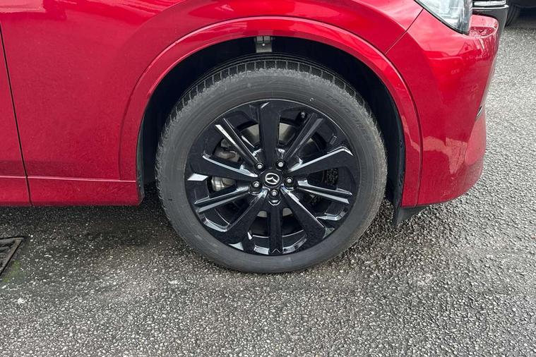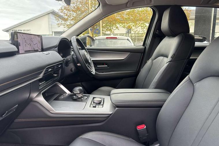 Emergency lane keeping with blind spot assist, Low washer fluid warning light, 12.3" Colour entertainment centre display with mazda connect infotainment, 12.3" TFT Colour display, Adjustable speed limiter, Blind spot assist, Blind spot monitoring with rear cross traffic alert, Cruise control, Distance alert system, Driver attention alert system, Driver Monitoring with personal identification, E-call with GPS, Emergency stop signalling system, Exit warning function, Front and rear parking sensors, Ingress / Egress support and automatic driver position guide, Integrated bluetooth, Intelligent speed assist, Kinematic posture control, Lane keep assist system (LAS) with Lane departure warning system (LDWS), Mazda Driver Personalisation System, Mazda Navigation System with european mapping, Multimedia Commander, PAS, Power lift gate with handsfree function, Power start/stop button, Reversing camera with static guide lines, Speed alert, Traffic sign recognition enhanced with mandated excessive speed warning, Trip computer, Windscreen projected colour active driving display, Wireless apple car play/android Auto, Type 2 Mode 2 cable for AC charging via UK 3-pin plug, 7.2 kw On board Charger, Mi-Drive (Normal, Sport, Off-road, Towing and EV mode), Paddle shift, Type 2 Mode 3 cable for AC charging via home or public charge points, AM/FM and DAB radio, Bose surround sound system with 12 Speaker, Bose center point, Bass match and audio pilot technology, Steering wheel mounted audio/bluetooth controls, USB-C inputs (x2 front and x2 rear), Auto dimming driver's door mirror, Automatic headlight levelling, B-pillar and C-pillar garnishes in gloss black finish, Body colour roof spoiler, Body coloured bumpers, Body coloured wheel arch and side mouldings, Coming/leaving home lighting function, Dark plated headlight lense, Dark plating finish signature wing in front grille, Dark plating front side garnish, Differentiated front bumper design to accentuate the intake, Dusk sensing headlights, Electric front/rear windows with one touch auto up/down, Electrically adjustable, heated auto power folding door mirrors with memory, Frameless auto dimming interior rear view mirror, Front kodo turn signal, Front wiper de-icer, Gloss black door mirrors, Headlight washers, High beam control, Honeycomb radiator grille in piano black, LED 3rd brake light, LED headlamps, LED rear signature combination lamps, Rain sensing front wipers with adjustable sensitivity and speed, Rear side wing doors, Rear wiper, Roof pillars and roof lining finished in lighter colour to soften the overall look, Signature LED daytime running lights, Silver decoration panel, 12v power outlet - front, 12V socket in boot, 3 height adjustable rear headrests, 3 seat bench in 2nd row, 40/20/40 split folding rear seats with quick levers in the boot, Ambient lighting, Cargo net, Chrome interior trim accents with steering wheel centre bezel, surround of engine start / stop button and glove box handle, Door panel trim vinyl leather with armrest, Driver and front passenger two rear grab handles with rear coat hooks, Driver and front passenger visors with covered vanity mirror and driver ticket holder, Driver seat electric tilt, slide, recline, height and lumbar adjustment, Driver, front passenger and two rear door pockets, Driver/passenger front seatback pockets, Dual zone climate control air conditioning with rear air vents, Electric telescopic and tilt adjustment steering wheel, Featuring black vinyl leather dashboard trim with titanium coloured accents, Folding rear centre armrest with two cup holders, Front centre storage with two cupholders, Front down lamp with front and rear foot lamps, Front headrests, Front passengers seat electric slide, recline, height and lumbar adjustment, Front seat ventilation with 3-stage setting, Glovebox illumination, Heated front seats with 3 stage setting, Heated leather wrapped steering wheel, Heated outer rear seats with 3-stage setting, ISOFIX child seat anchorage points attached on outer rear seats, Karakuri tonneau cover, Leather upholstery, Leather wrapped gear shift knob, LED illumination luggage compartment, Practical and spacious front centre armrest storage, Rear seat recline function for rear passenger comfort, Remote fold down rear seats, Roof mounted sunglasses holder, Single front passenger seat, 3 point ELR front seat belts x2 with pretensioners, 3 point ELR rear seat belts, Active bonnet, Anti-lock braking system (ABS), Drivers knee airbag, DSC - Dynamic Stability Control, Electronic parking brake with auto disengage function and auto hold function, Front and rear curtain airbags, Front dual stage driver and single stage front passenger airbags, Front passenger airbag cut-off switch, Front side airbags, Front smart city brake support, Hill decent control, Hill launch assist, Manual rear child locks, Seatbelt reminder for driver/front passenger and rear seats, Traction control, Tyre pressure monitoring system (TPMS), Remote central locking with deadlocking and automatic door lock when driving, Smart keyless entry, Thatcham accredited alarm and immobiliser, Mesh metal film centre console panel, 20" Black metallic alloy wheels, Emergency tyre repair kit,