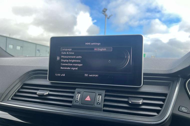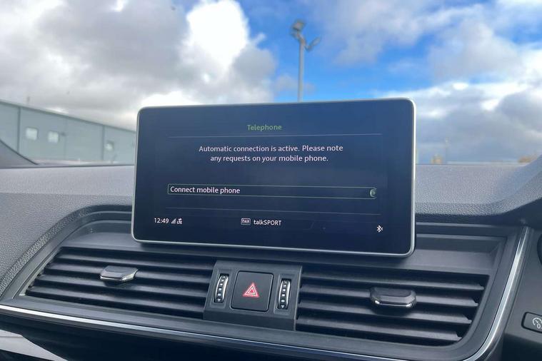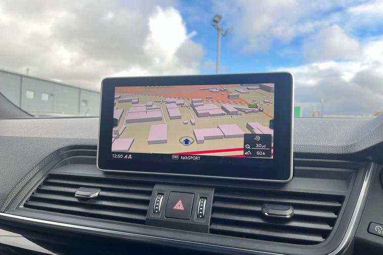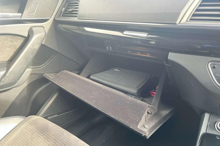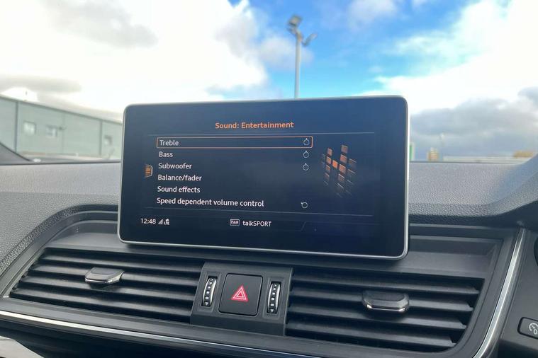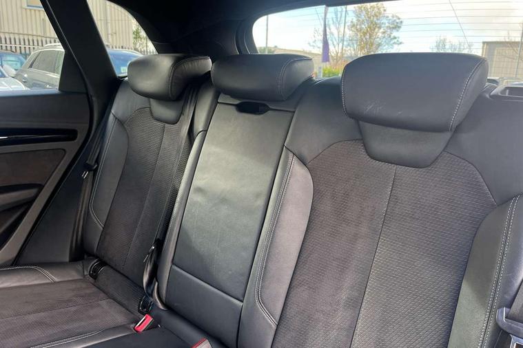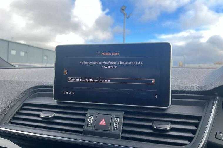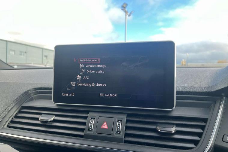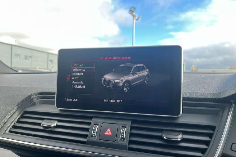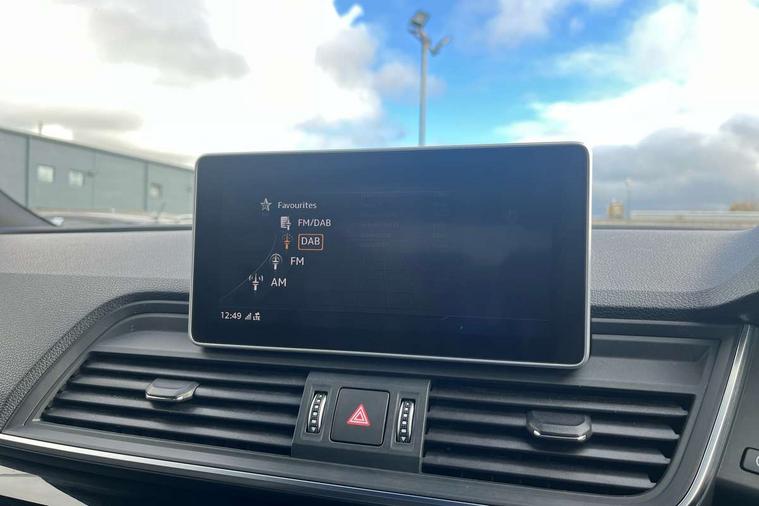 7" Colour driver information system, Audi drive select, Audi parking system plus with front and rear sensors, Audi smartphone interface, Electro - mechanical power assisted steering, MMI Navigation, Mobile telephone preparation - bluetooth interface, Power tailgate, Service interval indicator, Voice control system, Diesel particulate filter, 2 x USB charging port with aux input socket, 2x SD card slot, CD player, DAB Digital radio, MMI radio plus with 7" colour MMI screen and MMI controller, Acoustic windscreen, Air inlets in matt titanium black with blades in matt aluminium silver, Auto dimming rear view mirror, Automatic headlight levelling, Black roof rails, Body colour bumpers, Body colour rear diffuser with matt aluminium silver surrounds, Body colour underbody protection, Chrome exhaust tailpipe, Front and rear electric windows, High beam assistant, Light and rain sensor for auto activation of lights and windscreen wipers, Loading sill protector in stainless steel, Privacy glass with front acoustic glazing, Rear wiper, Titanium black door mirror housings, 3 rear headrests, 3 zone climate control, 40:20:40 split folding rear seat with rear centre armrest, Black cloth headlining, Contrast stitching on seats, steering wheel and gear lever gaiter, Front centre armrest, Front sports seats, Front/rear floor mats, Height adjustable front head restraints, ISOFIX child seat mounting and top tether, Luggage compartment carpet, Perforated leather gearknob, Removable luggage compartment floor, Stainless steel pedals, Sunvisors with vanity mirrors, Trunk roller cover, Non Smokers pack, Titanium black styling pack - Q5, 3 point seatbelts on all seats, 6 airbags - Driver, front passenger, curtain and side airbags, Electromechanical parking brake, Electronic stabilisation control including ABS, ASR and EDL, Front passenger airbag deactivation, Hill descent control, Hill hold assist, Multi collision brake assist, Pop-up bonnet for pedestrian protection, Pre sense city, Seat belt force limiter, Seatbelt monitoring, Tyre pressure warning, Warning triangle and first aid kit, Anti theft alarm, Anti-theft wheel bolts, Keyless Go access/ignition system, Remote central locking, Black piano finish inlays, 20" 5 arm rotor design sport alloy wheels in gloss anthracite black, diamond cut finish, Tool kit,