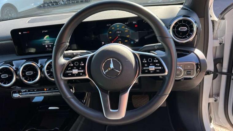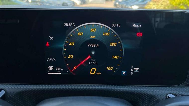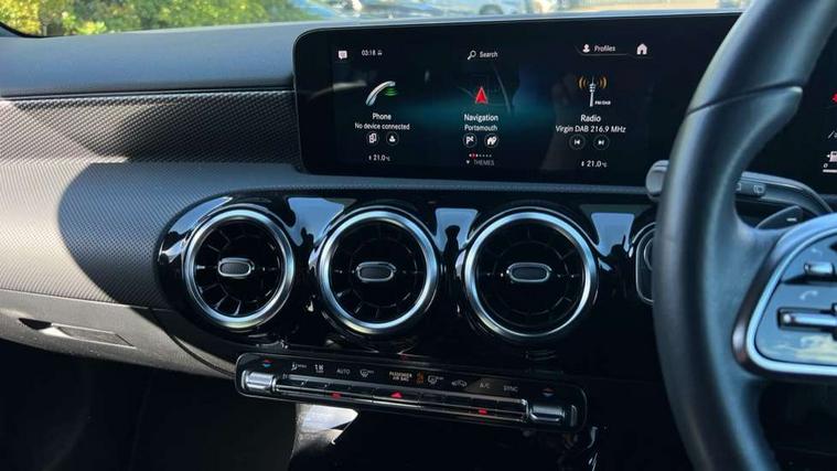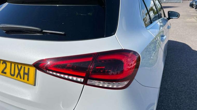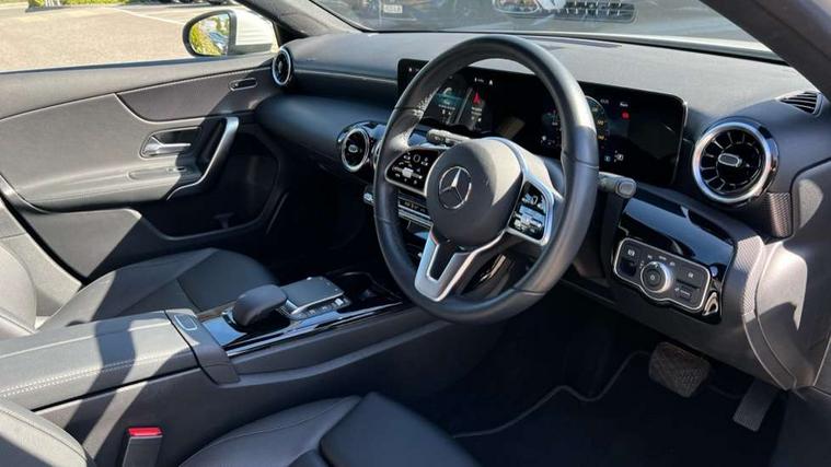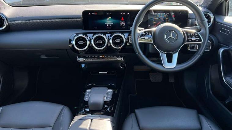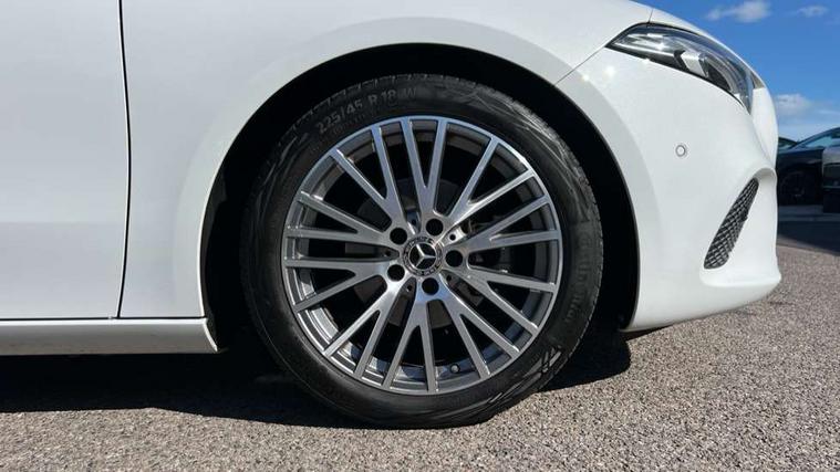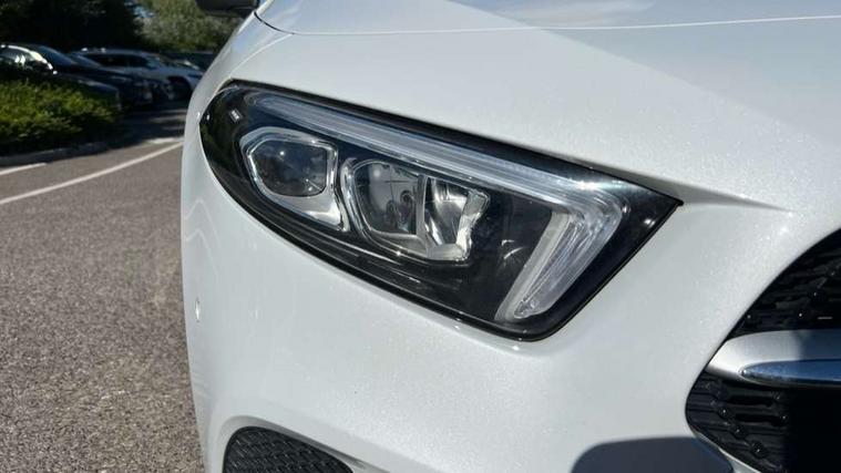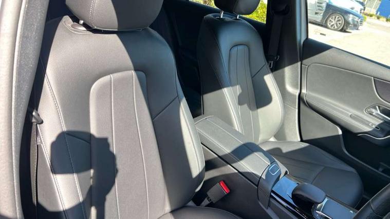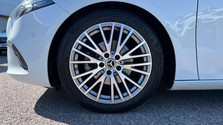 10.25" media display, 180 degree rear view camera with parking guidelines, 7" colour screen in instrument panel, Active parking assist with visual and audible warning of detected obstacles, Attention assist, Brake pad wear indicator warning light, Car wash mode, Cruise control + speed limiter, Direct steering, Dual bluetooth interfaces, DYNAMIC SELECT with a choice of driving modes (ECO, Comfort, Sport and Individual), ECO start/stop function, Fluid level warning indicator for fuel, oil, coolant and washer fluid, Hard-disk navigation, Hey Mercedes Voice activation, Lamp failure indicator, Lane keeping system, Mercedes me connect including emergency call system, accident recovery, breakdown and maintenance management, Mercedes me remote services, Outside temperature gauge, Owners manual in English, Pre-installation for private car sharing, Preinstallation for Mercedes Benz link, Service indicator (ASSYST), Smartphone integration with Apple CarPlay and Android auto, Speed sensitive power steering, Trip computer, Ultrasonic sensors positioned in the front and rear bumpers, Lowered comfort suspension, Rear axle torsion beam, 2 USB ports (type C) in rear stowage compartment and one in front of center console, 6 speakers, DAB Digital radio, MBUX multimedia system with DAB digital radio and touchpad including satellite navigation, Mercedes-Benz sound system - 100W, 4 Electric Front and Rear windows, Adaptive brake lights, Automatic headlights, Black weather strip, Body colour bumpers, Body colour door handles, Body colour side skirt, Body coloured door mirrors, Chrome beltline trim, Diamond radiator grille with black pins with one louvre in silver + chrome insert, Electric adjustable and heated door mirrors with integrated LED side indicators, Exhaust system - Twin visible tailpipes in polished stainless steel, Headlamp assist automatic headlamp activation, Heated glass rear windscreen + timer control, LED High level third brake light, LED high performance headlamps with integrated LED daytime running lights, LED tail lamp, Privacy glass, Radio aerial, Rain sensing windscreen wipers with two sensitivity settings, Rear fog lights, Rear side wing doors, Rear wiper, Window line trim strip in chrome, 3 seat bench in 2nd row, 3 Spoke leather multi function steering wheel, 40:20:40 split folding rear seats, Artico man-made leather upholstery, Auto Mercedes-Benz child seat recognition sensor, Black air vents with surround in silver chrome, Black roof lining, Controller on centre console with chrome surround, Front centre armrest with storage compartment, Front comfort seats with adjustable head restraints, Front door sills with Mercedes Benz lettering, Front seat backs luggage nets, Front seat cushion length adjustment, Gearshift paddles on steering wheel, Heated front seats, Height/reach adjustable steering column, Interior mirror with reading lamps in black and frameless, Manual height adjustable front seats, Rear head restraints, Seat occupancy sensor for front passenger seat, Single front passenger seat, Stowage compartment in centre console with retractable cover, Sunvisors with illuminated vanity mirrors, Touchpad on center console, Twin front cupholders, Two zone thermotronic luxury automatic climate control, Velour floor mats, Light and sight pack - A Class, Mirror package - A Class, Seat comfort pack - A Class, 3 rear 3 point seatbelts, ABS with Brake Assist, Active bonnet, Active brake assist includes forward collision warning system with autonomous braking, Adaptive brake assist with hold function and hill start assist, Black seatbelts, Childproof locks manually operated for rear doors and electrically operated for rear power windows, Crash responsive emergency lighting, Driver and passenger head and side airbags, Drivers knee airbag, Dual stage driver/passenger airbags, Electronic parking brake, ESP curve dynamic assist, ESP with ASR, Front and rear seatbelt reminder, ISOFIX and top tether child seat fixing points in two outer rear seats, Tyre pressure monitoring system, Warning triangle and first aid kit, Window airbags, Alarm system/interior protection/immobiliser, Keyless Go, Remote central locking and crash sensor with emergency opening function, Urban guard vehicle protection system with immobiliser and interior protection, Dark carbon fibre interior trim, 18" multi spoke light alloy wheels painted in himalayas grey with a high sheen finish, Summer tyres, Tirefit sealant kit,