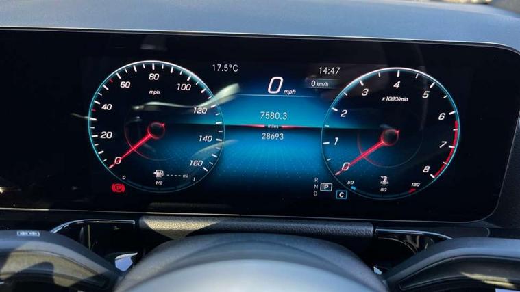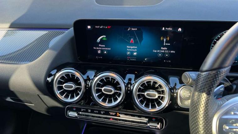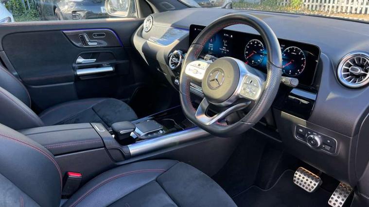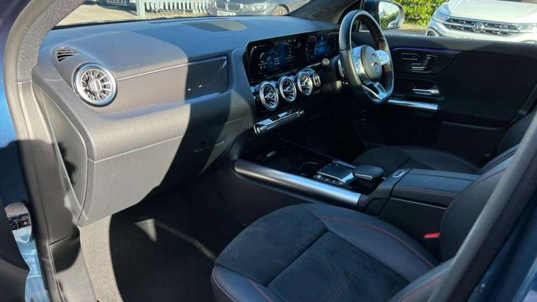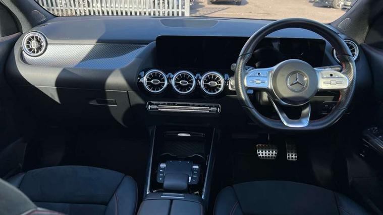 Carbon structure trim, Chrome air vent surrounds, AMG body styling pack - GLA, Interior lighting with light and sight pack - GLA, Load compartment pack - GLA, Mirror pack - GLA Class, Parking pack - GLA, 19" AMG 5 twin spoke light alloy wheels aerodynamically optimised painted in tantalite grey with a high sheen finish, Summer tyres, Tirefit tyre sealant kit, Alarm system with immobiliser and interior protection -Thatcham category 1, Keyless go lock/unlock, Keyless Go starting function, Remote central locking and crash sensor with emergency opening function, Vehicle key with decorative surround in chrome, 2 USB ports (type C) in rear stowage compartment and one in front of center console, Bluetooth connectivity including audio streaming, DAB Digital radio, MBUX multimedia system with DAB digital radio and touchpad including satellite navigation, Media interface, Mercedes-Benz advanced sound system - 225W, 3 rear 3 point seatbelts, ABS with Brake Assist, Active bonnet pedestrain safety measure which detects an impact and raises bonnet by 65mm, Active brake assist includes forward collision warning system with autonomous braking, Adaptive brake assist with hold function and hill start assist, Bonnet with power domes, Brake pad wear warning indicator, Childproof locks manually operated for rear doors and electrically operated for rear power windows, Crash responsive emergency lighting, Driver and passenger head and side airbags, Drivers knee airbag, Dual stage driver/passenger airbags, Electronic parking brake, ESP curve dynamic assist, ESP with ASR, Front and rear seatbelt reminder, Front brake callipers with Mercedes Benz logo lettering on front, Front passenger seat occupancy sensor, Internally ventilated brakes with perforated brake discs at the front, Tyre pressure monitoring system, Warning triangle and first aid kit, Window airbags, Adaptive brake lights, Aerial for GPS, Aluminium roof rails, AMG front and rear apron, AMG specific/dual flow exhaust pipes in chrome (non-functional), Automatic headlamp activation, Beltline strips and weather strip in chrome, Black grained claddings with chrome parts, Body colour bumpers, Body colour door mirrors, Body coloured door handles with chrome insert for keyless entry, Car wash function, Dark privacy glass from B-pillar backwards, Electric front windows, Electric rear windows, Electrically adjustable and heated door mirrors with integrated LED indicators, Heated glass rear windscreen + timer control, Heated windscreen wash system, Interior mirror with black reading lamps and frameless, LED tail lights in two piece design, LED third brake light, Matt titanium grey front and rear apron trim, Multibeam LED headlamps with adaptive highbeam assist plus, Panoramic sunroof, Pre-installation for trailer coupling, Rain sensor windscreen wipers, Rear fog lights, Roof spoiler, Single lamella raditor grille with chrome dotted diamond grille and inlay, 12V power socket in centre console, 3 spoke multifunction sports steering wheel in nappa leather with flattened bottom and perforated grip area, 40:20:40 split folding rear seats with backrest, Adjustable head restraints, Air conditioning - Two zone thermotronic luxury automatic climate control with display, Ambient lighting in front headrests, AMG floor mats with AMG lettering and stiched edging, Artico man-made leather/Microfibre Dinamica upholstery with red contrast stitching, Auto Mercedes-Benz child seat recognition sensor, Black roof lining, Brushed door pulls in silver chrome, Courtesy light in boot, Electrically adjustable front memory seats with four way lumbar support, Front centre armrest with stowage, Galvanished gear shift paddles on steering wheel, Heated front seats, Illuminated door sills, Illuminated glovebox, Interior lighting - 64 colour Ambient lighting, Leather trimmed gearknob, Luggage net on driver/front passenger seat backrest, Manually height and reach adjustable steering column, Multi-gesture touchpad control on center console, Net in front passenger footwell, Seat cushion angle adjustment, Seat cushion depth adjustment for improved seating, Sports pedals in brushed stainless steel with black rubber studs, Sports seats, Stowage compartment in centre console, Stowage compartment with retractable cover, Sunvisors with illuminated vanity mirrors, Twin front cup holders, Two outer rear seat isofix and top tether child seat fixing points, 10.25 inch touchscreen media display, 10.25" Digital instrument cluster display screen, Active lane keeping assist, Attention assist, Augmented reality navigation, Direct steering, DYNAMIC SELECT with a choice of driving modes (ECO, Comfort, Sport, Sport+ and Individual), Easy-pack tailgate, ECO start/stop function, Fluid level warning indicator for fuel, oil, coolant and washer fluid, Hard-disk navigation, Hey Mercedes Voice activation, Lamp failure indicator, Mercedes me connect including emergency call system, accident recovery, breakdown management and maintenance, Multi function trip computer, Outside temperature gauge, Owners manual and service booklet in English, Pre-installation for Vehicle Monitoring, Pre-installation for Vehicle set up, Pre-installation of private car share, Radio aerial integrated into front and rear windshields, Service indicator (ASSYST), Smartphone integration with Apple CarPlay and Android auto, Status display for rear seat belts in instrument cluster, Traffic sign assist, Wireless charging, Lowered comfort suspension, Rear axle multi-link,