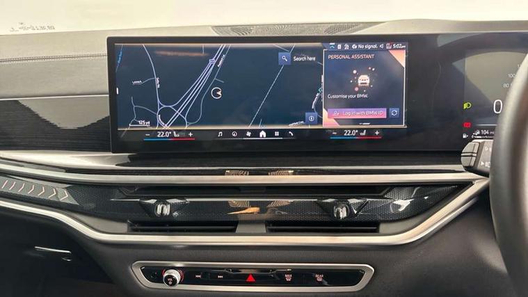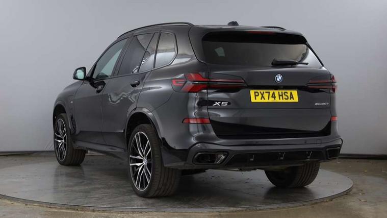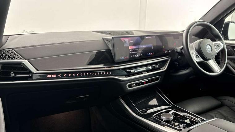 Attentiveness assist, Automatic tailgate operation, BMW ConnectedDrive online services, BMW live cockpit + with curved 12.3 instrument cluster/14.9 central display, nav/Tuner with diversity reception, RDS/4GLTE/remote software upgrade, BMW Teleservices, Condition based service, Cruise control with brake assist, eCall emergency call system, Enhanced bluetooth with wireless charging, Integral active steering, Integrated owner's handbook, PAS, Speed limiter, Wi-Fi hotspot, AC Fast charging preparation (Maximum charging power 11kW), Adaptive 2-axle Front and rear air suspension, Drive performance control with ECO PRO comfort + sport mode, Eight speed steptronic sport automatic transmission and gearshift paddles on the steering wheel, Hi-Fi loudspeaker system, Adaptive LED Headlights, Front and rear electric windows, High beam assistant, High gloss black shadow line roof rails, LED daytime running lights, Rain sensor, Rear side wing doors, Third brake light in rear spoiler, Variable intermittent rear wash/wipe, 12V - Power sockets with 2x centre console and 1x luggage compartment, 3 seat bench in 2nd row, Foldable rear centre armrest with 2 cupholders and storage compartment, Front and rear side armrest integrated into door trim, Headrests for all seats, Luggage compartment separating net, Single front passenger seat, Three spoke sport M leather steering wheel, Velour floormats, Ambient light interior pack - X5, Driving assistant pack with radar based driver assistance system - X5, Expanded exterior mirror pack - X5/X5 M, M aerodynamics pack - X5, 3 rear seatbelts, Acoustic protection for pedestrians, Active protection, Airbags - driver/front passenger, rear and side, first and second row seats head airbags, front passenger seat airbag deactivation + knee airbag, Anti-lock braking system (ABS), Automatic Stability Control (ASC), Brake energy regeneration, Cornering brake control (CBC), Crash sensor activating central locking release, hazard warning lights, fuel cut off, interior lighting + activation of safety battery terminal clamp, DSC - Dynamic Stability Control, Dynamic Traction Control - DTC, Electromechanical parking brake with automatic drive away release and auto hold function, Electronic brake force distribution, Hill start assistant, M Sport blue painted brake calipers with 'M' designation, Mechanical child proof lock on rear doors, Tyre pressure monitoring system, Tyre pressure sensors, Ventilated front and rear disc brakes, Warning triangle and first aid kit, Alarm system, Closing system with central locking, Comfort access system, Locking wheel bolts,