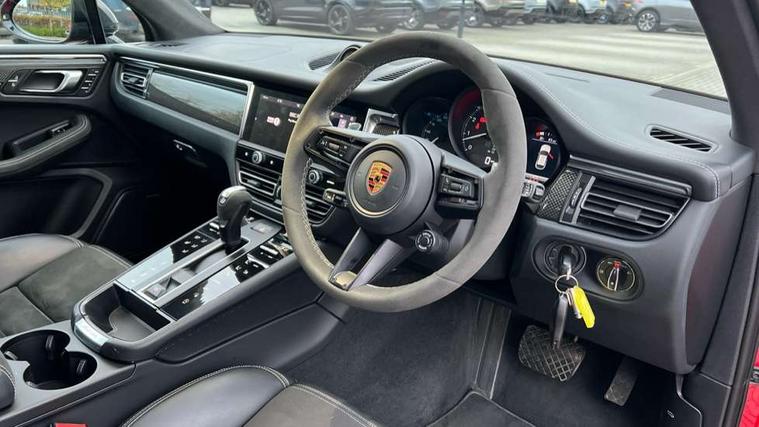 Analogue clock on dashboard, Automatic start/stop system, Automatic tailgate, Digital boost pressure gauge on colour display of instrument cluster, eCall emergency call system, Instrument cluster with high resolution 4.8-inch TFT display, gear indicator for PDK, service interval display, external temperature indicator, fuel gauge, Off-road button, On board computer, Porsche Communication Management (PCM) including online navigation module, mobile phone preparation, audio interfaces and voice control system, Sports button in centre console, 7-Speed Porsche Doppelkupplung (PDK) with automatic mode and manual controls (gearshift paddles) on steering wheel, 75 litre fuel tank, Direct fuel injection (DFI), Gasoline particulate filter, VarioCam Plus variable valve timing and switchable valve lift, 2 USB sockets in rear centre console, Apple CarPlay with Siri voice recognition, Connect Plus including online navigation, LTE communication module with SIM card reader, wireless internet access, Porsche Car Connect services, DAB Digital radio, Porsche Vehicle Traking System Plus (PVTS Plus), Two USB C charging and connectivity ports in the front centre console storage compartment, Active radiator grille shutters, Automatic headlight activation including welcome home lighting, Bumper system with high strength cross members and two deformation elements + One threaded fixture point for towing eye contained in onboard tool kit, Dynamic cornering lights, speed-sensitive headlight and dynamic range control, adverse weather function, four-point LED daytime running lights, Electric front and rear windows with remote closing function + anti trap + one touch, Electrically folding and heated exterior mirrors, Front light modules with LED position lights and direction indicators, Front windscreen wipers with two speeds, intermittent wipe and rain sensor, Front with integrated cooling air intakes, Fully galvanised body, Heated rear window with automatic switch off, High gloss black side window trims, High level 3rd LED brake light integrated into roof spoiler, Loading edge protection in aluminium, Rear side wing doors, Rear window wiper with intermittent function and washer jet, Roof spoiler with fixed double wing design and fin like look in high gloss black, Switchable sports exhaust system, Tinted LED taillights with three-dimensional lighting graphics, integrated fourpoint brake lights and light strip, Towbar preparation, Twin sports tailpipes in black with sports exhaust, 3 adjustable rear headrests, 3 rear seats, 4 way adjustable front head restraints, 40:20:40 split folding rear bench seat, Cloth hook b-pillar, Fold up centre console armrest with fore/aft adjustment, Front and rear bottle holders in door panels, Front passenger seat, Glove compartment, Isofix fastening system for child seats on outer rear seats, Luggage compartment cover, Particle/pollen filter with active carbon filter, Rear armrest with 2 cupholders, Storage bin in centre console, Storage compartment in side of luggage compartment and storage compartment in spare wheel recess, Storage pocket in front and rear doors, Two integrated cup holders in front with variable diameter, Two socket 12V power outlets in front console and luggage compartment, Uncovered storage compartment in centre console, Ambient comfort lighting pack - Macan, Lower exterior trim package in painted exterior colour - Macan, 3-point automatic seatbelts with front and outer rear seats pretensioners and force limiter + manually height adjustable seatbelt + reminder warning, 6-piston aluminium monobloc fixed caliper brakes at front, internally vented brake discs, Auto hold function, Brake discs with diameter of 390mm at front and 356 mm at rear, Child locks on rear doors, Curtain airbags along entire roof frame and side windows from A pillar to the C pillar, Electronic parking brake, Front passenger airbag deactivation facility for installation of child seats indicator in overhead console, Front side airbags integrated into seat, Full size driver and passenger airbags, Multi-Collision braking, Porsche hill control (PHC), PTM(Porsche Traction Management) and All-wheel drive with map-controlled multi-plate clutch, Roll over sensor for curtain airbag and seatbelt pretensioners, Side impact protection in doors, Tyre pressure monitoring system, Vehicle stability system, Porsche stability management (PSM) including ABS, ASR, ABD, MSR and trailer stability management, Vented discs brake with combination floating calipers at rear, Alarm system with ultrasonic interior surveillance, Engine immobiliser with key transponder, Remote control central locking, Accent trims with silver coloured finish, Wheel centres with full colour Porsche crest,