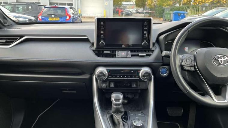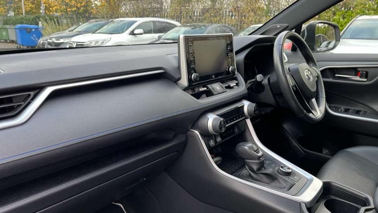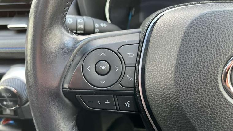 7" colour TFT display, Adaptive cruise control with lane trace assist, Adjustable speed limiter, Apple car play and Android auto, Blind spot monitoring with rear cross traffic alert, Bluetooth system, Cyclist Detection, Drive mode selector, eCall emergency call system, ECO-driving indicator, Electric power steering, EV audible alert, Hybrid system indicator, Lane departure warning system, Lights on warning, Night Time Pedestrian Detection, Pedestrial detection, Power boot opening and closing, Rear parking camera, Rear parking sensors, Remote boot door release in cabin, Tachometer, Touch 2 Go navigation system including 3D maps and voice control, Traffic sign recognition, Trip computer, Voice control system, Vehicle Stability Control (VSC), 6 speakers, 8" Multimedia display touch screen, Auxiliary socket for external MP3 player, DAB audio, Steering wheel mounted audio controls, Toyota touch media system, USB connection, Auto dimming interior mirror, Auto high beam, Automatic headlamp levelling, Automatic headlights, Automatically retractable door mirrors, Bi-tone black roof, Black door mirrors, Black rear spoiler, Black roof rails, Black Shark-fin antenna, Body colour door handles, Body coloured bumpers, Door mirror puddle lights, Electric adjustable door mirrors, Emergency brake-light signal (EBS), Follow me home headlights, Front fog lights, Gloss black front bumper insert, Gloss black rear bumper insert, Headlight cleaners, Heated door mirrors, LED daytime running lights, LED High mounted stop lamp, LED rear lights, Meshed upper front grille, Power front windows, Power rear windows, Privacy glass, Projector LED headlights, Rear screen wiper - intermittent, Rear windscreen defogger, Silver front under-run, Silver rear under-run, Trailer sway control, Turning signal integrated indicators in door mirrors, 3 rear headrests, 60/40 split fold rear seat back, Black roof lining, Boot light, Clean air filter, Driver and front passenger personal light, Driver and front passenger Whiplash Injury Lessening seats, Driver and passenger sunvisors with illuminated vanity mirrors, Dual sided deck board in boot, Dual zone automatic air conditioning, Floor mats, Folding rear centre armrest, Front and rear bottle holders, Front centre armrest, Front footwell lights, Front headrests, Front seat and rear pockets, Front sport seats, Front/rear roof mounted assist grips, Heated driver and front passenger seats, Isofix child seat preparation, Leather gear shift with chrome surround, Light blue ambient lighting on front cupholders and open tray, Manual telescopic and tilt 3-spoke leather steering wheel with Chrome insert, Manually reclining and sliding front passenger seat, Pollen filter, Power height-adjustable sliding reclining and lumbar support for driver seat, Rear coat hooks, Rear door armrests, Rear passenger air vents, Reclining rear seats, Satin chrome interior door handles, Sunglasses holder, Synthetic leather upholstery, 3x3 point rear seatbelts, ABS/EBD, Adjustable front driver and passenger seat belt extender, Brake assist function, Child proof door locks, Collision mitigation braking system, Driver/Front Passenger airbags, Driver/front passenger side airbags, Drivers knee airbag, Electronic parking brake, Electronic Stability Programme (ESP), Emergency brake light system (EBS), Front and rear curtain airbags, Front and rear seatbelt reminder, Hill start assist, Passenger airbag cut-off device, Seatbelt pretensioners with load limiters, Traction control, Tyre pressure warning, Alarm/immobiliser, Glass-breaking alarm sensors, Light - on and Key in reminder, Remote central locking, Smart entry + Smart start, Speed sensitive auto door locking, Tilt detection sensors, Piano black centre console with silver insert, Soft-touch black lower dashboard, Soft-touch black upper dashboard with silver insert, Full size spare wheel,