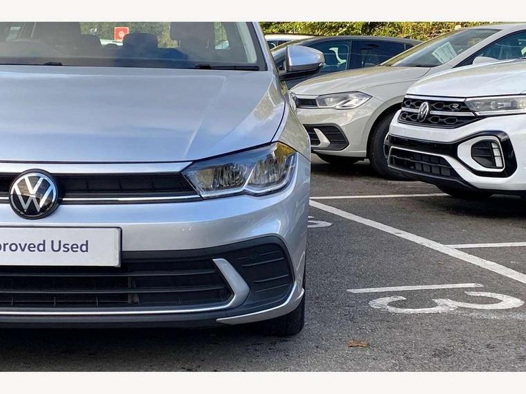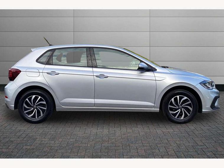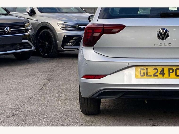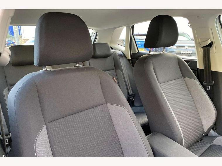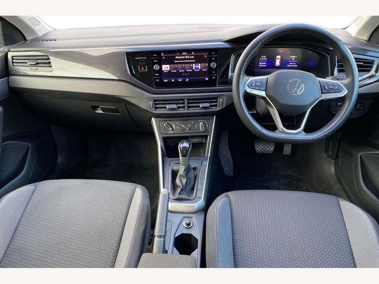 Adaptive cruise control with follow-to-stop and speed limiter, Advanced driver attention and drowsiness monitor, Bluetooth mobile phone interface, Dynamic road sign display, Emergency call service, Power assisted speed sensitive steering, Preparation for navigation system with media and internet package, Preparation for We connect and We connect plus, Speedo and rev counter, electronic odometer, trip, service interval display and exterior temperature gauge, Standard rear axle, Travel Assist - Lane keeping system and traffic jam assist, Travel assist including emergency assist, Trip computer, Warning signal and warning light for front and rear seatbelts not fastened, Washer fluid level indicator, Wireless app connect, Front wheel drive, Rear shock absorpion, Start-stop system with battery regeneration (recuperation - energy recovery during braking), DAB Digital radio, Diversity antenna for FM reception, Automatic dimming interior rear view mirror, Automatic headlight control with LED separate daytime running lights with coming/leaving home function, Body colour bumpers with chrome inserts, Body colour door handles, Body colour door mirrors, Electric front windows, Engine badge deletion, Headlight range adjustment, Heat insulating and laminated safety glass windshield, Heat insulating darkened glass in side and rear windows, Heat insulating glass windscreen, LED Headlights, LED rear combination lamps, Power folding adjustable/heated exterior mirrors and front passenger exterior mirror lowering function, Rain sensor, Rear electric windows, Rear fog light, Rear side wing doors, Rear windscreen washer and wiper with interval delay, Third brake light, 12V power socket in centre console, 2 front and 2 rear reading lights with switch off delay and dimmer, 2 USB-C ports in the front, 2 USB-C charging sockets on the center console in the rear, 3 rear head restraints, 60/40 split folding rear seat and rear seat bench not split, Ceramique roof lining, Chrome plated radiator grille inserts, air vent surrounds and light switch surrounds, Door and side trim panel, Driver and front passenger seat height adjustment, Driver/passenger sunvisors with illuminated vanity mirrors, Front centre armrest, Front seat backrest storage pockets, Front standard seats, Handbrake lever handle in leather, Hartley/Thomas cloth upholstery, Headliner in recycled material, Isofix child seat preparation easy-fit (for two outer rear seats, and front passenger seat) compatible with I-size, Leather trimmed gear knob, Luggage compartment cover, Luggage compartment lighting, Removable luggage compartment floor, Single front passenger seat, Standard climatic zones, Standard pedal cluster, Three spoke leather wrapped multifunction steering wheel with shifting paddles, Light and vision pack - Polo, 3 point height adj front seatbelts + pretensioners, 3x3 point rear seatbelts, ABS, Driver and front passenger airbag with front passenger airbag deactivation, Drivers and front passengers safety optimised head restraints, ESC (Electronic stability control) + EDL (Electronic Differntial lock) and ASR (Traction control), Extended and predictive pedestrian/ cyclist protection, Front assist with autonomous emergency braking (for Adaptive Cruise Control ACC up to 130 mph), Front curtain and side airbags with center airbag, Front disc brakes, Hill hold control, Manual child lock in rear doors, Rear drum brakes, Single tone horn, Tyre pressure loss indicator, Alarm with interior protection, Anti-theft alarm system with interior monitoring, backup horn, and towing protection, Anti-theft wheel bolts, Electronic engine immobiliser, Lava stone black gloss/matt decorative inserts in dash and front door panels, Low rolling resistance tyres,