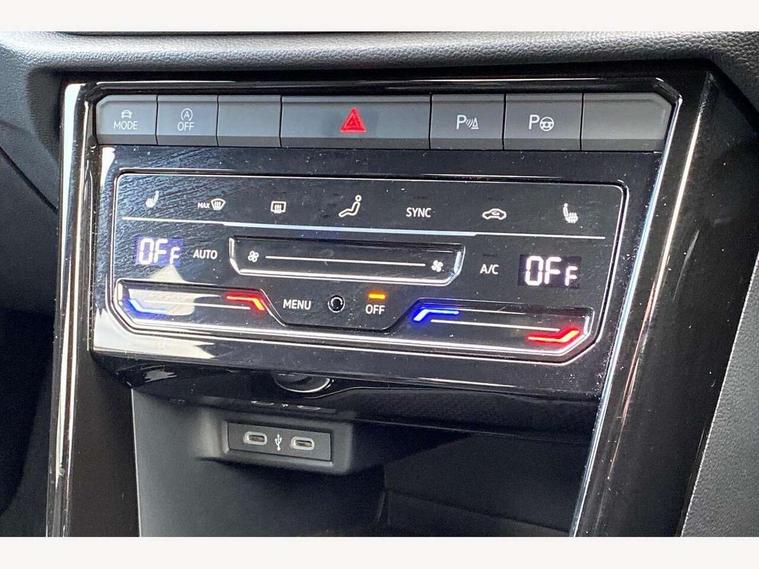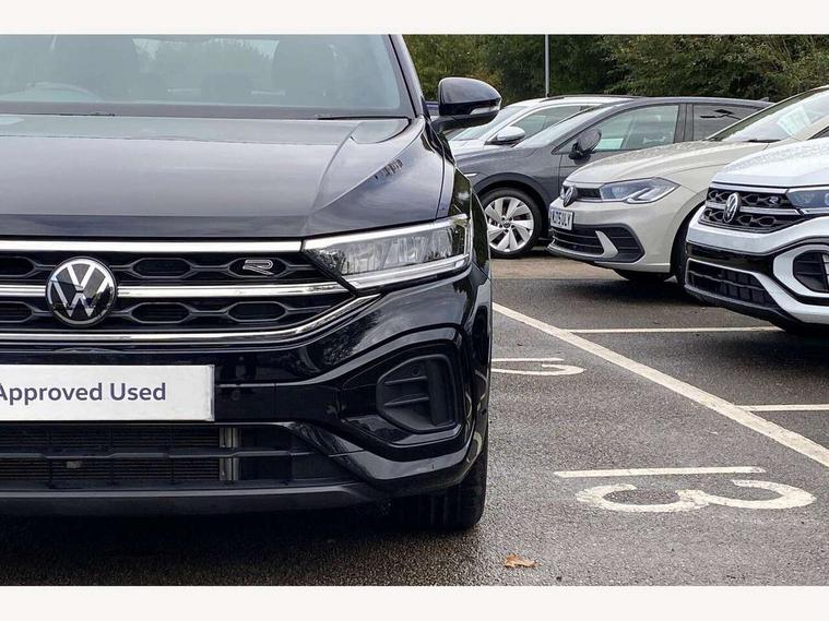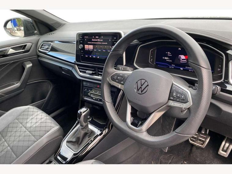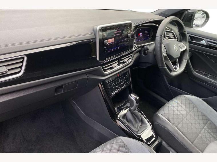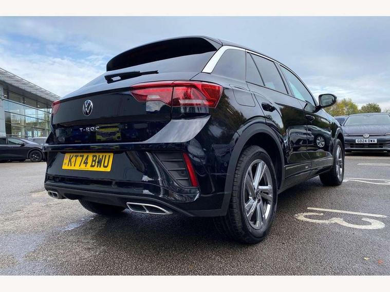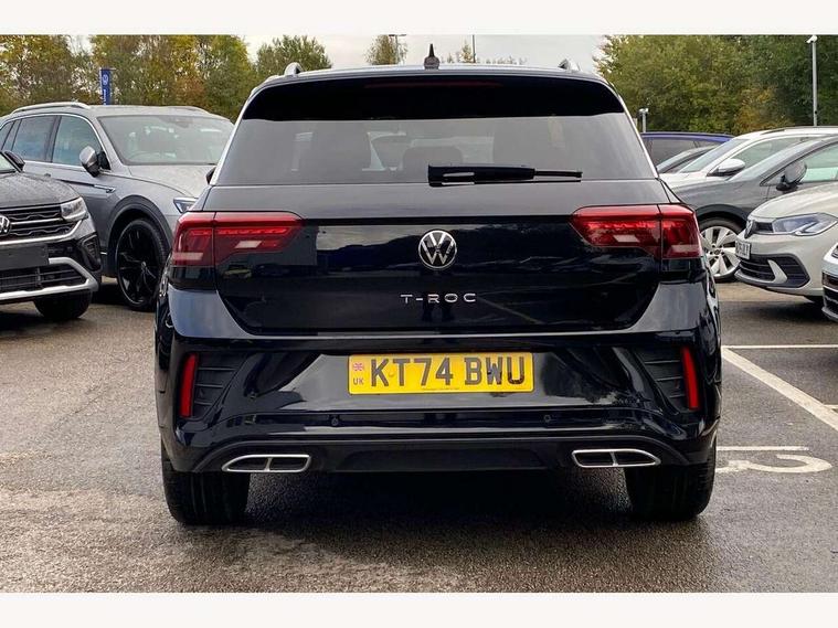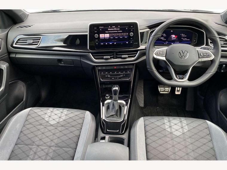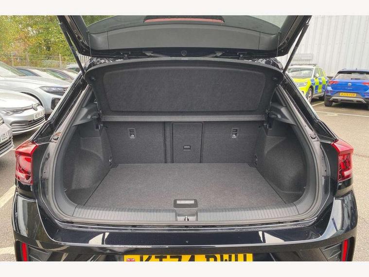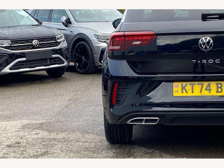 10.25" Digital cockpit pro, Advanced driver attention and drowsiness monitor, Emergency call service, Lane keeping system Lane Assist, Mobile phone interface, Modified key software - reduce switch off time for key status change to Long no motion, Online services, Park assist including front and rear parking sensors, Service interval indicator, Tailgate/trunk lid release from outside, Think blue trainer driver tips and journey analysis, Warning sound and light for front seatbelts unfastened, Wireless app connect, Battery regeneration during braking, Start/stop function with battery regeneration, DAB Digital radio, Diversity antenna for FM reception, Front and rear 6 speakers, Music playback - MP3, WMA and AAC files, Premium USB cable in choice of either Apple or Android smartphone compatibility, SD card slot, Simultaneous pairing of 2 compatible mobile devices, Title and cover art display, We Connect and We Connect Plus functionality, Auto dimming interior rear view mirror, Automatic hazard lights activation under emergency braking, Automatic headlight control with LED separate daytime running lights with coming/leaving home function, Body coloured exterior mirror housings and door handles, Electrically adjustable and heated door mirrors, Extended roof spoiler, Exterior mirrors aspherical on driver side, convex on front passenger side, External USB type C socket and charging sockets, Front windscreen wiper with intermittent wipe and 4 position delay, Heated rear window, LED 3rd brake light, LED rear combination lamps, LED rear number plate lights, Power windows with comfort operation and circuit breaker, Privacy glass for rear side windows and rear window, R-Line design body coloured bumpers, Rain sensor, Rear exhaust tailpipe, Rear fog light on one side and reversing lights on both sides, Rear side wing doors, Rear wash/wipe with intermittent wipe setting, Remote electrically foldable door mirrors, puddle lights and reverse activated passenger's door mirror, 12V power socket in centre console, 3 rear head restraints, 3 seat bench in 2nd row, 4 load lashing points in luggage compartment, Air care climatronic air conditoning system with active combination filter and 2-zone temperature control, Black roof lining, Chrome plated decorative trims, Chrome plated radiator grille inserts, air vent surrounds and light switch surrounds, Door and side trim panel with leatherette insert, Front + rear carpet mats, Front centre armrest, Front cupholders x 2, Front footwell illumination, Front reading light, Front scuff plates with R Line logo, Front seat back storage pockets, Glove compartment door with light, Instrument lighting, white adjustable panel illumination, Interior ambient lighting and surround lighting, Interior light delay, Isofix child seat preparation, Leather gearshift handle, Load-through provision with cup holder when folded down ('Unsplit rear seat bench, split folding backrest, with centre armrest), Luggage compartment lighting, Single front passenger seat, Stainless steel pedals, Storage compartment in left and right luggage area, Storage compartment in rear doors, Storage compartments in driver and front passenger doors, Sunvisors with illuminated vanity mirrors, Variable boot floor, height adjustable and removable, Driver assistance pack without proactive passenger protection - T-Roc, 3 point height adj front seatbelts + pretensioners, 3 point seatbelts in outer rear with ECE label, ABS, Child locks on rear doors, City emergency braking and pedestrian monitoring, Driver and front passenger airbag with front passenger airbag deactivation, Driver and front passenger safety-optimised head restraints, Drivers seatbelt reminder, Electronic parking brake, Electronic Stability Control (ESC) inc EDL (Electronic Differential Lock) and ASR (Traction Control), Front and rear passengers curtain airbag system including front side airbags, Hill start assist, Predictive pedestrian protection, Rear disc brakes, Two tone horn, Tyre pressure loss indicator, Volkswagen roadside assistance, Piano black decorative inserts in dashboard and front door trim panels, Trims for alloy wheels,