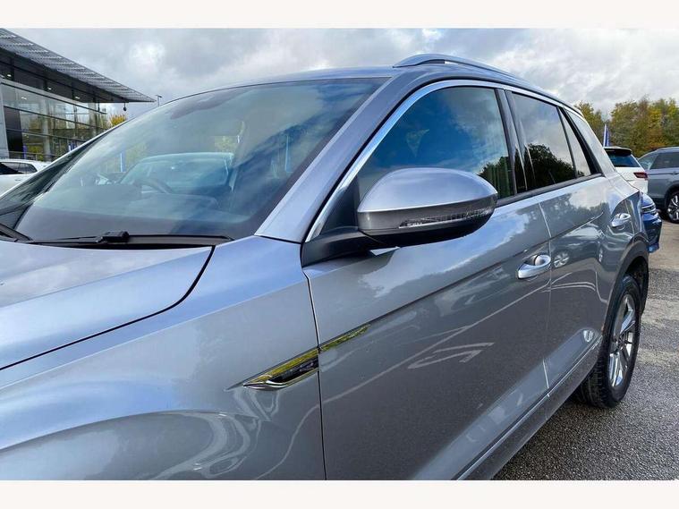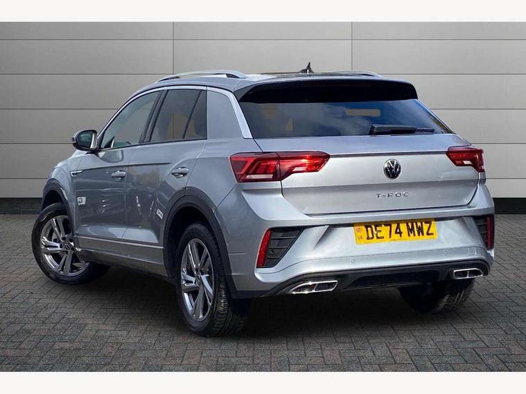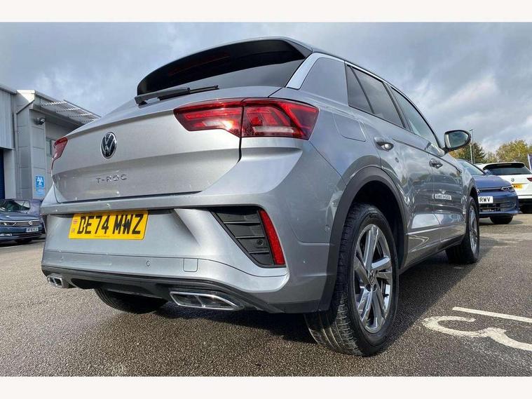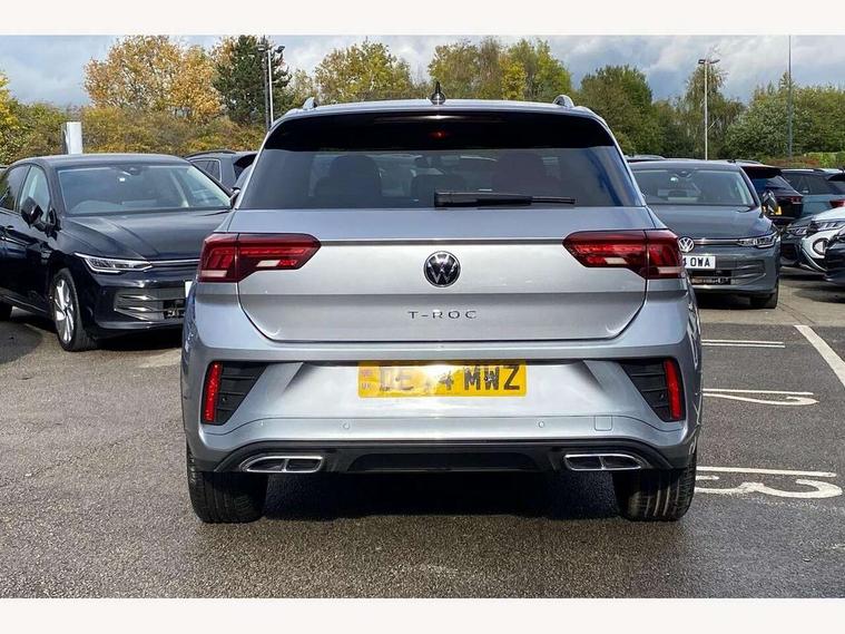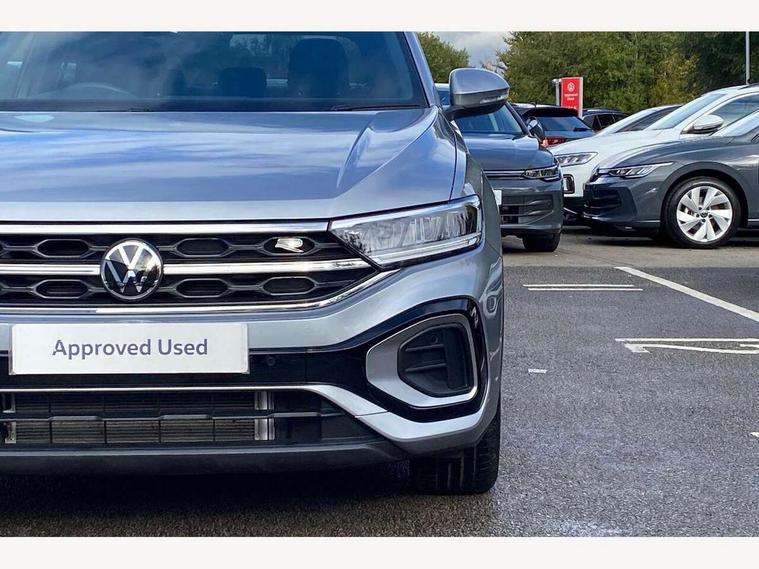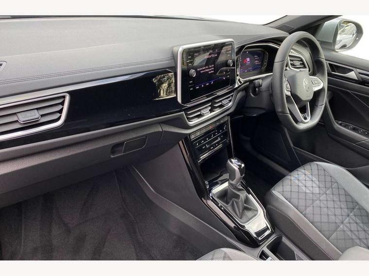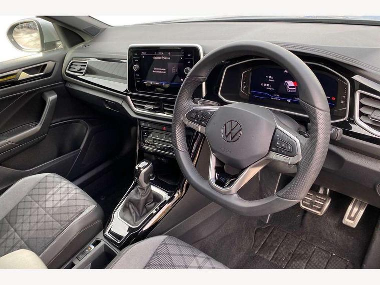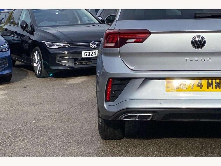 10.25" Digital cockpit pro, Advanced driver attention and drowsiness monitor, Dynamic road sign display, Emergency call service, Lane keeping system Lane Assist, Mobile phone interface, Modified key software - reduce switch off time for key status change to Long no motion, Online services, Park assist including front and rear parking sensors, Service interval indicator, Tailgate/trunk lid release from outside, Think blue trainer driver tips and journey analysis, Warning sound and light for front seatbelts unfastened, Wireless app connect, Battery regeneration during braking, Start/stop function with battery regeneration, DAB Digital radio, Diversity antenna for FM reception, Front and rear 6 speakers, Music playback - MP3, WMA and AAC files, Premium USB cable in choice of either Apple or Android smartphone compatibility, SD card slot, Simultaneous pairing of 2 compatible mobile devices, Title and cover art display, We Connect and We Connect Plus functionality, Auto dimming interior rear view mirror, Automatic hazard lights activation under emergency braking, Automatic headlight control with LED separate daytime running lights with coming/leaving home function, Body coloured exterior mirror housings and door handles, Electrically adjustable and heated door mirrors, Extended roof spoiler, Exterior mirrors aspherical on driver side, convex on front passenger side, External USB type C socket and charging sockets, Front windscreen wiper with intermittent wipe and 4 position delay, Heated rear window, LED 3rd brake light, LED rear combination lamps, LED rear number plate lights, Power windows with comfort operation and circuit breaker, Privacy glass for rear side windows and rear window, R-Line design body coloured bumpers, Rain sensor, Rear exhaust tailpipe, Rear fog light on one side and reversing lights on both sides, Rear side wing doors, Rear wash/wipe with intermittent wipe setting, Remote electrically foldable door mirrors, puddle lights and reverse activated passenger's door mirror, 12V power socket in centre console, 3 rear head restraints, 3 seat bench in 2nd row, 4 load lashing points in luggage compartment, Air care climatronic air conditoning system with active combination filter and 2-zone temperature control, Black roof lining, Chrome plated decorative trims, Chrome plated radiator grille inserts, air vent surrounds and light switch surrounds, Door and side trim panel with leatherette insert, Front + rear carpet mats, Front centre armrest, Front cupholders x 2, Front footwell illumination, Front reading light, Front scuff plates with R Line logo, Front seat back storage pockets, Glove compartment door with light, Instrument lighting, white adjustable panel illumination, Interior ambient lighting and surround lighting, Interior light delay, Isofix child seat preparation, Leather gearshift handle, Load-through provision with cup holder when folded down ('Unsplit rear seat bench, split folding backrest, with centre armrest), Luggage compartment lighting, Single front passenger seat, Stainless steel pedals, Storage compartment in left and right luggage area, Storage compartment in rear doors, Storage compartments in driver and front passenger doors, Sunvisors with illuminated vanity mirrors, Variable boot floor, height adjustable and removable, Driver assistance pack without proactive passenger protection - T-Roc, 3 point height adj front seatbelts + pretensioners, 3 point seatbelts in outer rear with ECE label, ABS, Child locks on rear doors, City emergency braking and pedestrian monitoring, Driver and front passenger airbag with front passenger airbag deactivation, Driver and front passenger safety-optimised head restraints, Drivers seatbelt reminder, Electronic parking brake, Electronic Stability Control (ESC) inc EDL (Electronic Differential Lock) and ASR (Traction Control), Front and rear passengers curtain airbag system including front side airbags, Hill start assist, Predictive pedestrian protection, Rear disc brakes, Two tone horn, Tyre pressure loss indicator, Volkswagen roadside assistance, Piano black decorative inserts in dashboard and front door trim panels, Trims for alloy wheels,