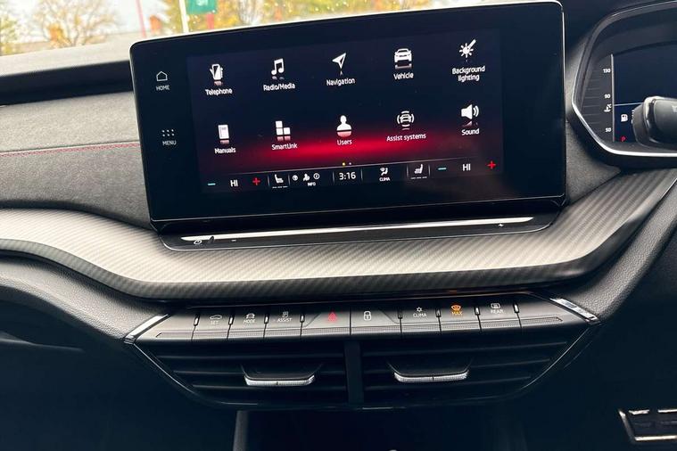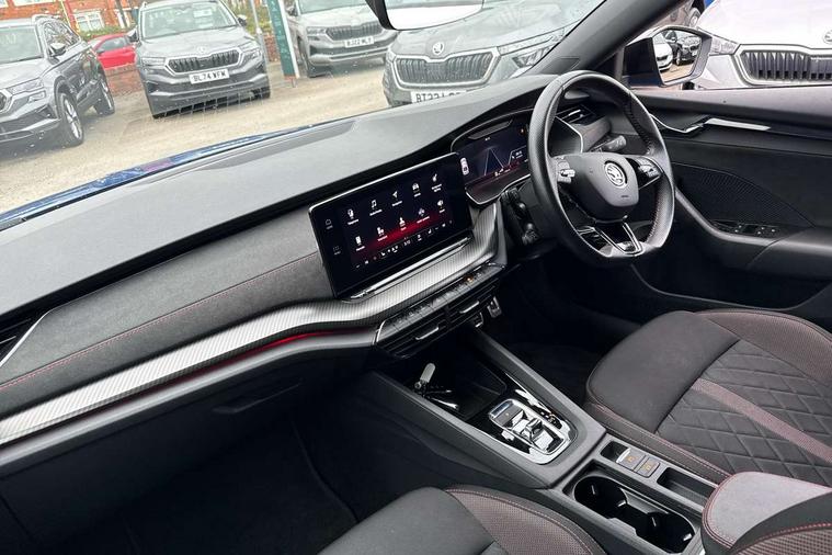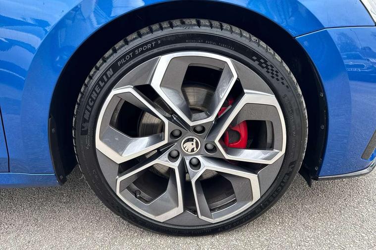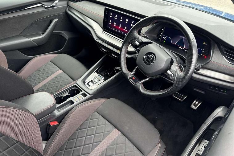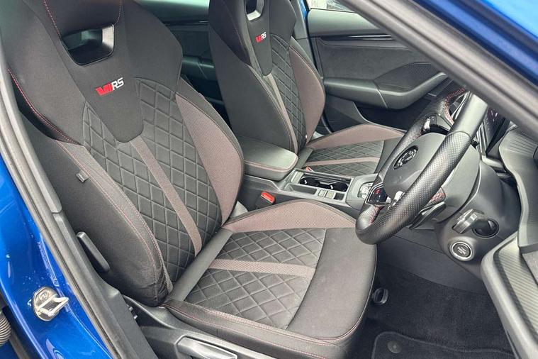 1x USB Type C port in rear view mirror (charging only), 2x USB Type C ports in rear of front centre armrest (charging only), Bluetooth system, Columbus satellite navigation with 10" touchscreen display, Driver fatigue sensor, eCall emergency system, Front and rear parking sensors with manoeuvre assist, Front assist system, Progressive dynamic steering, Smartlink (includes android auto and mirrorlink), Speed limiter, Turn Assist, Virtual Cockpit - 10.25" digital display, Voice control system, Wireless SmartLink for Apple Car Play, Front and rear stabilizers, 2x USB Type C ports (for charging and data transfer), 8 Speakers, DAB Digital radio, Aero front windscreen wipers with intermittent function, Auto dimming rear view mirror, Body colour door handles, Chrome exhaust tailpipes, Door sills with vRS logo, Electric front and rear windows, Exterior gloss black sports styling including front grille, side strip, window surrounds, door mirror and badging, Full LED Matrix headlights with AFS and cornering front fog lights, Headlight washers, Heated rear windscreen, High level third brake light, Ice scraper in fuel cap, LED daytime running lights, Rain and light sensors, Rear fog light on one side, Rear privacy glass, Rear side wing doors, vRS bumpers and lip spoiler, 3 rear headrests, 3 seat bench in 2nd row, 4 foldable roof handles, Aluminium pedals, Black headlining, Black microsuede padded dash panel with red contrast stitching, Chrome inner door handles, Front centre armrest, Front head restraints, Heated front seats, Illuminated glovebox, Leather trimmed gearshift lever, Luggage compartment lighting x1 light, Mechanical rear seat release, Parcel shelf - folding, Single front passenger seat, Sunglasses storage, Textile floor mat set, Three spoke leather sports multifunction steering wheel with paddles, Ticket holder, Umbrella in door panel, Unsplit rear bench seat and split folding backrest, LED interior light pack - Octavia, 3 point front/outer rear seatbelts+pre-tensioners, Alarm with interior monitoring, tilt sensor and back up horn, Automatic door unlocking in case of crash, Automatic fuel cut off in case of crash, Automatic warning lights in case of emergency braking, Curtain airbags and front side airbags, Driver and front passenger airbags, Drivers knee airbag, Electronic parking brake, Emergency call and proactive services, ESC including ABS, EBV, MSR, ASR, EDS, HBA, DSR, Front and rear disc brakes, Front central airbag, Hill hold control, Hill start assist, ISOFIX on front passenger seat and outer rear seats, Manual rear child locks, Passenger airbag deactivate switch, Red brake calipers, Two tone horn, Tyre pressure monitor, Visual and acoustic seat belt reminder, Warning reflectors in front door, Door locks with immobiliser, Keyless entry and start/stop including rear doors, Remote central locking, Carbon optic decorative inserts, Gloss black air vent surrounds, 19" Altair anthracite alloy wheels,