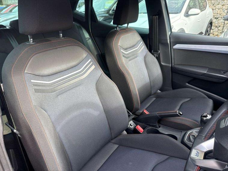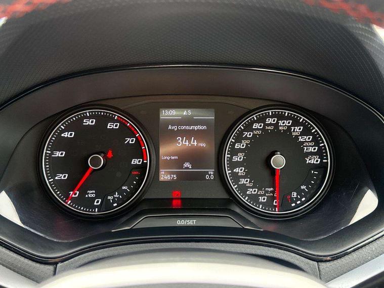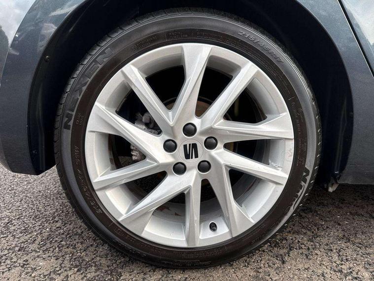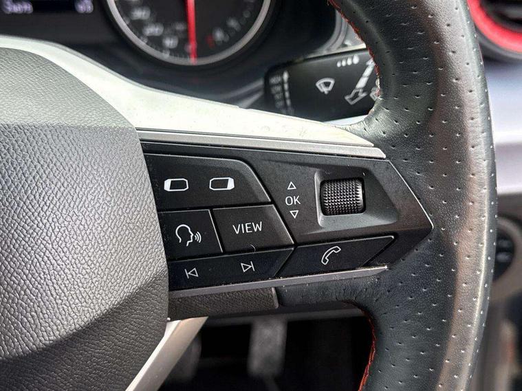 'Lights On' Reminder warning buzzer, 9.2" touchscreen navigation system with type C USB socket, Voice control and DAB/AM/FM radio, Auto start and stop system, Bluetooth audio streaming with handsfree system, Digital clock, Full link smartphone integration with mirror link, wireless apple carplay, Google android auto + USB Type C cable for apple and android devices, Lane assist, Low fuel warning light, Outside temperature gauge, Power Steering, Seat connect with safety, service, remote and online, SEAT drive profiles and ECO function, SEAT logo boot release, Speed limiter, Trip computer, Sports suspension, Auxiliary input socket, Radio/MP3 player, SD card slot, Steering wheel mounted controls, Anti theft roof antenna, Auto dimming rear view mirror, Automatic rain sensing wipers, Black door mirrors, Body colour bumpers, Body colour door handles, Brilliant black window surrounds, Dark tinted rear windows, Electric adjustable/heated/folding door mirrors, Electric front windows, Electric headlight adjustment, Electric rear windows, Front/rear fog lights, FULL LED automatic headlights with dynamic headlight range control, coming and leaving home, LED daytime running lights, LED tail lights, Rear roof spoiler with FR twin exhausts, 60/40 split folding rear seat, Ambient interior lighting, Chrome detailing and black headlining, Cloth upholstery, Dual zone climate control with combination filter, Front courtesy lights, Front cupholders x 2, Front reading lights, Gear shift indicator, Glovebox, Height adjustable front and rear headrests (five), Height adjustable front seats, Height/reach adjust steering wheel, Illuminated air vent surrounds, Illuminated boot, Instrument lighting with brightness control, Isofix, Leather multifunction flat bottomed sports steering wheel, Passenger sunvisor, Sports seats, Sunvisors with mirror and driver side card holder, 3 point seatbelts on all 3 rear seats, ABS, Active front headrests, Child locks on rear doors, Electronic stability control, Energy recovery system, Front assist forward collision warning and autonomous emergency braking, Front driver and passenger side airbags with curtain airbag and front passenger airbag deactivation, Hill hold control, Multi-Collision braking, Seat belt reminder for front and rear seats, Tiredness recognition system, Tyre pressure monitoring system, Electronic engine immobiliser, Locking wheel bolts, Perimeter alarm and interior monitoring with backup horn and tow away protection, Remote central locking + deadlocks, 17" Alloy wheels in Brilliant silver,
