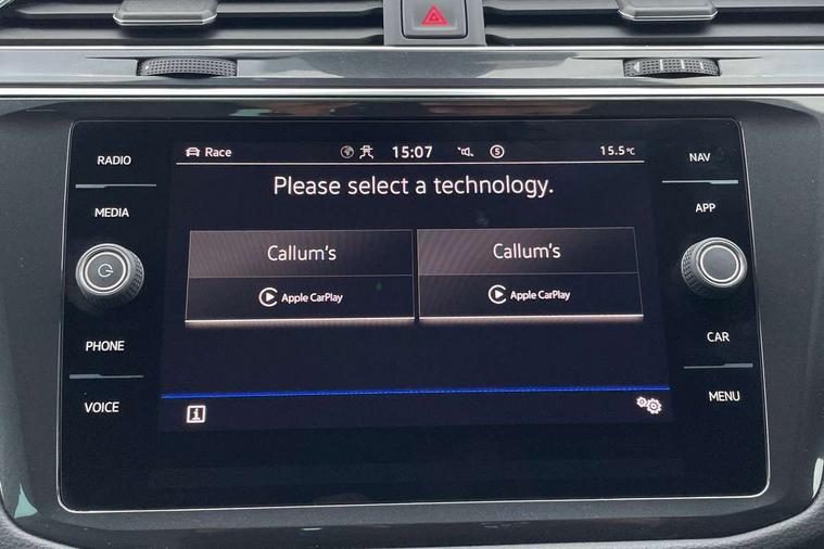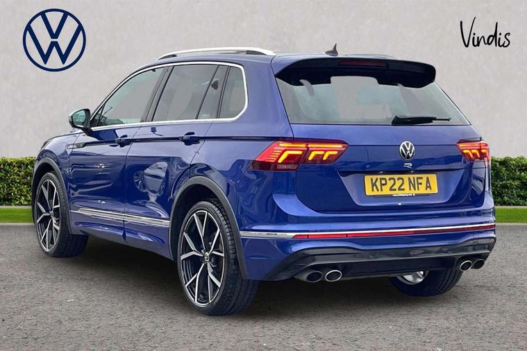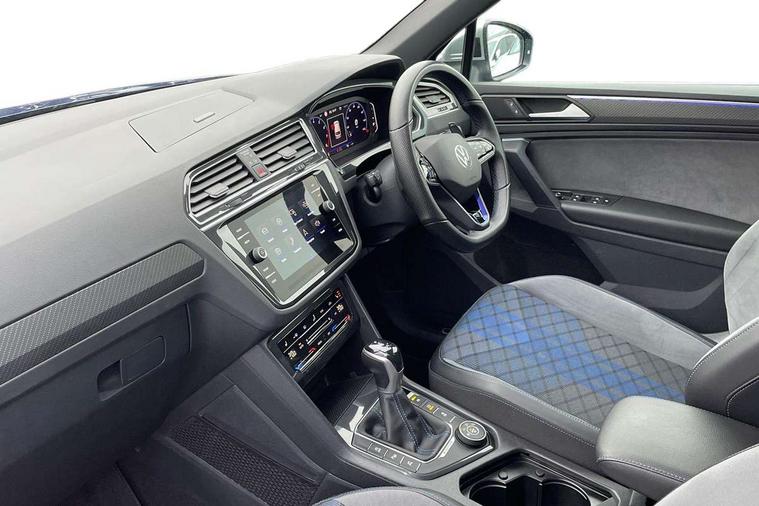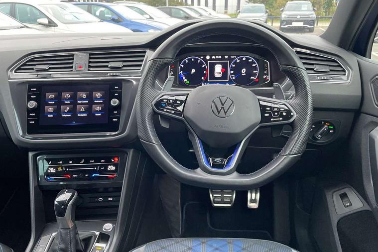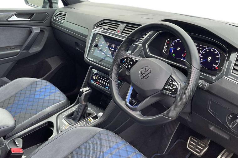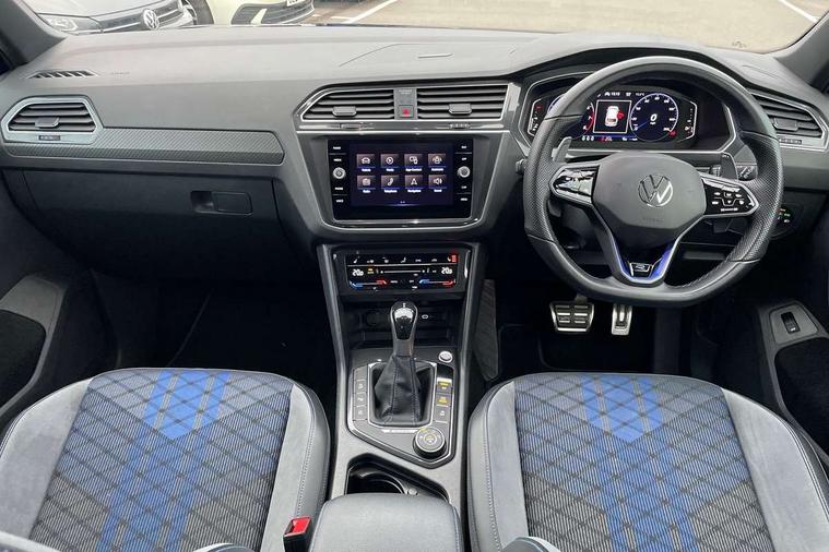 Adaptive cruise control ACC stop and go including speed limiter, App-Connect incl. App-Connect Wireless for Apple CarPlay and Android Auto, Bluetooth phone integration system, Distance control assist, Driver alert system, Driver profile selection, Dynamic road sign display, eCall emergency call system, Electromechanical speed sensitive power steering, Engine start/stop button, Instrument cluster mph speedometer Great Britain, Lane keeping system Lane Assist, Lights on warning, Motorised electric tailgate operated via key fob, drivers door and foot movement under tailgate, Multifunction front facing camera, Outside temperature display, Premium multifunction display with multi colour display, Remote control boot opening, Rev counter, Revision / skills operating concept travel assistant, Service interval indicator, Speed limit display, Start/stop system with regenerative braking, Tailgate/trunk lid unlocking from outside, Trip computer, Warning sound and light for doors and tailgate open, ACC - Adaptive chassis contol with adaptive dampers, All wheel drive - 4Motion, Battery regeneration during braking, XDS electronic differential lock for improved traction and handling, 2 USB-C ports in the front, 1 USB-C charging socket on the center console in the rear, 4 X 20 watt output, 8 speakers, Diversity antenna for FM reception, Radio, SD card slot, Simultaneous pairing of 2 compatible mobile devices, SMS functionality - read, compose and send SMS messages using touch-screen display, Title and cover art display, Auto dimming interior rear view mirror, Automatic headlight control system, Body colour door handles, Body coloured door mirrors with integrated indicators, Chrome matt mirror covers, Chrome moldings on the side windows, Coming/leaving home lighting function, Dynamic headlight range control, Front and rear electric windows, Front illuminated door sills with R logo, Heated rear window, High level 3rd brake light, IQ light-Adv high beam, Dynamic light assist for LED matrix headlamp+LED separate DRL+DCL, dark red rear LED tech, Poor weather light+ cornering light, Laminated safety glass windshield, heat and sound insulating, LED rear number plate lights, License plate carrier in front and rear, Poor weather light and cornering light, Privacy glass for rear side windows and rear window, R-Logo light projection, R-Logo on radiator grille with side panels and rear, R-specific diffuser, painted black with cut out for trailer hitch, R-Specific front and rear bumpers, Rain sensor windscreen wipers, Rear fog lamp, Rear side wing doors, Rear spoiler in R style, Rear windscreen washer and wiper with interval delay, Side and rear windows in heat insulating glass, Silver anodised roof rails, Trailer Stability Programme, Windscreen wipers/ intermittent wipe + 4 position delay, 12V outlet in center console rear and in luggage compartment, 12V outlet in front and tray, 2 cup holders in front, 2 LED front reading lights, 2 LED rear reading lights, 3 bench rear seats in 2nd row, 3 rear headrests, 4 load lashing points, 40:20:40 split folding rear seats, Air Care Climatronic 3 zone automatic climate control with enhanced air filter and controls in the rear, Backrest release for left front seat, Black headlining, Climate control unit rear with touch function, Door and side trim panel in foam film, insert in leatherette, Floor mats with R-Logo and stitching, Front centre armrest, Front footwell illumination, Front seats head restraints (x-adjustment), Height adjustable front seats, Height/reach adjust steering wheel, Instrument lighting white adjustable panel illumination, Interior light with delay, Isofix Preparation 2 Rear child seats, Leather gear knob, Lighting door sill trim at front with R Logo, Lockable cooled glovebox, Luggage compartment lighting, Luggage net, Pedals and footrest in stainless steel, R Performance steering wheel with R button, larger paddle shifters, blue stiching and blue steering wheel clip, R Specific key caps, R-specific sport skin with R Logo in active Info dsiplay, R-taster (direct selection of race mode/ flap control), Rear bench seat asymetrically split folding, longitudinally movable and folding with load-through hatch and center armrest, Remote unlocking for rear seat backrest, Removable luggage cover, Removable rear headrests, Safety optimised front head restraints, Single front passenger seat, Sliding/reclining rear seats, Standard rear seat release, Storage compartment in driver's door, Storage compartment in passenger's door, Storage compartment in rear doors, Storage compartments in luggage area left and right, Storage tray on dashboard, Sun visors with illuminated vanity mirrors, Tool kit, Top sports seats integrated headrest, blue R-Logo in front seats, seat centre panels and outer rear seats in fabric inner side bolster art Velors, Variable boot floor, height adjustable and removable, Ambience pack - Tiguan, Easy open and close pack with safelock - Tiguan, Park assist pack - Tiguan, 3 point seat belt for centre rear seats, 3 point seat belts with seat belt pretensioners for the outer rear seats, Active bonnet, Curtain airbags for front and rear passengers, Driver/Front Passenger airbags, Drivers knee airbag, Electronic parking brake with auto hold, Electronic Stability Control with driver steering recommendation, ABS, ASR, EDL, EDTC and trailer stabilization, Front assist with autonomous emergency braking (for Adaptive Cruise Control ACC up to 130 mph), Front disc brakes, Front passenger airbag deactivation, Front side airbags, Height adjustable front 3 point seatbelts + pretensioners, Hill hold control, Manual child proof rear door locks, Pedestrian monitoring system, Power assisted brakes, Proactive passenger protection system in combination with front assist, Rear disc brakes, Rigid safety cell with front and rear crumple zones, Two tone horn, Tyre pressure monitoring system, Warning sound and light for front seat belts if unfastened, Anti theft alarm system with i