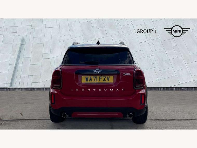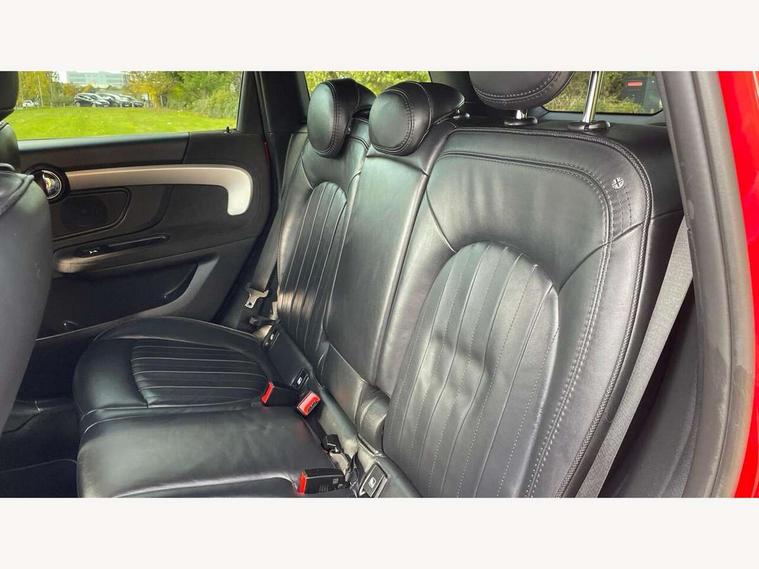 Active Guard incl speed limiting and lane departure functions with auto steering, and front collision warning with brake intervention, Automatic start/stop function with brake energy recuperation, Compatible mobile phone bluetooth with audio streaming, Cruise control with brake assist, Electro-mechanical speed dependant steering assistance, Instrument cluster, On board computer, Rear parking distance control, 51 Litre fuel tank, Double Vanos system, Fully variable valve control, High precision injection, Performance Control, Steptronic sport transmission with double clutch and steering wheel paddles, 6 speakers, FM tuner and DAB digital radio, Bonnet scoop, Chrome fuel filler cap, Day time driving lights, Dynamic brake lights, Electric windows, Heated rear window, Heated windscreen washer jets, LED fog lights, LED Headlights, Metal door sill strips with Cooper S imprint, MINI yours exterior badge in C-Pillar, driver and passenger side, Model logo, Model logo on Tailgate, Rain sensor with auto headlights, Rear fog lights, Rear window wiper, Side scuttle panel with integrated indicator, Split rear doors, Sun/heat protection glass, White indicator lenses, 12V socket in centre console, 360L luggage compartment capacity, 4 lashing eyes in luggage compartment, 40:20:40 split folding rear seats, Anthracite headlining with grab handles and clothes hooks, Chrome interior highlights, Colour line - Carbon black, Cupholders, English handbook, Front headrests, Glove compartment, Height and length steering column adjustment, Interior lighting with 12 basic colours selectable via toggle switch in roof, Isofix rear child seat preparation, Leather gearshift lever and handbrake gaiters, LED reading lights, vanity mirror lights, front foot well light and spotlight on front seats, Manual air conditioning, MINI Yours fine walk nappa leather steering wheel with contrast stitching in silver and MINI Yours badge, MINI Yours floor mats, Multifunction steering wheel, Rear headrests, Storage compartments in doors, Sunvisors with vanity mirrors, Tool kit, Excitement pack - Countryman, Navigation pack - Countryman, 2 tone horn, 3 point seatbelts on all seats, 6 Airbags - front, side, head and seat belt tensioners, Anti-lock braking system (ABS), DSC - Dynamic Stability Control, Electronic handbrake, Front and rear disc brakes, Hill start assist, Tyre pressure monitoring system, Alarm system with tilt sensor, monitoring doors, bonnet interior and tailgate, Auto drive away locking, Deadlocking function, Electronic vehicle immobiliser, Locking wheel bolts, Start/stop toggle with keyless go,