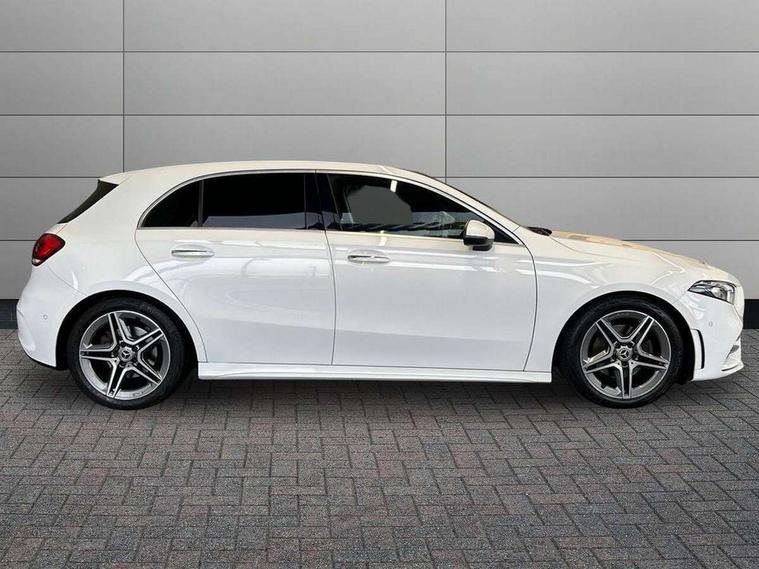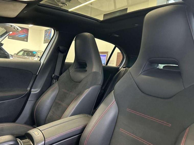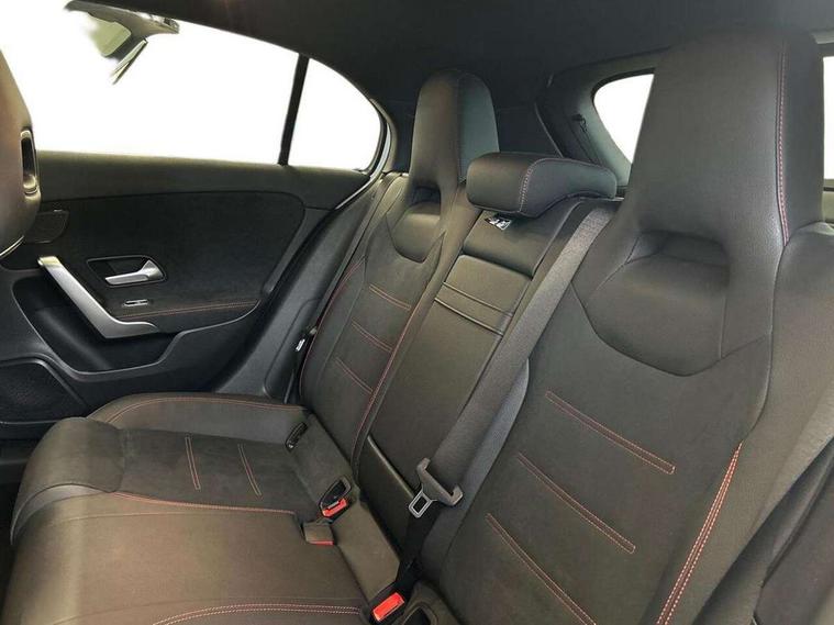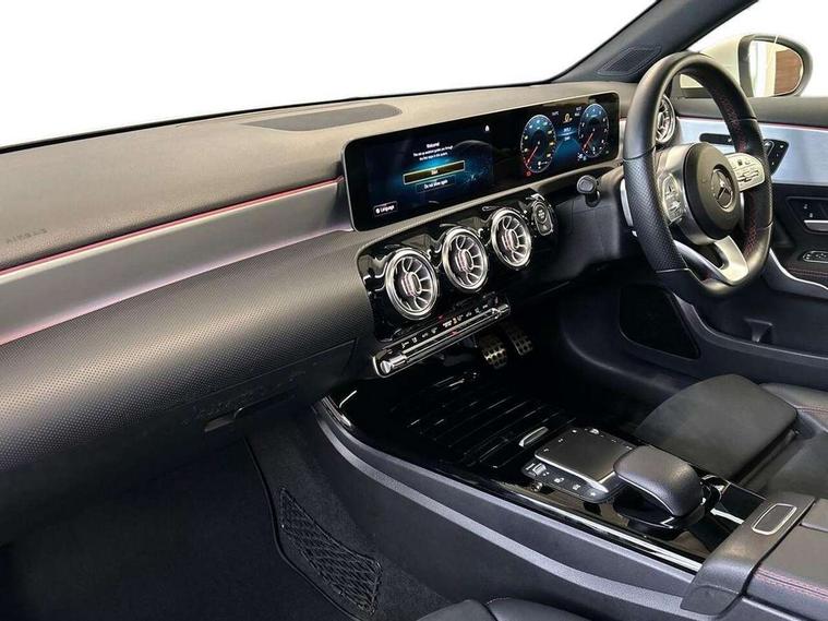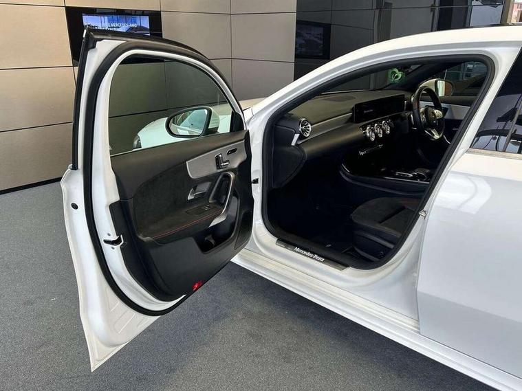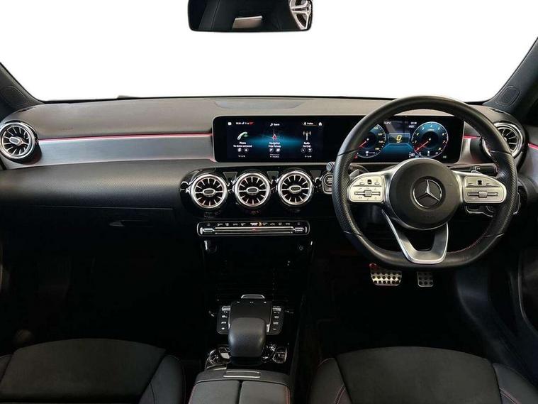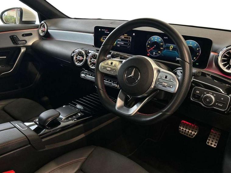 10.25" Digital instrument cluster display screen, 10.25" media display, 180 degree rear view camera with parking guidelines, Active lane keep assist, Active park assist with parktronic system including front and rear parking sensors, Attention assist, Brake pad wear indicator warning light, Direct steering, Dual bluetooth interfaces, DYNAMIC SELECT with a choice of driving modes (ECO, Comfort, Sport and Individual), ECO start/stop function, Fluid level warning indicator for fuel, oil, coolant and washer fluid, Hard-disk navigation, Hey Mercedes Voice activation, Lamp failure indicator, Mercedes me connect including emergency call system, accident recovery, breakdown and maintenance management, Outside temperature gauge, Owners manual in English, Pre-installation for private car sharing, Pre-installation for Vehicle Monitoring, Pre-installation for Vehicle Setup, Preinstallation for Mercedes Benz link, Service indicator (ASSYST), Smartphone integration with Apple CarPlay and Android auto, Traffic sign assist, Trip computer, Wireless charging, Lowered comfort suspension, Rear axle multi-link, 10 speakers, 2 USB ports (type C) in rear stowage compartment and one in front of center console, DAB Digital radio, MBUX multimedia system with DAB digital radio and touchpad including satellite navigation, Mercedes-Benz advanced sound system - 225W, 4 Electric Front and Rear windows, Adaptive brake lights, AMG bodystyling - Front apron with splitter in chrome, rear apron with chrome trim and chrome visible trim elements in tailpipe, Black weather strip, Body colour bumpers, Body colour door handles, Body colour side skirt, Body coloured door mirrors, Chrome beltline trim, Diamond radiator grille with chrome pins and silver louvre + chrome insert, Electric adjustable and heated door mirrors with integrated LED side indicators, Exhaust system - Twin visible tailpipes in polished stainless steel, Headlamp assist automatic headlamp activation, Heated glass rear windscreen + timer control, Illuminated front door sill panels with Mercedes-Benz lettering, LED high performance headlamps with integrated LED daytime running lights, LED tail lamp, LED third brake light, Multibeam LED with adaptive highbeam assist plus, Panoramic sliding sunroof, Privacy glass, Radio aerial, Rain sensing windscreen wipers with two sensitivity settings, Rear fog lights, Rear wiper, Window line trim strip in chrome, 3 Spoke flat bottom leather multi function steering wheel with perforated leather in grip area, 40:20:40 split folding rear seats, Artico man-made leather/Microfibre Dinamica upholstery with red contrast stitching, Auto Mercedes-Benz child seat recognition sensor, Black air vents with surround in silver chrome, Black roof lining, Brushed stainless steel sports pedals with rubber studs, Controller on centre console with chrome surround, Electrically adjustable front memory seats including lumbar support, Floor mats with stitched edging and AMG lettering, Front centre armrest with storage compartment, Front seat backs luggage nets, Front seat cushion length adjustment, Galvanished gear shift paddles on steering wheel, Heated front seats, Height/reach adjustable steering column, Interior lighting - 64 colour Ambient lighting, Rear armrest with 2 cupholders, Rear head restraints, Seat occupancy sensor for front passenger seat, Spectacles compartment for driver, Sports seats with integrated headrests, Stowage compartment in centre console with retractable cover, Sunvisors with illuminated vanity mirrors, Touchpad on center console, Twin front cupholders, Two zone thermotronic luxury automatic climate control, Light and sight pack - A Class, Mirror package - A Class, Seat comfort pack - A Class, 3 rear 3 point seatbelts, ABS with Brake Assist, Active bonnet, Adaptive brake assist with hold function and hill start assist, Black seatbelts, Childproof locks manually operated for rear doors and electrically operated for rear power windows, Crash responsive emergency lighting, Driver and passenger head and side airbags, Drivers knee airbag, Dual stage driver/passenger airbags, Electronic parking brake, ESP curve dynamic assist, ESP with ASR, Front and rear seatbelt reminder, Front brake callipers with Mercedes Benz lettering, ISOFIX and top tether child seat fixing points in two outer rear seats, Tyre pressure monitoring system, Warning triangle and first aid kit, Window airbags, Alarm system/interior protection/immobiliser, Keyless entry lock/unlock, Keyless Go, Remote central locking and crash sensor with emergency opening function, Light aluminium with longitudinal grain interior trim, 18" AMG 5 twin spoke light alloy wheels in titanium grey with highsheen finish, Summer tyres, Tirefit sealant kit,