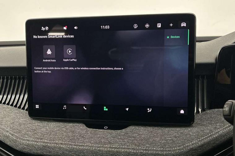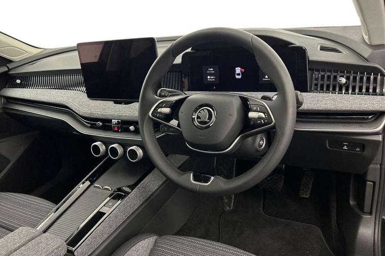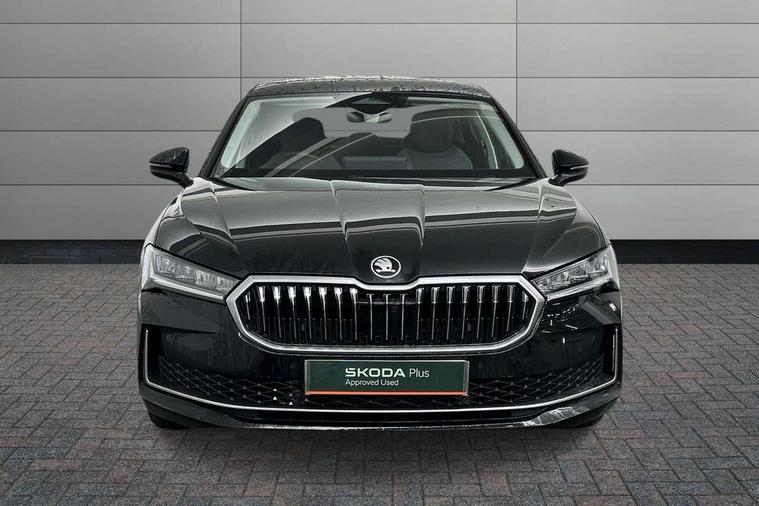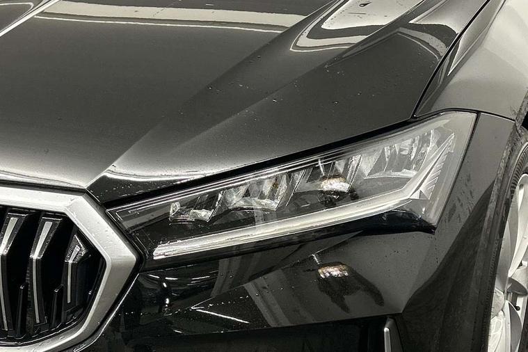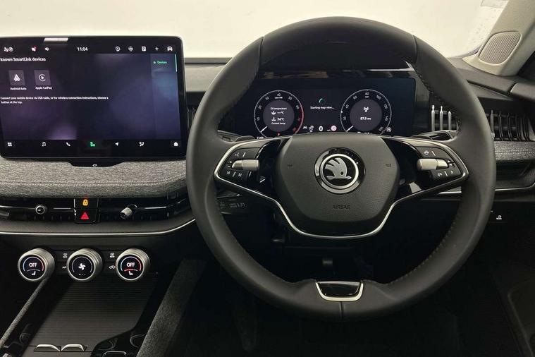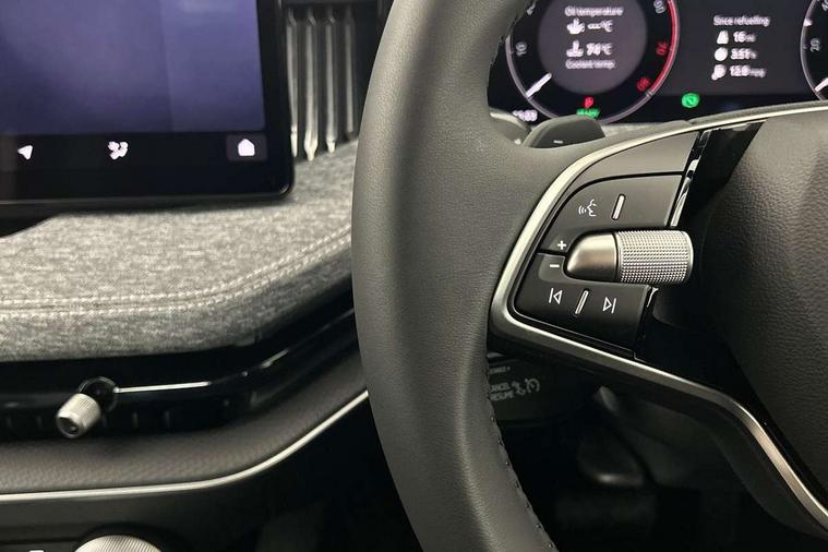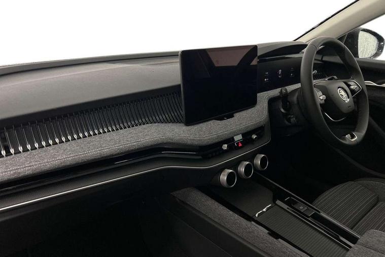 13" touchscreen display with satellite navigation, 4x USB-C ports (2x in front centre console and 2x in rear) (45W), Adaptive cruise control with speed assist, lane assist plus and traffic tram assist, Blind spot detection with door exit warning, Bluetooth system, CareConnect and Emergency Call, ChatGPT functionality, Driver fatigue sensor, Front assist with extended predictive pedestrian protection, Front cross traffic assist, PAS, Quick start all heating software functionality, Rear view camera with washer, Stop/start engine system, Traffic sign recognition, Turn assist with evasive assistance, Virtual Cockpit - 10.25" digital display, Voice control system, Wireless charging for one smartphone (15W) with cooling function, Wireless smartlink apple carplay, SmartLink+ android auto, 8 Speakers, DAB Digital radio, Display cleaner, FM radio connection, Web radio connection, Acoustic side windows and interior noise suppression, Backdrop lighting, Body colour door handles, Body coloured door mirrors, Chrome window surround, Electrically adjustable, heated, folding and driver side auto-dimming door mirrors with integrated indicators and logo projection, Frameless auto-dimming rear view mirror with USB-C, Front windscreen with heat-insulating glass, Ice scraper in fuel tank cap, LED 3rd brake light, Light assist with High beam control, Light assistant (coming/leaving home/tunnel light), Privacy glass, Rear fog light (x1), Rear side wing doors, Tow bar preparation, Unique dark chrome design logo on alloy wheels, Unique dark chrome grille surround with dark chrome rib elements, Windscreen wipers with rain sensor, 12V socket 1x centre console 1x boot, 12V socket and 2x cargo elements in boot, 2 spoke multifunction steering wheel with DSG paddles, 3 seat bench in 2nd row, 60:40 Split folding rear seats, Bottle holders in the front doors 1.5 litre bottle and rear 1.5 litre bottle, Cup holder in front with easy open mat, Front and rear footwell illumination, Front armrest with storage box, Front comfort seats, Heated front seats, Height adjustable driver and front passenger seats with 2-way electric tilt, 4-way pneumatic lumbar support, and extendable thigh support, Height adjustable front and rear head restraints, Height adjustable front passenger seat, Illuminated glovebox, Interior lights with control switches, Isofix child seat fittings in outer rear and front passenger seats, LED front and rear reading lights, Massage function for front seats, Single front passenger seat, Skoda lettering on steering wheel, Storage pockets on back of front seats, Sun visors with illuminated vanity mirrors, Ticket holder on A Pillar, Tri zone climate control, Umbrella in driver's door, 3 rear seatbelts, 8 Airbags - Front driver and passenger, front side driver and passenger, centre, curtain front and rear, drivers knee, Crew protect assist, Driver and passenger seatbelts with warning light, Electronic parking brake, ESC including ABS, EBV, MSR, ASR, EDS, HBA, DSR, RBS, CBC, multi-collision brake (MKB) and Auto hold, Hill hold assist, Power operated child lock in rear doors, Alarm with interior monitoring tilt sensor and back up horn, Backrest remote release from trunk, Electronic engine immobiliser, Keyless start/stop, Remote central locking with SAFE system, Third key, Decorative front door sills,