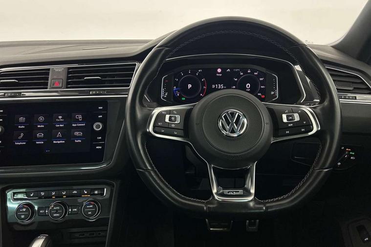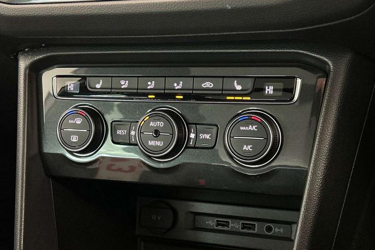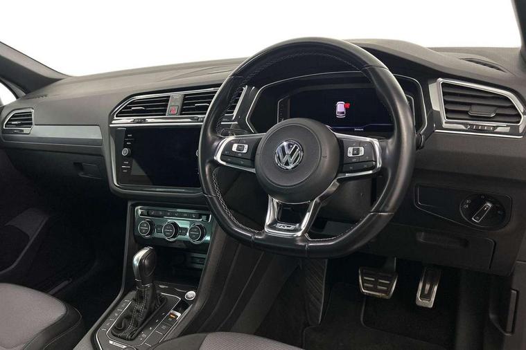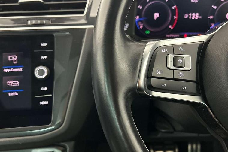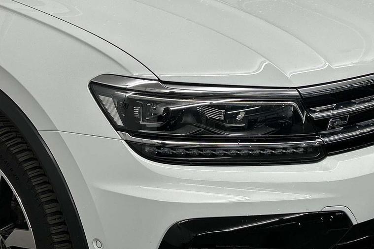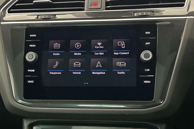 Active information display, Adaptive cruise control, App-Connect, Bluetooth phone integration system, Car-Net Security and Service, Coasting function, Distance control assist, Drive mode selector, Driver profile selection, Fatigue detection system, Front assist, radar sensor controlled distance monitor, city emergency braking + predictive pedestrian protection, Instrument cluster, Lane assist, Low washer fluid warning light, Outside temperature display, Service interval indicator, Speed limiter, Start/Stop function, Warning lights, Misfuel prevention device for diesel engine, XDS electronic differential lock, 2x USB sockets in front, 4 X 20 watt output, DAB Digital radio, SD card slot, Simultaneous pairing of 2 compatible mobile devices, SMS functionality - read, compose and send SMS messages using touch-screen display, Title and cover art display, 3D effect cherry red LED rear tail lights, Auto dimming interior mirror, Automatic activation of hazard warning lights, Black door protector with chrome inserts, Body colour door handles, Body colour door mirrors, Body coloured bumpers, Chrome side body trim, Chrome side window surrounds, Chrome trimmed radiator grille, Coming/leaving home lighting function, Dusk sensor + auto driving lights, Electric folding door mirrors, Electric heated + adjustable door mirrors, Electric panoramic sunroof with sunblind, Front air intake with chrome strip, Front and rear electric windows, Heated rear window, High level 3rd brake light, LED headlights with dynamic light assist daytime running lights and cornering front fog lights, LED rear number plate lights, Rain sensor windscreen wipers, Rear tinted glass from B-pillar backwards approx 65% tinted, Rear windscreen washer and wiper with interval delay, Side door sills with chrome inserts, Side skirts and rear bumper with chrome insert, Silver rear diffuser trim, Silver roof rails, Silver under body guard, Windscreen wipers/ intermittent wipe + 4 position delay, 12V Accessory socket in centre console, 3 rear headrests, 3 zone climate control, 4 load lashing points, 40:20:40 split folding rear seats, Bag hook in luggage compartment, Foldable passenger seatback, Front + rear carpet mats, Front centre armrest with 12v socket, Front centre armrest with storage + rear 2 air vents + cupholders, Front seat back storage pockets, Front seatback folding tables, Height/reach adjust steering wheel, Illuminated driver/passenger vanity mirrors, Illuminated scuff plates, Instrument lighting white adjustable panel illumination, Interior light with delay, Isofix Preparation 2 Rear child seats, Leather gear knob, Load through provision with 2 cupholders when folded, Lockable cooled glovebox, Luggage compartment lighting, Luggage compartment side storage, Map pockets on front seats, Passenger seat height adjuster, Passenger underseat drawer, Rear cupholders, Removable luggage cover, Sliding/reclining rear seats, Storage compartment in driver's door, Storage compartment in passenger's door, Storage compartment in rear doors, Storage tray on dashboard, Sunglasses storage, Variable boot floor, Ambient lighting pack - Tiguan, Winter pack - Tiguan/Tiguan Allspace, 3 rear 3 point seatbelts, ABS+EBD+Brake assist, Active bonnet, Active pedestrian safety system, Curtain airbags, Driver/Front Passenger airbags, Driver/Passenger whiplash optimised head restraints, Drivers knee airbag, DTC - Drag torque control, Electronic parking brake with auto hold, ESP with EDL + ASR, First aid kit, Front side airbags, Front ventilated disc brakes and rear disc brakes, Head airbag system, Height adjustable front 3 point seatbelts + pretensioners, Hill hold control, Passenger airbag deactivate switch, Passenger knee airbag, Proactive preventive occupant protection, Rear side airbags, Rigid safety cell with front and rear crumple zones, Seatbelt warning lamp and buzzer, Two tone horn, Warning triangle, Alarm with interior protection, Electronic engine immobiliser, Remote central locking with 2 remote folding keys, Chrome door trim inserts, Piano black interior trim,