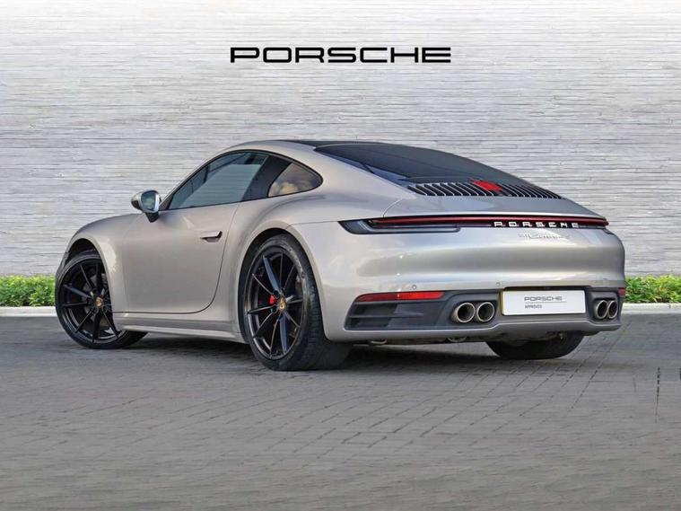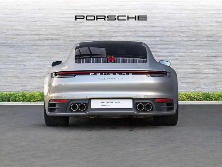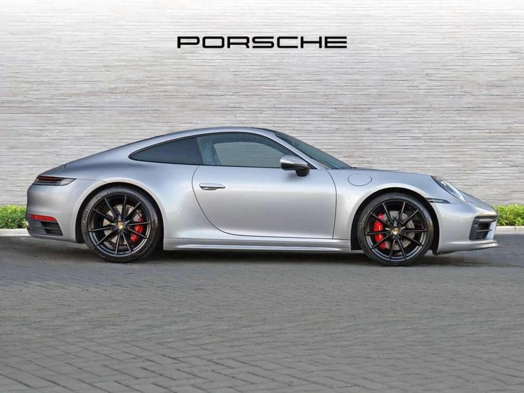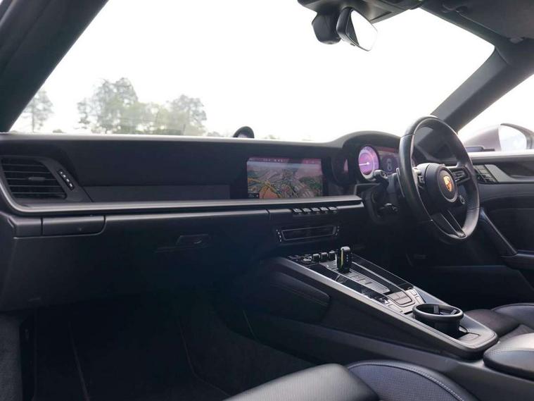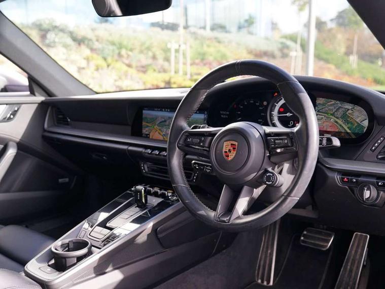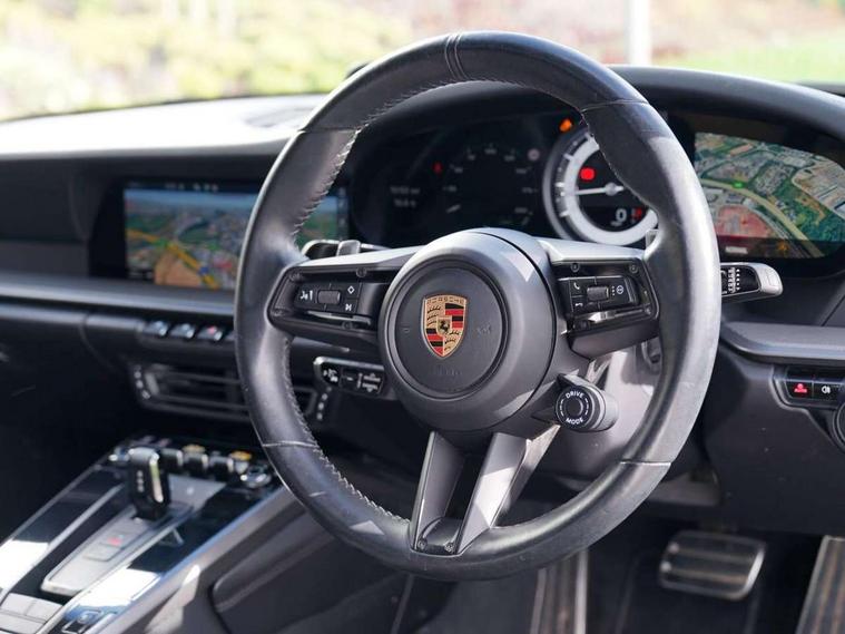 10.9 inch centre display, Automatic start/stop system, Connect Plus, Apple CarPlay, telephone module, wireless internet access, carfinder, remote vehicle status, remote service, vehicle track, Digital display for selected gear in rev counter, Electromechanical power-assisted steering with variable steering ratio and steering pulse generator, Instrument cluster with central analogue rev counter and two 7-inch TFT displays, PAS, Porsche communication management (PCM) including online navigation module, Porsche WET Mode, Service indicator, Stationary management with HOLD function, Trip computer, Warn and Brake Assist, 8 Speed Porsche Doppelkupplung (PDK), Aluminium block and cylinder heads, Direct fuel injection (DFI), Expansion intake manifold, Four valve per cylinder, Front anti roll bar, Gasoline particulate filter, Integrated dry-sump lubrication with an on-demand oil pump, McPherson strut front suspension, Multi-link suspension with anti-roll bar at rear, Porsche Stability Management (PSM), ABS with extended brake functions, Porsche Torque Vectoring Plus (PTV Plus) inc electronically regulated rear differential lock and fully variable torque distribution, Twin turbocharger intercooled, Two three-way catalytic converters and on-board diagnostics for monitoring emission control system, VarioCam Plus variable valve timing and switchable valve lift, Analogue sound system, DAB Digital radio, "PORSCHE" lettering integrated in taillight strip, Automatic headlight activation including welcome home lighting, Automatically operated rear spoiler, Body colour bumpers, Electrically adjustable heated exterior mirrors on door waist rails, aspherical on driver's side, Engine compartment cover grille with vertical slats in silver colour (high-gloss), Four-tract exhaust system with twin dual-tube tailpipes (in stainless steel), Green tinted heat insulating glass, Heated rear windscreen, Intelligent lightweight body in Aluminium/Steel composite construction, LED auxiliary light units in the front end with position lights, direction indicators and side indicators, Model designation on rear trim with highly polished chrome-plated finish, Power windows with one touch operation and door seal protection, Retractable door handles, Side air intakes at front with active cooling flaps and air blades, Taillight strip including integral parking lights and rear driving lights, Three dimensional LED taillights and integral third brake light, Trims on sideskirts in black, Windscreen washer system with aero wiper blades and washer jets, Windscreen with grey top tint, 12V socket in front passenger footwell, Automatic air recirculate, Centre console cupholder, Clothes hooks on seat backrests and on B-pillars, Floor mats, Front and rear head restraints, Heated front seats, Individual driver/passenger temperature controls, Inner door sill guards with model designation, ISOFIX child seat mounting points on passenger seat, Luggage compartment at front, Multifunction steering wheel, Passenger cupholder, Pollen/active carbon filters, Roof lining and A, B & C-pillar trims in fabric, Split folding rear seats, SPORT button to activate dynamic driving settings for engine, transmission (with PDK), Storage compartments in each doors, Two zone automatic climate control, Sound package plus - 911 (992), Brake discs with 350mm diameter at front and 350mm at rear, internally vented and cross-drilled, Dual stage driver/passenger airbags, Electric parking brake, Electromechanical power brake, ESP, Porsche side impact protection doors with thorax airbag in outer backrest side bolster and head airbag for driver/passenger in door panel, POSIP, PTM (Porsche Traction Management) and All-wheel drive with map-controlled multi-plate clutch, Six piston front and four piston rear in closed type aluminium monobloc, TPMS (Tyre pressure monitoring system), Alarm, interior ultrasonic protection, Electronic immobiliser, Keyless Go, Remote central locking, Tyre sealing compound and electric air compressor kit,