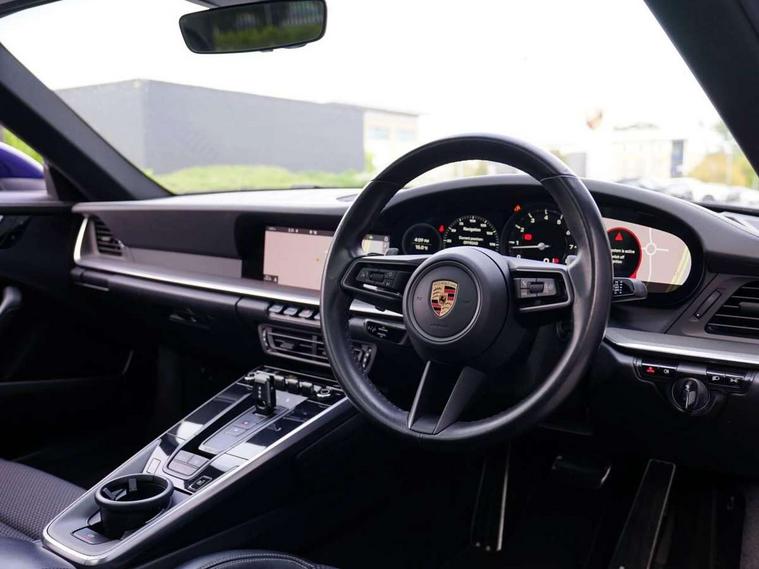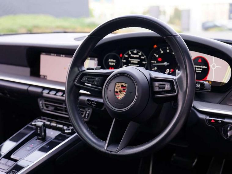 10.9 inch centre display, Automatic start/stop system, Digital display for selected gear in rev counter, Instrument cluster with central analogue rev counter and two 7-inch TFT displays, Porsche Communication Management (PCM) including online navigation module, mobile phone preparation, audio interfaces and voice control system, Porsche WET Mode, Service indicator, Stationary management with HOLD function, Trip computer, Warn and Brake Assist, 8 Speed Porsche Doppelkupplung (PDK), Aluminium block and cylinder heads, Direct fuel injection (DFI), Expansion intake manifold, Four valve per cylinder, Integrated dry-sump lubrication with an on-demand oil pump, McPherson-strut suspension with anti-roll bar at front, Multi-link suspension with anti-roll bar at rear, Porsche Stability Management (PSM), ABS with extended brake functions, Rear wheel drive, Twin turbocharger intercooled, Two gasoline particulate filter, Two three-way catalytic converters and on-board diagnostics for monitoring emission control system, VarioCam Plus variable valve timing and switchable valve lift, Water cooled with thermal management, DAB Digital radio, "PORSCHE" lettering integrated in taillight strip, Auto deploying rear spoiler, Automatic headlight activation including welcome home lighting, Body coloured bumpers, Electrically adjustable heated exterior mirrors on door waist rails, aspherical on driver's side, Engine compartment cover grille with vertical slats in black (high-gloss), Green tinted heat insulating glass, Heated rear windscreen, Intelligent lightweight body in Aluminium/Steel composite construction, LED auxiliary light units in the front end with position lights, direction indicators and side indicators, Model designation on rear trim in high gloss silver colour, Power windows with one touch operation and door seal protection, Retractable door handles, Side air intakes at front with active cooling flaps and air blades, Taillight strip including integral parking lights and rear driving lights, Three dimensional LED taillights and integral third brake light, Trims on sideskirts in black, Windscreen washer system with aero wiper blades and washer jets, Windscreen with grey top tint, 12V socket in front passenger footwell, 2+2 seater with rear engine, Clothes hooks on front seat backrests, Front and rear head restraints, Heated front seats, Inner door sill guards with model designation, ISOFIX child seat mounting points on front passenger seat, Luggage compartment at front, One individual cupholder (passenger side) and one individual cupholder in centre console, Particle/pollen filter with active carbon filter, PDK gear selector with automatic mode, manual gear selection via shift paddles on the steering wheel, Split folding rear seats, SPORT button to activate dynamic driving settings for engine and transmission, Storage compartments in each doors, Two zone auto climate control with separate temperature settings for driver/front passenger, automatic air recirculation mode incl air quality sensor, 3 point inertia reel seatbelts, 4 piston aluminium monobloc fixed + brake calipers at front and rear + brake calipers with black finish, Brake discs with 330mm diameter at front and rear, internally vented and cross-drilled, Electric parking brake, Electromechanical power brake, Full size two stage airbags for driver and front passenger, Porsche side impact protection system (POSIP) includes side impact protection in doors, head/thorax airbags for driver and front passenger, Tyre pressure monitoring system, Engine immobiliser with remote central locking and alarm system with radar based interior surveillance, Keyless Go, Tyre sealing compound and electric air compressor kit,