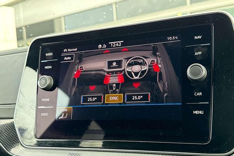 'Lights On' Reminder warning buzzer, 10.25" Digital cockpit pro, Adaptive cruise control including front assist, forward collision warning, autonomous emergency braking, speed limiter, Advanced driver attention and drowsiness monitor, Blind spot monitoring, Car information display, Driver profile selection including ECO function, Dynamic road sign display, E-Sim card for online connectivity, eCall emergency call system, Front and rear parking sensors, Low washer fluid warning light, Multifunction computer with visual gear change recommendation for fuel consumption, Multifunction front facing camera for distance control, Operating permit alteration, Power assisted steering, Preparation for navigation system with media and internet package, Preparation for We connect and We connect plus, Semi-automated driving assistance, travel assist including lane keeping system Lane Assist and emergency assisst, Speedo, rev counter, electronic odometer, trip, service interval display, exterior temperature and fuel gauge, Warning sound and light for doors and tailgate open, Warning sound and light for front seatbelts unfastened, Wireless Car net app connect with Apple CarPlay, combined functionality of Apple CarPlay/Android Auto and MirrorLink, Misfuel prevention device, Start-stop system with battery regeneration (recuperation - energy recovery during braking), 2 USB C ports in front, 2 USB charging sockets on the centre console in the rear charging capacity upto 45W, Diversity antenna for FM reception, Music playback - MP3, WMA and AAC files, Radio, Automatic dimming interior rear view mirror, Automatic hazard lights activation under emergency braking, Automatic headlight control with LED separate daytime running light and coming home and leaving home feature, Black roof rails, Body colour door handles, Body colour door mirrors, Body coloured bumpers, Dynamic headlight range control with self adjusting whilst driving, Electric folding door mirror, adjustable, heated with front passenger exterior mirror lowering function, Exterior mirrors convex on the left and aspherical on the right, Front and rear electric windows, Front door sill protectors with R-Line logo, Galvanised body, Heat insulating and laminated safety glass windshield, Heat insulating darkened glass in side and rear windows, High Beam Assist, automatic sensing for switching between dipped and main beam, LED rear combination lights, LED third brake light, Lower door sills and door pillars in black, Rain sensor, Rear fog light on one side, reversing light on both sides, Rear side wing doors, Rear tinted glass 65% approx light absorbing from B pillar backwards, Rear window aerial, Rear window wiper with intermittent control, Reflectors in all doors, Scuff plates, Tailgate with integrated roof spoiler, 12V Accessory socket in centre console, 2 Front and rear reading lights incorporating LED technology, 3 rear head restraints, 3 seat bench in 2nd row, 60/40 split folding rear seat backrest, Air care climatronic 2 zone air conditioning system, Ambient lighting, Brushed stainless steel pedals, Chrome plated radiator grille inserts, air vent surrounds and light switch surrounds, Cloth upholstery, Comfort front sport seats, Door and side trim panel, Drawer under drivers seat, Driver and front passenger sunvisor with vanity mirror, Dust and pollen filter, Front + rear carpet mats, Front centre armrest with storage compartment, Front footwell illumination, Front seat back storage pockets, Glove compartment door with light, Heated front seats, Heating and fresh air system with 4 stage blower, Height/reach adjust steering wheel, Instrument lighting white adjustable panel illumination, Interior light with switch off delay and dimmer, Isofix anchors for child seats on outer rear seats and front passenger seats, Leather gearshift handle, Leather wrapped multifunction steering wheel, Luggage compartment floor, Luggage compartment lighting, Manual front seats with height adjustment, Padded dashboard, Removable luggage compartment cover, Single front passenger seat, Storage compartment in drivers and front passengers door, Titanium black roof lining, Unsplit sliding rear seat bench, 3 point outer rear seat belts with ECE label, 3 Point seatbelt for centre rear seat, Anti-lock Braking System (ABS) with Hydraulic Brake Assist (HBA), Automatic post collision braking system, Disc brakes in front, Disc brakes in rear, Driver and front passenger safety-optimised head restraints, Drivers and Front Passengers airbags with front passengers airbag deactivation switch, ESC with EDL and ASR (traction control), Extended and predictive pedestrian/cyclist protection, Front and rear passenger curtain airbag system including front side airbags, Height adjustable front 3 point seatbelts + pretensioners, Hill start assist, Pre crash preventive occupant protection, Proactive passenger protection system in combination with front assist, Rear door child safety locks, Rigid safety cell with front and rear crumple zones, Single tone horn, Tyre pressure loss indicator, Volkswagen roadside assistance, Alarm with interior protection, Anti theft alarm system, Electronic engine immobiliser, Remote tailgate unlocking using key fob, Titanium Black Decorative inserts - R Line, Low rolling resistance tyres,