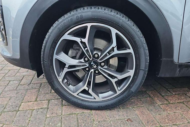 4.2" supervision colour cluster display, 8" touchscreen satellite navigation with European mapping and traffic messaging channel, Android auto with voice control, Apple car play with voice control, Cruise control + speed limiter, Drive mode selector, Driver attention warning, E-call, Emergency stop signalling system, Front parking sensor, Kia Connect (UVO), Kia connected services featuring TomTom live, Lane keep assist, Rear parking sensor, Reversing camera, Speed limit information, Speed sensitive power steering, Trip computer, Windscreen washer level indicator, Intelligent Stop and Go, 6 speaker audio system, Bluetooth audio streaming, DAB Radio with MP3, Rear USB port, Steering wheel mounted audio controls, USB port for connection of a media device, All round electric windows with drivers auto up/down function, Auto dimming rear view mirror, Automatic lighting control, Automatic window defogger, Black wheel arch body mouldings and side sills with dark chrome insert, Body colour door handles with chrome inserts, Body colour door mirrors, Chrome window surround, Dark chrome front bumper insert, Dark chrome front grille surround, Electrically adjustable/heated/folding door mirrors with LED indicators, Front wiper de-icer, High beam assist, High gloss black blade mesh radiator grille, LED Bi-Function headlights, LED daytime running lights, LED ice cube front fog lights, LED rear lights, LED third brake light, Premium paint, Privacy glass - Rear windows and tailgate, Rain sensing front wipers, Rear side wing doors, Rear spoiler, Rear wiper, Roof rails, Shark fin antenna, Silver painted front and rear skid plates, Tinted glass, Trailer stability assist, Welcome and follow-me home light functionality, Wide view drivers door mirror, 12V power in front and rear centre console, 3 seat bench in 2nd row, 3 x passenger assist grips, 60/40 split folding rear seat, Air filter, All-round height adjustable headrests, Aluminium door scuff plates, Aluminium pedals, Black headlining, Centre cabin light, Centre console storage box, Chrome boot sill guard, D-Shaped sports leather steering wheel and perforated inserts with GT-Line logo, Driver and front passenger side sunvisors with illuminated vanity mirrors, Driver's seat manual height adjust, Drivers seat power lumbar support, Dual zone automatic air conditioning, Front and rear door storage, Front cabin LED map light with sunglasses case, Front door courtesy reflectors, Front seat and rear pockets, Front/rear centre armrests, Gear shift indicator, Glovebox illumination, Heated front and outer rear seats, Interior door lock/unlock function, ISOFIX Child seat top tethers and anchor fixings outer rear seats, Leather trimmed door armrests, Leather trimmed gearshift, Luggage area light, Luggage area load cover, Luggage net with hooks, Paddle shift controls, Rear centre armrest with cupholder, Rear coat hooks, Satin chrome interior door handles, Single front passenger seat, Tilt/telescopic adjustable steering wheel, Two tone leather upholstery, Ventilation ducts to rear compartment, Active front headrests, All round 3-point seatbelts, Anti-lock braking system with electronic brakeforce distribution, Dual front side airbags, Electronic parking brake, Electronic stability control with downhill brake control, Front passenger airbag cut-off switch, Front seatbelt pretensioners + load limiters, Height adjustable front seatbelts, Hill start assist control (HAC), Impact sensing auto door unlocking, Rear door child safety locks, Traction control, Twin curtain airbags with roll over sensor, Twin front airbags, Tyre pressure monitoring system, Advanced anti-theft system including immobiliser and alarm, Door deadlocks, Engine Start/Stop Button with Smart Entry System, Locking wheel nuts, Speed sensitive auto door locking, Visible vehicle identification number, High gloss black centre fascia, 19" alloy Wheels B-type, Tyre mobility kit,