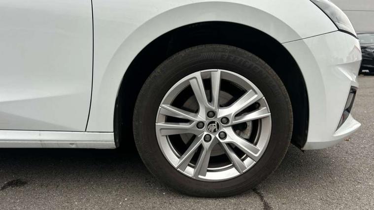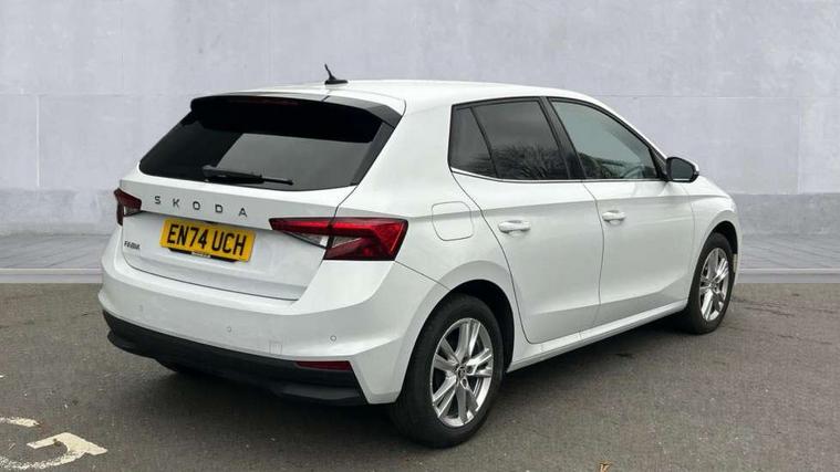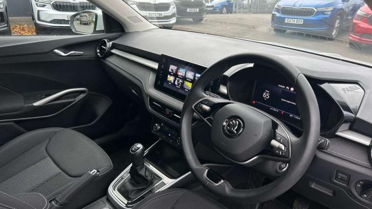 Advanced driver attention and drowsiness monitor, Bluetooth connection, Electromechanical power steering, Exterior temperature gauge, Service interval indicator, Traffic sign recognition, Virtual cockpit with 10.25" colour display, Wireless SmartLink for Apple CarPlay and Android Auto, 6 Speakers (4 in front and 2 in rear), 9.2" colour display skoda navigation system with voice control and web radio, Auxiliary socket for external MP3 player, DAB digital radio reception, Auto dimming rear view mirror, Body colour door mirrors, Body coloured bumpers, Chrome window surround, Door mirror integrated indicators, Front and rear electric windows, Front window wiper intermittent control, Headlight range control - Automatic, Ice scraper in fuel cap, LED 3rd brake light, LED daytime running lights with coming and leaving home feature, LED rear lights, Privacy glass, Rear LED fog light, Rear side wing doors, Rear window wiper with washing nozzles, Roof mounted spoiler, SKODA tailgate lettering in chrome, Unique dark chrome design logo on alloy wheels, 2 LED reading lights in front and rear, 3 rear headrests, Backrest split and folding, Central console with removable cup holder and storage box, Chrome handbrake release button, Comfort seats, Door sills with fabia badging, Dual zone air conditioning with climatronic electronic control, Fabric upholstery, Front centre armrest, Gearshift knob/handle in leather, Hand brake lever handle in leather, Height adjustable front headrests, Height adjustable front seats, Height adjustable steering wheel, ISOFIX and TopTether anchorage points to the outer rear seats, ISOFIX and TopTether on the front passenger seat, Luggage compartment lighting, Manually adjustable lumbar support in front seats, Metallic grey interior door handles, Pollen filter, Rear seat bench unsplit, Single front passenger seat, Skoda lettering on steering wheel, Storm grey headlining, Sun visors with mirror and airbag label on passenger side, Textile floor mats, Ticket holder, Umbrella in drivers door, 3-point height adjustable front seats belts with pretensioner and force limiter, Automatic warning lights in case of crash, Driver and passengers airbag with switch off function, e-Call+, ESC including ABS, MSR, ASR, EDS, HBA and XDS, Front and rear seat belt warning, FRONT ASSIST (AEB City and AEB Inter Urban), Front side airbags, Head airbags, One tone horn, Pedestrian protection, Three rear 3-points safety seat belts with pretensioner and force limiter including stop function for outer rear seat belts, Tyre pressure monitoring system, Anti-theft alarm system including immobiliser, interior monitoring, backup horn, and towing protection, Central locking with radio remote control, interior controls, SAFE function and 2 foldable keys, Black painted air vents, Metallic grey central console cover, Metallic grey upper decorative trim, Satin black door and side trim panel in front, Textile microsuede grey lower decorative trim with art grey stitching, Anti-theft wheel bolts protection, Super-low rolling resistance tyres,
