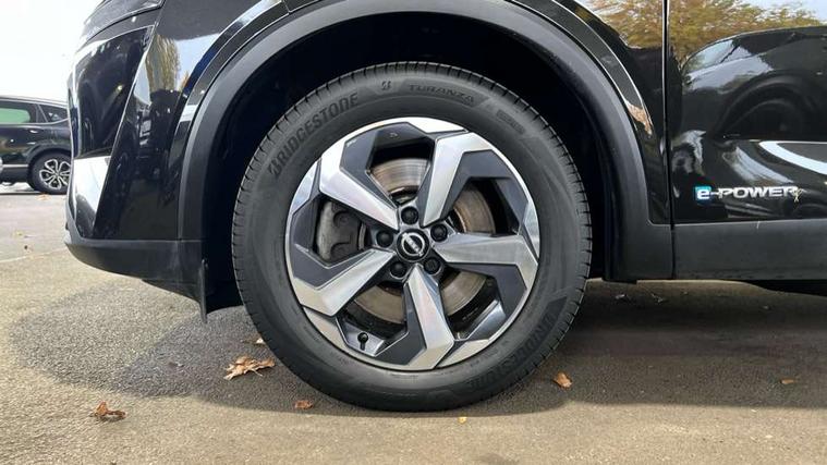 Android auto/Apple CarPlay (Wired), Blind spot warning, Drive modes (sport, normal, eco), Electric speed sensitive power steering, Emergency and breakdown call, Front and rear parking sensors, Full Digital 12.3" TFT Digital Combimeter, Google maps services - search, weather, 3D maps and Google street view, Idle stop/start system, Intelligent around view monitor, Intelligent Cruise control (ICC), Intelligent driver alert system, Intelligent forward collision warning, Intelligent lane intervention, Lane departure prevention, Lane departure warning system, Maximum speed limiter, Moving object detection, Nissan connect 12.3 inch touchscreen infotainment system, Nissan connect navigation, Push button starter, Rear cross traffic alert, Rear view camera, Remote control services - door locks, lights, horn and car locator, Telematics - notifications and connectivity services, TomTom live traffic services, Traffic sign recognition with legal speed adjustment, Trip computer, Virtual personal assistant and firmware over the air capability, Wireless apple carplay, 6 speakers, AM/FM audio system with DAB, Bluetooth audio streaming, Front USB connections (Type-A and Type-C), Rear USB charging only ports (Type-A and Type-C), Auto dimming rear view mirror, Auto rear wiper when reversing, Automatic hazard signal with emergency stop signal, Body colour mirror caps, Body coloured door handles, Bodyside mouldings, Chrome side window finisher, Door handle with button, e-POWER badging, Electric auto folding door mirrors, Electrically adjustable and heated door mirrors with LED turn indicator, Follow me home headlights, High beam assist, Intelligent auto headlights, LED daytime running lights, LED Headlights, LED rear lights, One touch front and rear electric windows with remote opening and closing, Partially body coloured bumpers, Privacy glass, Rear bumper with graphite insert, Rear reversing light (bulb lighting), Rear roof spoiler, Rear side wing doors, Rear styling plate, Shark fin antenna, Splash free rain sensing wipers, Super UV and infrared cut glass, Three blink turn signal, 12v power socket in dashboard and luggage, 2x Rear coat hooks, 3 bench rear seats in 2nd row, 3 rear headrests, 4 folding assist grip, 6-way manually adjustable driver's seat, 60/40 split folding rear seat bench, Ambient lighting around centre console, Centre console storage tray, Chrome interior door handles, Cloth monoform upholstery, Driver and front passenger sunvisors with illuminated vanity mirrors, Driver seat back pocket, Dual zone automatic climate control with pollen filter, e-POWER shifter, Front and rear door storage, Front centre console and armrest, Front cupholders x 2, Front door with bottle holders, Glovebox with light, Hard trunk cover, Height adjustable driver's seat, Height adjustable front headrests, Height adjustable passenger seat, Leather steering wheel, Luggage board system, Luggage space lighting, Manually adjustable passenger (slide recline + lifter), Multifunction steering wheel, Passenger seat back pocket, Rear armrest with 2 cupholders, Rear door bottle holders, Single front passenger seat, Soft PVC kneepad, Steering wheel switches, Sunglasses holder, Tilt/telescopic adjustable steering wheel, Two rear isofix child seat anchorage points with top tether, Welcome light and console tray ambient lighting, 3x3 point rear seatbelt pretensioners + load limiters, ABS with EBD and brake assist, Active brake limited slip, Auto hold function, Child locks on rear doors, Curtain and front side, far side airbags, Driver and passenger airbags, Driver, passenger and 2nd row rear seat belt reminder, Electronic parking brake, Front seatbelt pretensioners + load limiters, Height adjustable front seatbelts, Hill start assist, Intelligent blind spot intervention, Intelligent front emergency braking with pedestrian, cyclist recognition and junction assist, Intelligent rear automatic braking, Tyre pressure monitoring system, Vehicle dynamic control, Capless fuel filler, Engine immobiliser, Intelligent Key, Remote central door locking with deadlocking, Thatcham Cat.1 alarm, Interior instrumental panel B finisher, 18" Diamond cut alloy wheels, Tyre puncture repair kit,