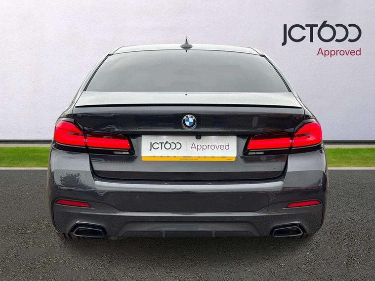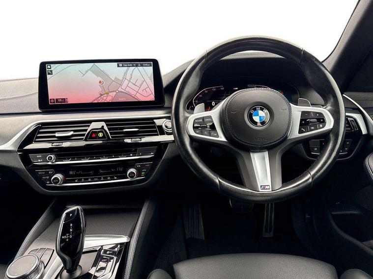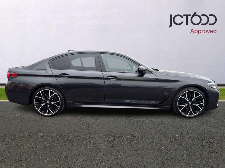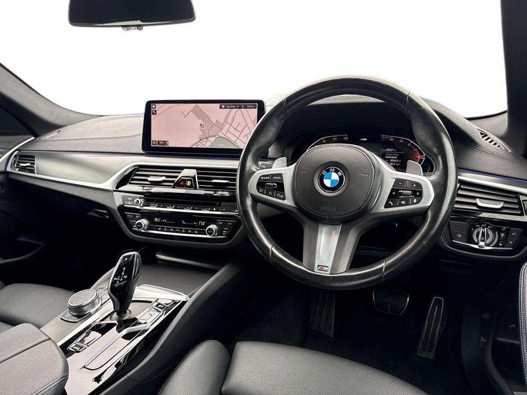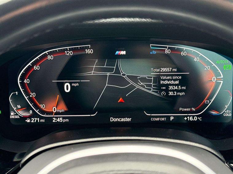 32GB hard disc drive (HDD) memory, Active Guard, Bluetooth connection, BMW ConnectedDrive online services, BMW Live Cockpit Professional sat nav system with 12.3" instrument display and high resolution control display, BMW Teleservices, Brake pad wear indicator, Cruise control with brake assist, Driving experience switch, eCall emergency call system, Electric Power Steering (EPS) with Servotronic, iDrive controller with shortcut buttons, Intelligent emergency call, Multifunctional instrument panel, Oil sensor for level and grade, On board computer inc. average speed, fuel consumption, liquid crystal Info display, journey computer, outside temperature display, personal profile, On-board diagnosis - OBD, Powered by Operating System 7.0, Service interval indicator, Speed limiting function, Stop/start button, 48V Mild hybrid technology, Diesel particulate filter, Drive performance control with ECO PRO comfort + sport mode, Engine cover with twin turbo designation, M sport suspension, Steptronic sport transmission with gearshift paddle switches on steering wheel, DAB Digital radio, Favourite buttons, Acoustic glazing, All round anti-corrosion system, Automatic windscreen wipers and automatic headlight, Automatically dimming rear view mirror, BMW Individual high gloss shadow line includes exterior mirror frame, window frame surround, B pillar finish, air breather in high gloss black, Body colour door handles, Body coloured bumpers, Door handle illumination, Dynamic brake lights with LED technology, Electric front and rear windows with fingertip open/close + anti-trap facility and comfort closing function, Electrically adjustable and heated exterior mirrors includes integrated direction indicators and automatic parking function, Folding exterior side mirror with auto- dimming, Follow me home headlight function, Heated windscreen washer jets, High gloss black active air stream kidney grille, LED daytime running lights, LED Headlights, LED third brake light, M designation on front side panels, left and right in chrome, M Sport exterior styling, Preparation for high beam assistant, Rear boot, Rear side wing doors, Trapezoidal visible exhaust tailpipes, 12V power socket in front and rear, 3 seat bench in 2nd row, Armrest - front and rear integrated door trim, centre console includes storage compartment, rear centre includes 2 cupholders, Child seat ISOFIX attachment with rear outer seats includes top tether, Cup holders (2 front and 2 rear), Front and rear footwell lights, Front reading lights, Height and length adjustable steering column and activation via lateral lever on the steering column, Lockable glove compartment with light, M door sill finishers, M specific pedals, M specific velour floor mats, Multifunction controls for leather steering wheel, Rear headrests, Single front passenger seat, Three spoke sport M leather steering wheel, Ambient lighting pack - 5 Series, Connected package professional - 5 Series, M Aerodynamic pack - 5 Series, Parking assistant pack - 5 Series, Airbags - driver/front passenger, rear and side, first and second row seats head airbags, front passenger seat airbag deactivation, Anti-lock braking system (ABS), Automatic Stability Control (ASC), Brake assist function, Brake energy regeneration, Cornering brake control (CBC), Crash sensor activating central locking release, hazard warning lights, fuel cut off and interior lighting, Deformation zones - front and rear with door reinforcements and bumpers up to 2.5 mph, DSC - Dynamic Stability Control, Dynamic brake control, Dynamic Traction Control - DTC, Electromechanical parking brake with automatic drive away release and auto hold function, Electronic brake force distribution, Engine drag torque control, Front and rear brake discs with interior ventilation, Front head restraints with anti-whiplash, Hill start assist, Mechanical child proof lock on rear doors, Passive protection for pedestrians, Rear door child safety locks, Side impact protection, Three point seat belts for all four seats, Two tone horn, Tyre pressure indicator, Warning triangle and first aid kit, Alarm system (Thatcham 1) with remote control and electronic engine immobiliser, Locking wheel bolts,