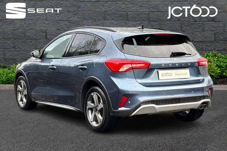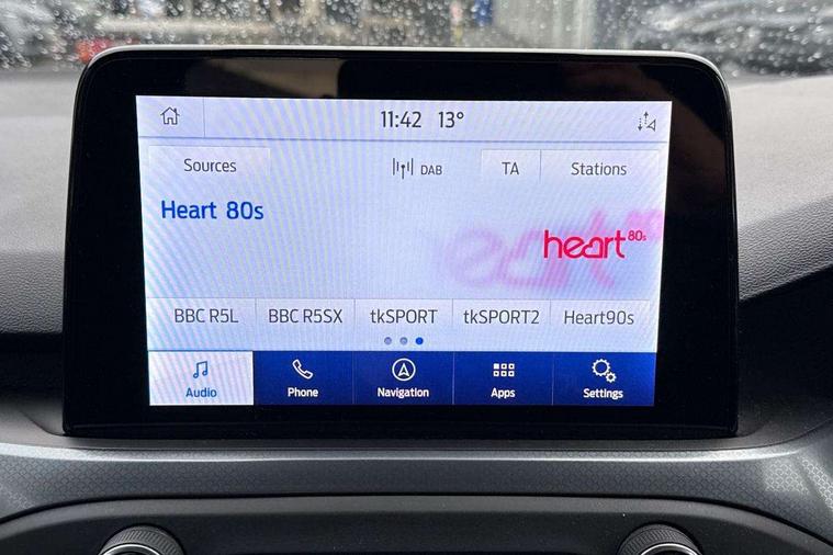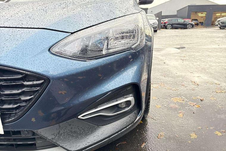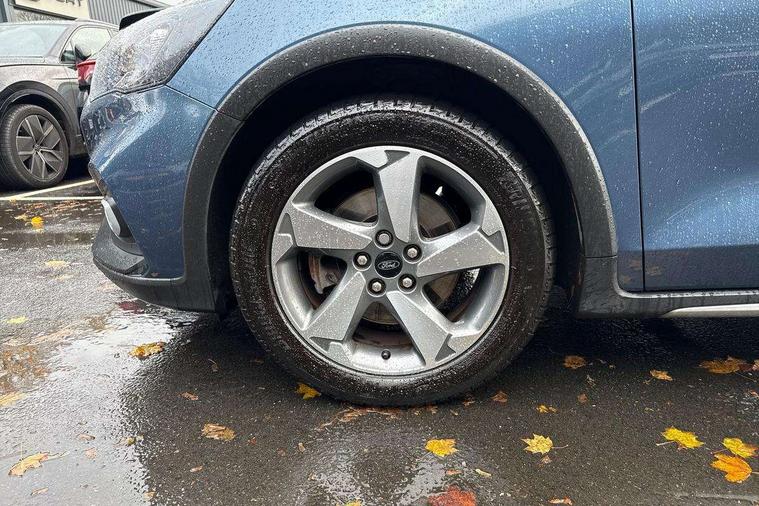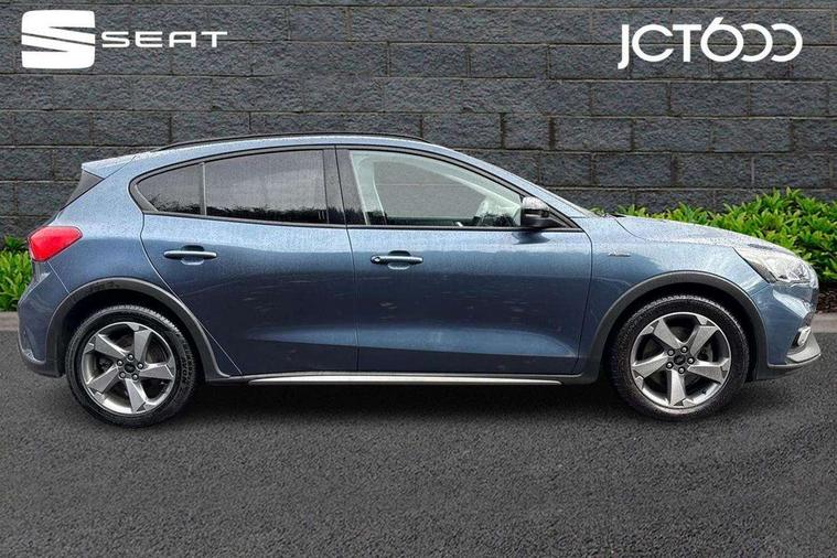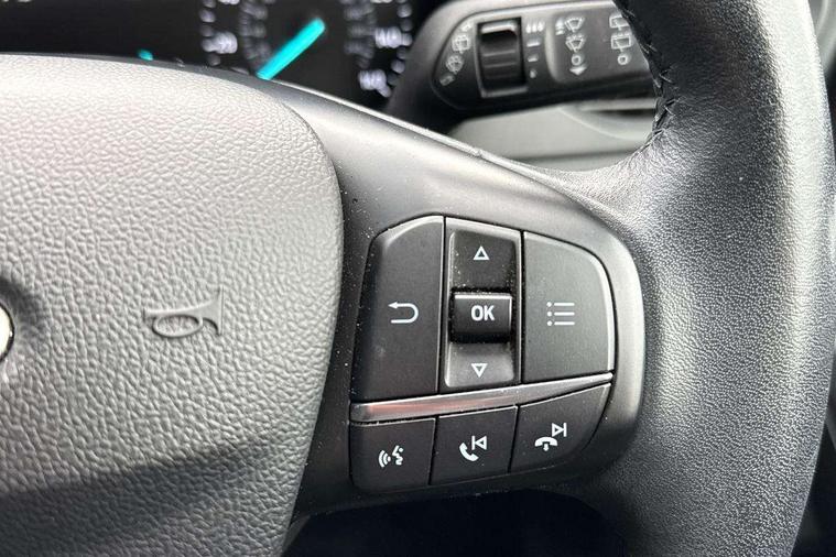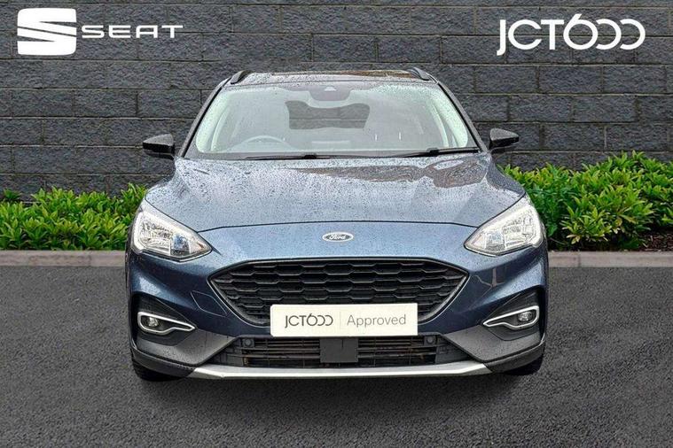 Bluetooth system, Digital clock, Easy fuel capless refuelling system, Eco mode, Ford pass connect, Ford SYNC 3 nav system with DAB radio, 8" colour touch screen, voice control, app link, Apple car play/Android auto and 4.2" TFT coloured cluster, Intelligent speed assist, Lane keeping aid with lane departure warning, PAS, Selectable drive modes with slippery and trail mode, Trip computer, Raised ride height (30mm higher than standard), Aux input, 'Quickclear' heated windscreen/heated washer jets, Active branded scuff plates, Active front and rear bumper with unique upper and lower grille, Auto headlamps (on/off), Black painted roof and mirror caps, Black roof rails, Body coloured bumpers, Body coloured door handles, Electrically operated and heated door mirrors with side indicators, Electrically operated front and rear windows with one touch opening and closing, Front variable intermittent wipers with electric wash, Halogen reflector headlamps, Heated rear window, LED daytime running lamp, LED front fog lamps with cornering function, Rear privacy glass, Tailgate wash/wipe, Twin exhaust tailpipes, Unique skid plates and side rocker mouldings, 3 spoke leather trimmed steering wheel with integrated audio controls, 60/40 split back and cushion rear seats with 2 height adjustable headrests, Centre console with armrest, Cloth upholstery with blue stitching, Driver's lumbar support, Front floor mats, Gear lever gaiter ring with blue stitching, Height adjustable front headrests, Isofix child seat preparation, Leather gear knob, Manual air conditioning, Reach + rake adjustable steering column, Rear centre headrest, ABS+Electronic Brake force Distribution, Auto hold function, Driver airbag, Electronic parking brake, Electronic stability control, Front and rear seatbelt reminder, Front inertia reel height adjustable seatbelts with pre-tensioners, Front passenger airbag, Front side airbags, Hill start assist, Passenger airbag deactivate switch, Post collision braking, Pre collision assist with autonomous emergency braking and pedestrian/cyclist detection, Side curtain airbags, Three rear inertia reel lap/diagonal seatbelts, Tyre pressure monitoring system, Keyless start with 'Ford Power' starter button, MyKey system, Remote central locking & engine immobiliser, Thatcham category 1 alarm, 17" 5 spoke foundry black machined painted finish alloy wheels, Mini steel spare wheel,