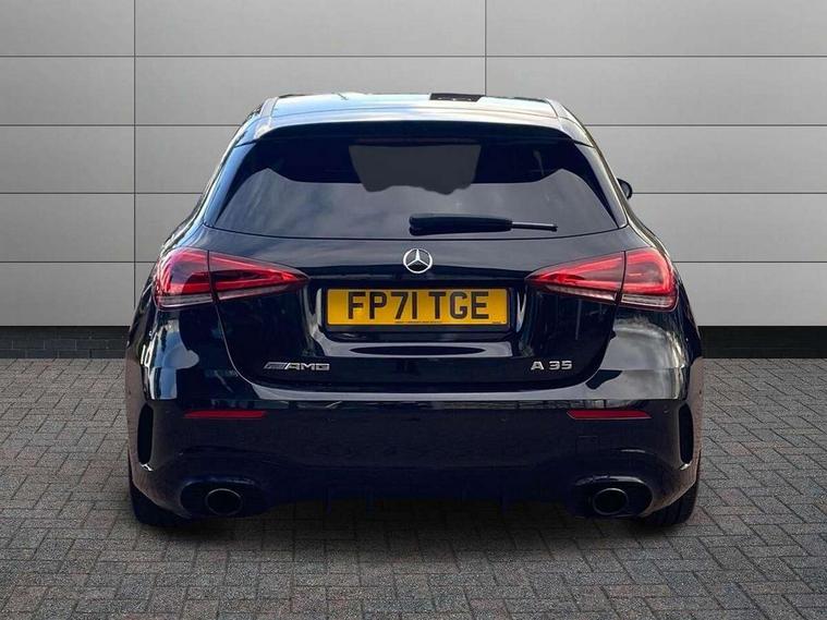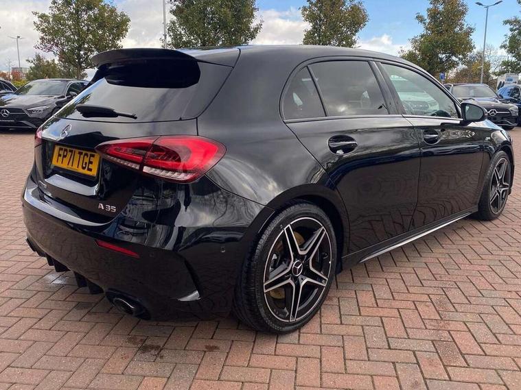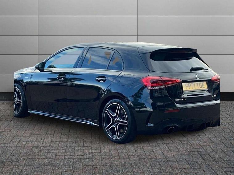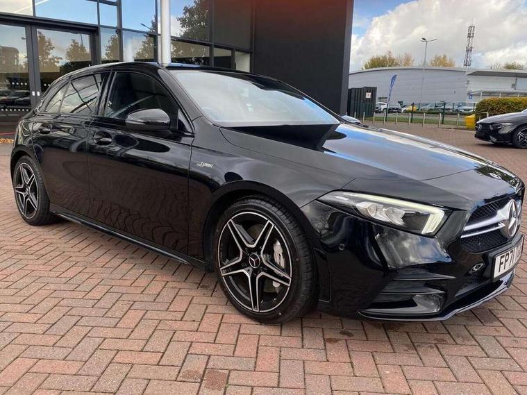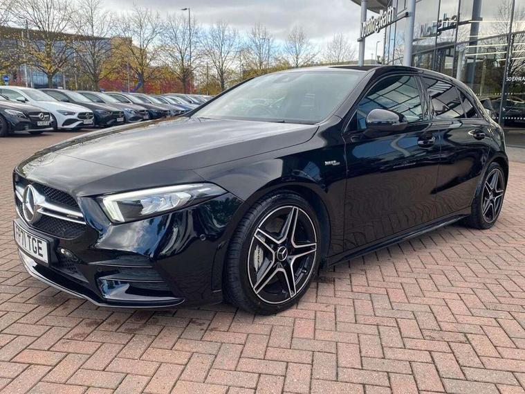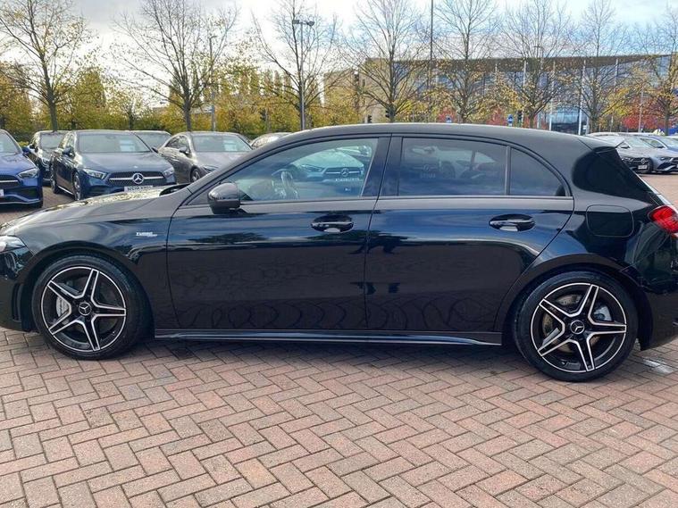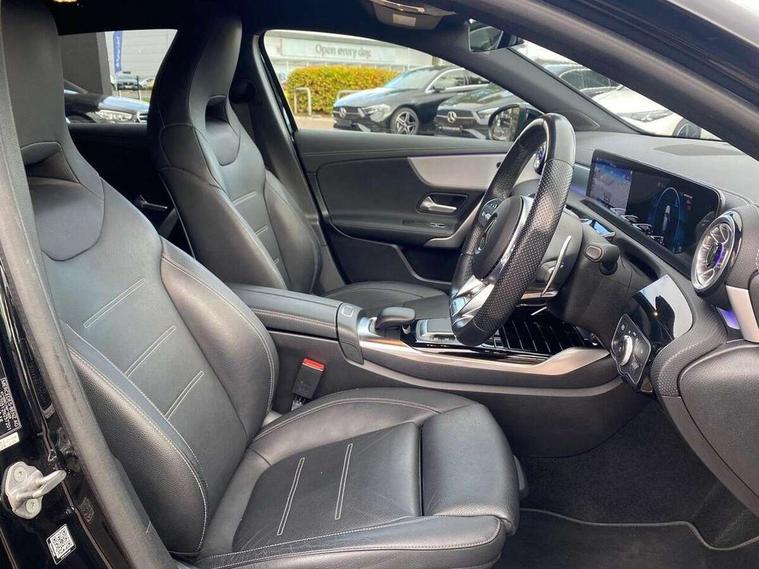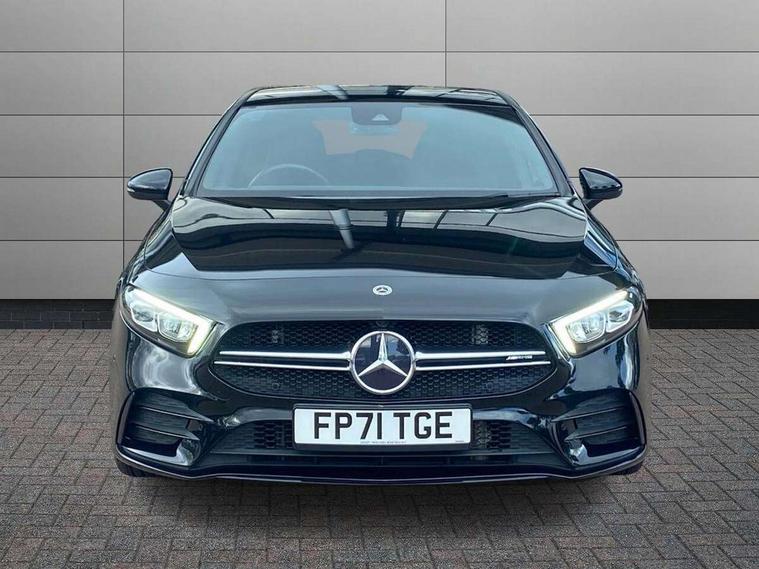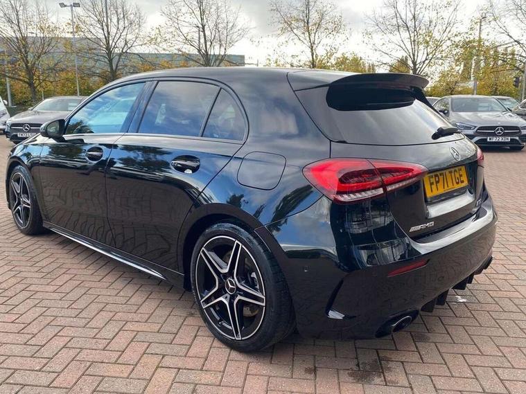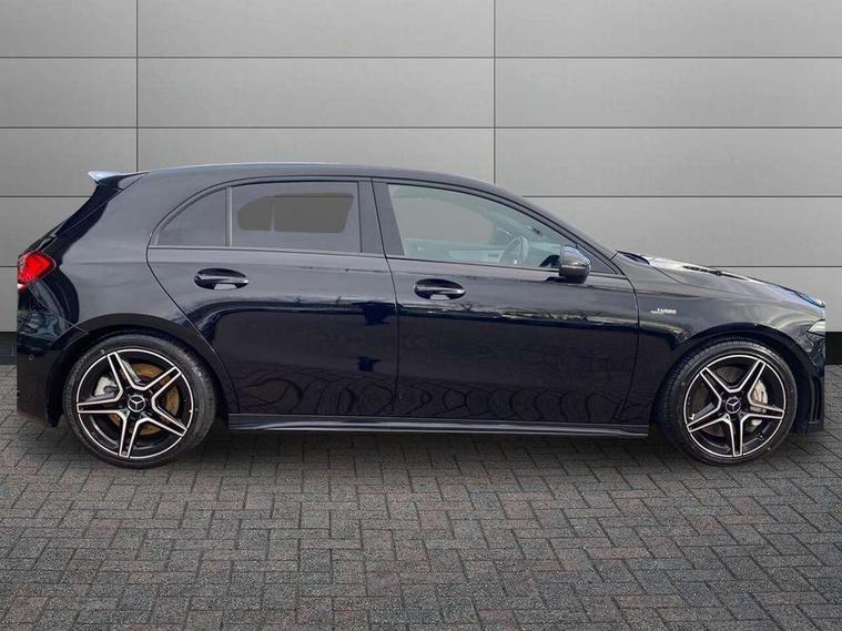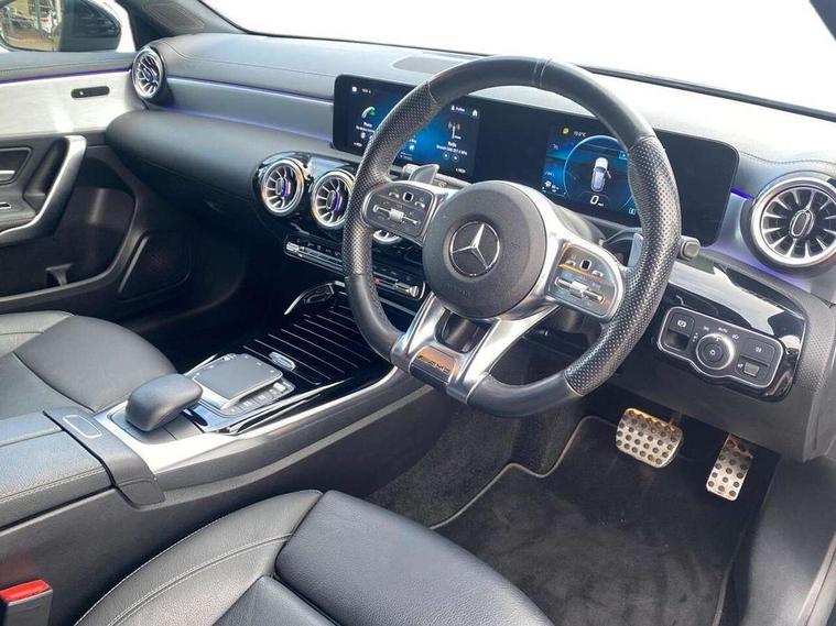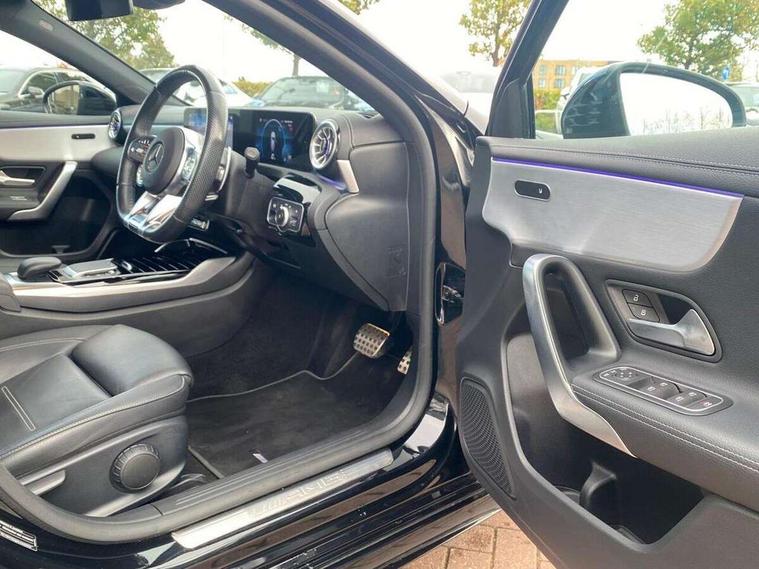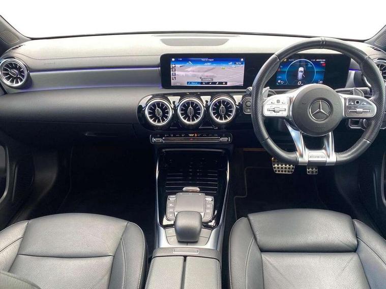 10.25" media display, 180 degree rear view camera with parking guidelines, 7" colour screen in instrument panel, Active parking assist with visual and audible warning of detected obstacles, Attention assist, Brake pad wear indicator warning light, Car wash mode, Cruise control + speed limiter, Direct steering, Dual bluetooth interfaces, DYNAMIC SELECT with driving programs (Slippery, Comfort, Sport, Sport+ and Individual), ECO start/stop function, Fluid level warning indicator for fuel, oil, coolant and washer fluid, Hard-disk navigation, Hey Mercedes Voice activation, Lamp failure indicator, Lane keeping system, Mercedes me connect including emergency call system, accident recovery, breakdown and maintenance management, Mercedes me remote services, Outside temperature gauge, Owners manual in English, Pre-installation for private car sharing, Preinstallation for Mercedes Benz link, Service indicator (ASSYST), Smartphone integration with Apple CarPlay and Android auto, Speed sensitive power steering, Trip computer, Ultrasonic sensors positioned in the front and rear bumpers, AMG performance suspension, Rear axle multi-link, 2 USB ports (type C) in rear stowage compartment and one in front of center console, 6 speakers, DAB Digital radio, MBUX multimedia system with DAB digital radio and touchpad including satellite navigation, Mercedes-Benz sound system - 100W, 4 Electric Front and Rear windows, Adaptive brake lights, AMG bodystyling - Front apron with splitter in chrome, rear apron with chrome trim and chrome visible trim elements in tailpipe, AMG Front apron with flics as air deflector elements on the outer air intakes, AMG radiator grille with twin blade lamella and AMG Lettering, AMG Rear apron with specific diffuser look with four vertical fins and two round chrome plated tailpipe trim elements with a diameter of 90 mm, AMG spoiler lip on roof, AMG Sports exhaust system with two round tailpipes measuring 90 mm in diameter attached in rear apron, AMG lettering plus ribbing on the inside of the, Black weather strip, Body colour bumpers, Body colour door handles, Body colour side skirt, Body coloured door mirrors, Electric adjustable and heated door mirrors with integrated LED side indicators, Front wings wheel arches with TURBO 4MATIC lettering, Headlamp assist automatic headlamp activation, Heated glass rear windscreen + timer control, High gloss black beltline, LED High level third brake light, LED high performance headlamps with integrated LED daytime running lights, LED tail lamp, Privacy glass, Radio aerial, Rain sensing windscreen wipers with two sensitivity settings, Rear fog lights, Rear wiper, Trim elements on louvres in outer air inlets in high gloss black, Wider wheel arches for AMG wheels, Window line trim strip in high gloss black, 40:20:40 split folding rear seats, AMG Performance steering wheel in nappa leather, Auto Mercedes-Benz child seat recognition sensor, Black air vents with surround in silver chrome, Black roof lining, Brushed stainless steel sports pedals with rubber studs, Controller on centre console with chrome surround, Floor mats with stitched edging and AMG lettering, Front centre armrest with storage compartment, Front door sills with AMG lettering, Front seat backs luggage nets, Front seat cushion length adjustment, Heated front seats, Height/reach adjustable steering column, Interior lighting - 64 colour Ambient lighting, Interior mirror with reading lamps in black and frameless, Manual height adjustable front seats, Rear head restraints, Seat occupancy sensor for front passenger seat, Silver coloured aluminium gear shift paddles on steering wheel, Sports seats with integrated headrests, Stowage compartment in centre console with retractable cover, Sunvisors with illuminated vanity mirrors, Touchpad on center console, Twin front cupholders, Two zone thermotronic luxury automatic climate control, AMG night pack - A Class, Light and sight pack - A Class, Mirror package - A Class, Seat comfort pack - A Class, 3 rear 3 point seatbelts, ABS with Brake Assist, Active bonnet, Active brake assist includes forward collision warning system with autonomous braking, Adaptive brake assist with hold function and hill start assist, Black seatbelts, Childproof locks manually operated for rear doors and electrically operated for rear power windows, Crash responsive emergency lighting, Driver and passenger head and side airbags, Drivers knee airbag, Dual stage driver/passenger airbags, Electronic parking brake, ESP curve dynamic assist, ESP with ASR, Front and rear seatbelt reminder, Front brake calipers with AMG lettering, ISOFIX and top tether child seat fixing points in two outer rear seats, Perforated front brake discs, Tyre pressure monitoring system, Warning triangle and first aid kit, Window airbags, Alarm system/interior protection/immobiliser, Keyless Go, Remote central locking and crash sensor with emergency opening function, Urban guard vehicle protection system with immobiliser and interior protection, Light aluminium with longitudinal grain interior trim, 19" AMG multi-spoke high gloss black painted light alloy wheels with high sheen finish, Summer tyres, Tirefit sealant kit,