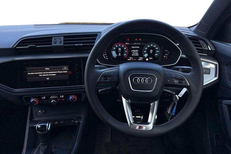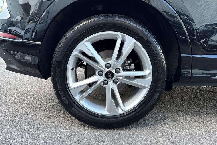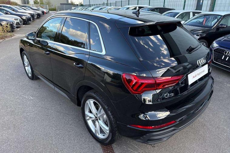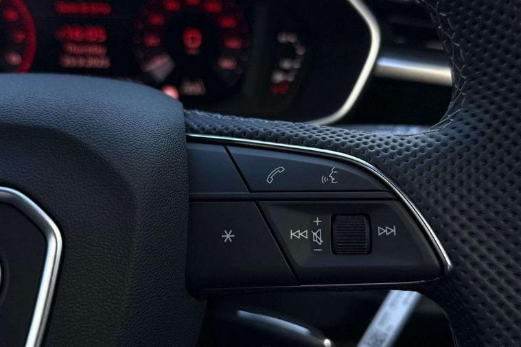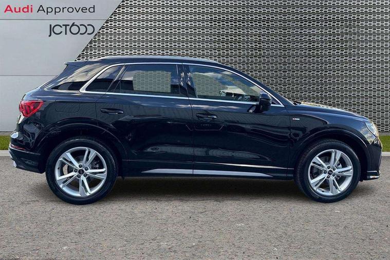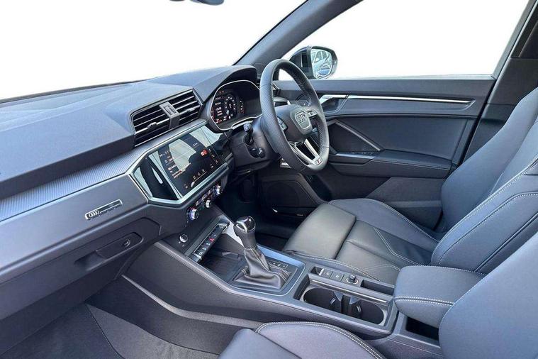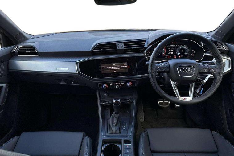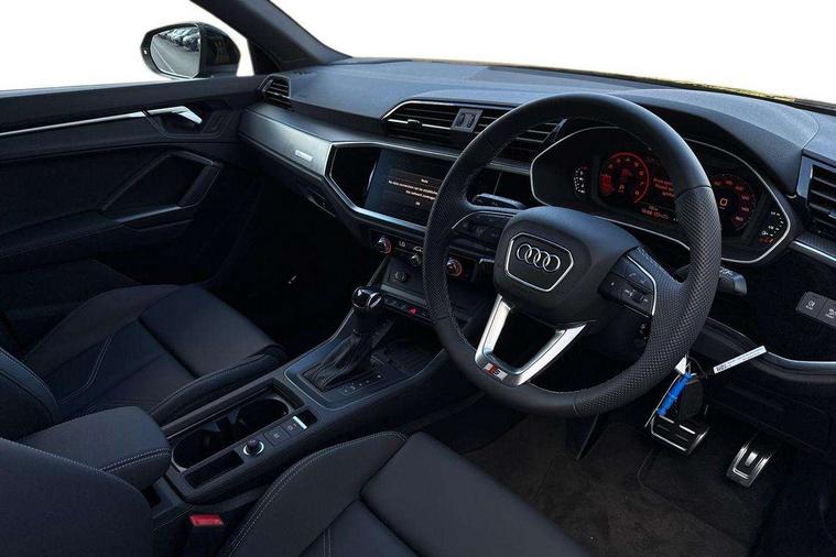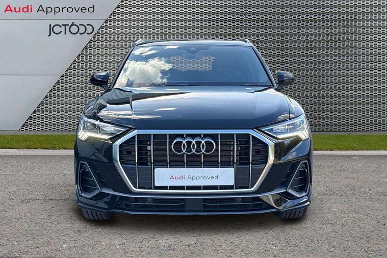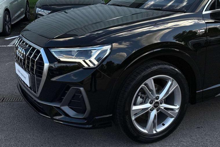 Amazon alexa Integration, Audi connect safety and service, Audi drive select, Audi lane departure warning, Audi Virtual Cockpit - 10.25" display, Bluetooth interface, Camera based traffic sign recognition, Distraction and Fatigue warning, Legal emergency call, MMI Navigation Plus with high resolution 10.1 inch touchscreen colour display, Power operated tailgate, Progressive steering, Service interval indicator, Smartphone interface includes wireless Apple carplay/Android Auto, Start stop system with recuperation, Voice control system with natural language interaction, Sports suspension, 2 USB-C ports with charge and data functions, 6 passive loudspeakers, DAB digital radio module, Acoustic windscreen, Aluminium roof rails, Aluminium window trim, Anthracite black radiator grille, Auto dimming door mirrors, Auto dimming frameless rear view mirror, Body colour front spoiler blade, Electrically folding, adjustable and heated door mirrors with integrated LED side indicators and kerb view function for passenger side, Front and rear electric windows, Front fog lights, Front side air inlets in matt platinum grey, Grille vertical bars in aluminium silver/Matt, High gloss black finish B and C pillars, LED Dynamic rear indicators, LED headlights with LED daytime running lights, LED rear lights, LED third brake light, Privacy glass dark tinted rear and rear-side windows (from B-pillar backwards), Rain and light sensors, Rear diffuser grille in grained matt black, Rear diffuser strip in matt anthracite black, Rear side wing doors, Rear wiper, S line badges on front wings, S Line front and rear bumpers and side skirts, Side skirt insert in matt Platinium grey, Variable front intermittent wipers, 12V socket in rear centre console, 3 seat bench in 2nd row, 3 spoke leather multifunction steering wheel features S badging and grips in perforated leather with contrast stitching, 40:20:40 folding with manual adjustment for 60:40 forwards/backwards position and backrest angle, Adjustable rear seat bench/backrest with centre armrest and cupholder, Black carpet mats, Black cloth headlining, Dual zone electronic climate control, Electric lumbar support, Front and rear black floor mats with contrast stitching in rock grey, Front and rear headrests, Front centre armrest, Height and reach adjustable steering wheel, Horizontal trim strip in matt platinum grey, Illuminated door sill trims with S logo, ISOFIX child seat mounting for front passenger with airbag deactivation and outer rear seat including top tether attachment point for outer rear seats, Luggage compartment sill protection in stainless steel, Manual front seats with height adjustment, Perforated leather gearknob, Single front passenger seat, Stainless steel pedals, Twin leather upholstery with front sport seats + S embossing, Non smoking pack - Q3, 3x3 point rear seatbelts, 6 airbags - Driver, front passenger, curtain and side windows, Audi pre-sense front with pedestrain and cyclist recognition, Electrically operated child locks on rear doors, Electromechanical parking brake, Electronic stabilisation control including ABS, ASR and EDL, Front seatbelt reminder, Hill descent control, Hill hold assist, Pre sense basic, Seatbelt monitoring, Tyre pressure warning, Warning triangle and first aid kit, Anti theft wheel bolts, Immobiliser, Remote central locking, Thatcham approved category 1 anti theft alarm, Aluminium look interior elements, Dark matt brushed aluminium inlay, Detail dashboard around MMI touch colour display in glass look, black with surround in aluminium look, Leatherette door armrest,