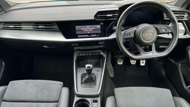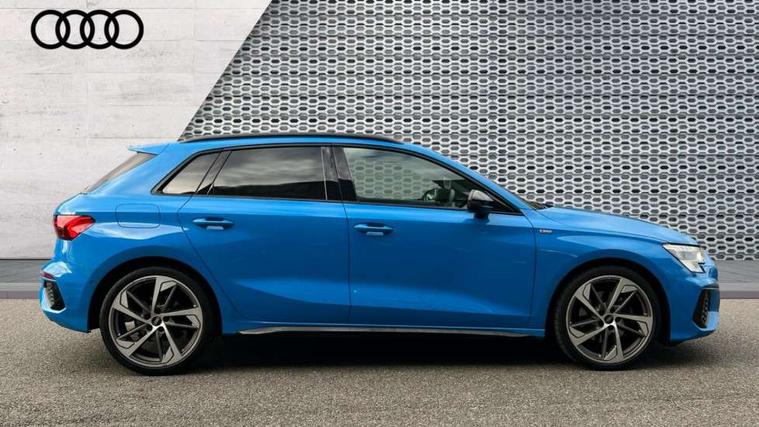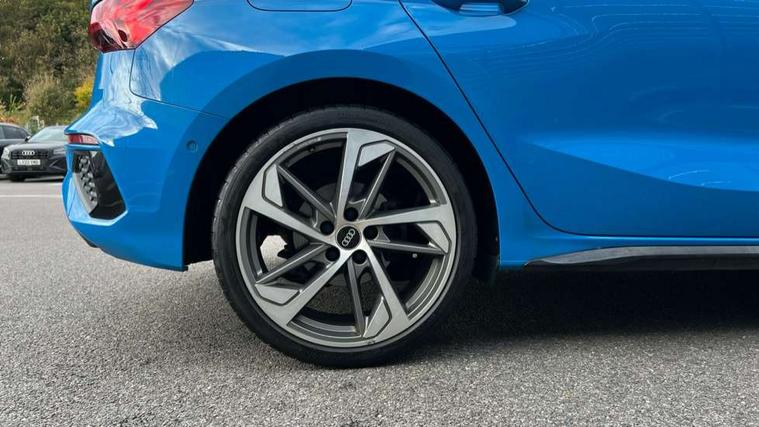 Audi connect emergency call and service, Audi drive select (Auto, Comfort, Dynamic, Efficiency and Individual), Audi smartphone interface, Audi virtual cockpit plus - 12.3" full HD resolution dynamic digital instrument cluster, Automatic start/stop system with recuperation, Bluetooth interface, Collision avoidance assistant, Electromechanical power speed sensitive steering, Lane departure warning system, MMI Navigation Plus with high resolution 10.1" colour touch screen display, Service indicator, Trip computer, Voice control system with natural language interaction, Sports suspension, 2xUSB-C connection with data and charging functions, 6 passive loudspeakers, DAB Digital radio, 3rd brake light, Acoustic glass windscreen, Audi matrix LED headlights with LED rear lights + dynamic front and rear indicators, Auto dimming frameless rear view mirror, Body colour front spoiler blade, Front electric windows, Headlight washers, Illuminated aluminium inserts front door sills with S logo, LED daytime running lights, Light and rain sensors, Privacy glass - dark tinted rear window, rear door and side windows, Rear diffuser in grained matt black, Rear electric windows, Rear side air outlets in grained matt black, Rear wiper, S roof spoiler, 12V socket and storage compartment in front centre console, 4 way electrically adjustable lumbar support for driver and front passenger, 40/20/40 split folding rear seat bench with cupholder, Black cloth headlining, Dual zone electronic climate control, Front and rear centre armrest in leather, Front and rear headrests, Front/rear floor mats, Heated front seats, Height and reach adjustable steering wheel, Interior lighting - glove compartment light and right hand side, Luggage compartment floor covering, Seat side bolsters, Stainless steel pedals and front footrest in black, Aluminium interior elements pack - A3 Sportback, Black styling pack - A3 Sportback, Dinamica microfibre/mono.pur 550 artificial leather pack - A3 Sportback, Extended ambient lighting pack - A3 Sportback, LED interior lighting pack - A3 Sportback Edition 1/Vorsprung, 3x3 point rear seat belts, Driver and front passenger airbag with passenger airbag deactivation, Electronic Stabilisation Control (ESC) including ABS, ASR and EDL, First aid kit with warning triangle and 2 safety vests, Front side airbags with head airbags and interaction airbag, Hill hold assist, Pre-sense front with pedestrian and cyclist detection, Seatbelt monitoring, Tyre pressure loss indicator, Anti theft alarm, Anti-theft wheel bolts, Electronically operated child lock, Immobiliser, Remote control central locking, Accent surfaces in the dashboard and centre console in platinum grey silk effect paint finish, Dark spectrum aluminium inlays, 19" 5 arm trapezoid design alloy wheels in titanium matt grey with diamond cut finish,