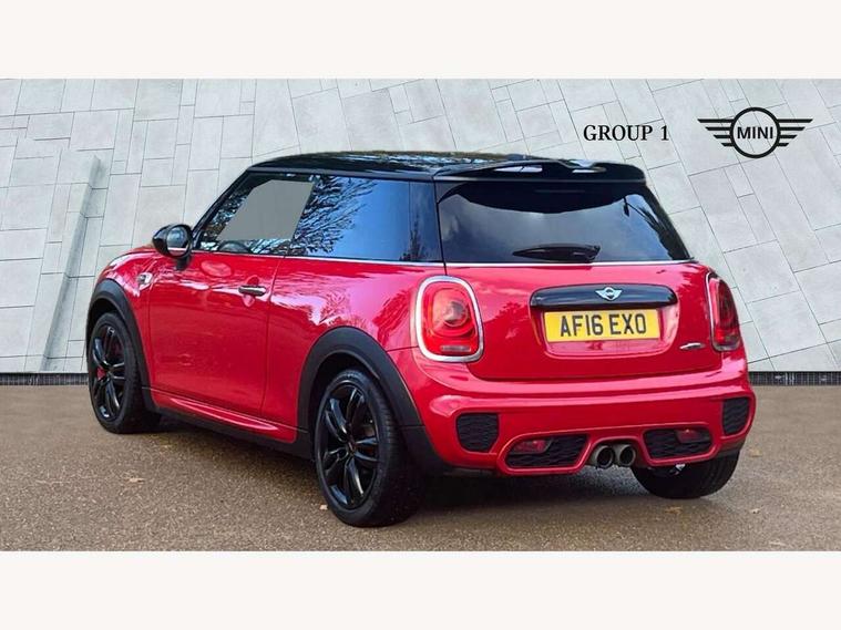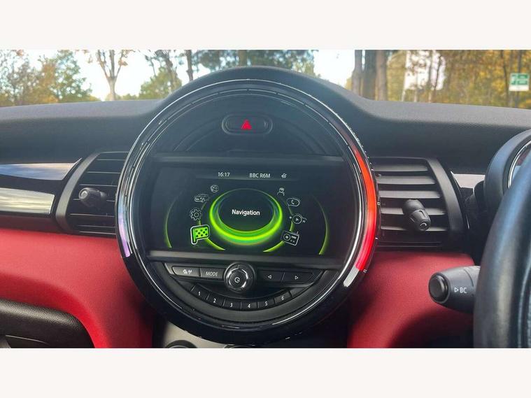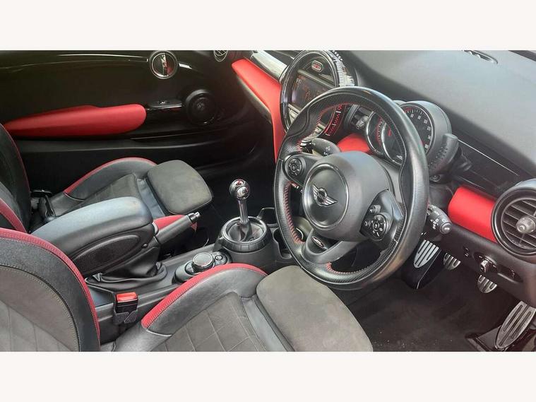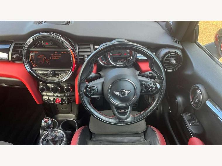 Acoustic seat-belt warning, Brake fluid level warning light, Brake pad wear indicator warning light, DTC - Dynamic traction control, Exterior temperature gauge, Intelligent emergency call, MINI Driving Modes - centre toggle switch to control driving setting (sport, mid and green), MINI TeleServices, Oil level indicator, On board computer, Push button starter, Service interval indicator, Servotronic PAS, Electronic differential lock, Performance Control, Auxiliary input socket, DAB digital radio module, 2 speed wipers+intermittent wipe, Anti dazzle mirror, Anti trapping/one touch open close front windows, Body colour scoop integrated into engine- compartment lid, Body coloured bumpers, Chili red grille bar, Chrome bezels around rear lights and headlights, Chrome door handles, Chrome plated fuel cap, Chrome plated trim on bottom edge of window, Chrome strip on lower grille, Electric front windows, Electrically adjustable door mirrors, Extended wheel arches, Follow me home headlights, Green tinted heat insulating glass, Heated door mirrors/heated windscreen washers, Heated rear window with auto timer, High gloss black tailgate, Honeycomb radiator grille, John Cooper Works roof spoiler, Metal look door sill finishers, Rear apron, Rear wiper, Side scuttles, Twin chromed exhaust pipes, White indicator lights, 2 rear head restraints, 4 boot load lashing points, 6 way manually adjustable passenger seat, 6-way manually adjustable driver's seat, Active carbon filter, Air recirculation system, Anthracite headlining, Auxiliary socket in centre console storage compartment, Centre console storage, Driver's seat height adjuster, Driver/passenger sunvisors, Easy entry seats, Front and rear cupholders, Front head restraints, Front interior light, Front passenger grab handle, Front seat backrest storage nets, Front sports seats, Gear/selector and handbrake in artificial leather, Internal chrome door handles, Isofix child seat preparation, Luggage compartment lighting, Multifunction steering wheel, Passenger seat height adjuster, Reach + rake adjustable steering column, Rear grab handles, Rear storage trays, Split folding rear seats, Storage compartments in doors, Toolkit in luggage compartment, Vanity mirrors, 3 point seatbelts, ABS/EBD, ASC+T, Brake calipers in red, Cornering brake control (CBC), Crash Sensor - activates hazard/interior lighting + unlocks doors, Driver and passenger airbags, Driver/front passenger side airbags, DSC - Dynamic Stability Control, Fuel cut off safety device, Head airbags, Hill start assist, Passenger airbag deactivation system, Seatbelt pretensioners, Tyre pressure warning, Ventilated front disc brakes, Drive away door locking, Locking wheel bolts, Remote central locking/doors+fuel cap+tailgate, Second remote key, Thatcham category 1 alarm + immobiliser,