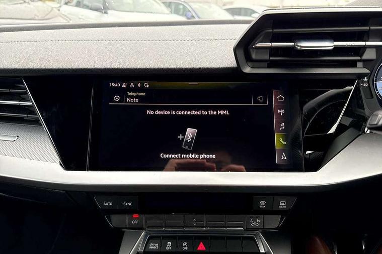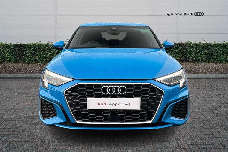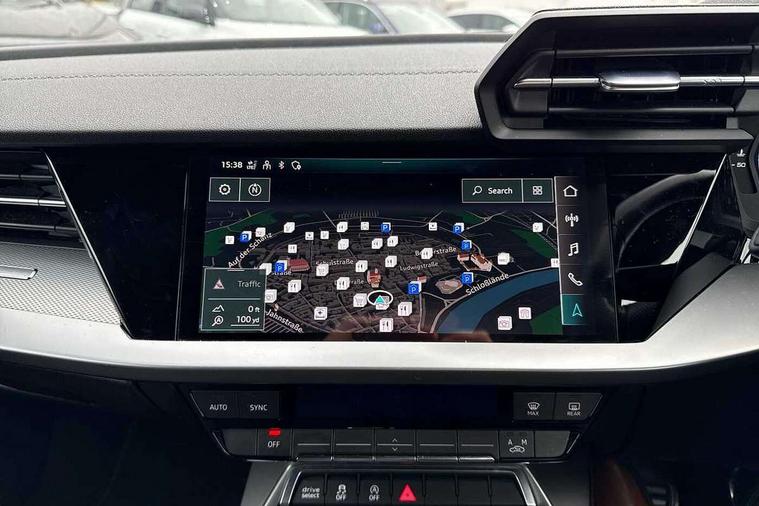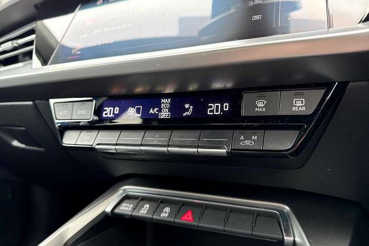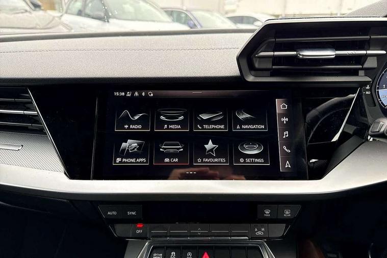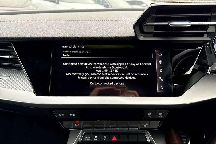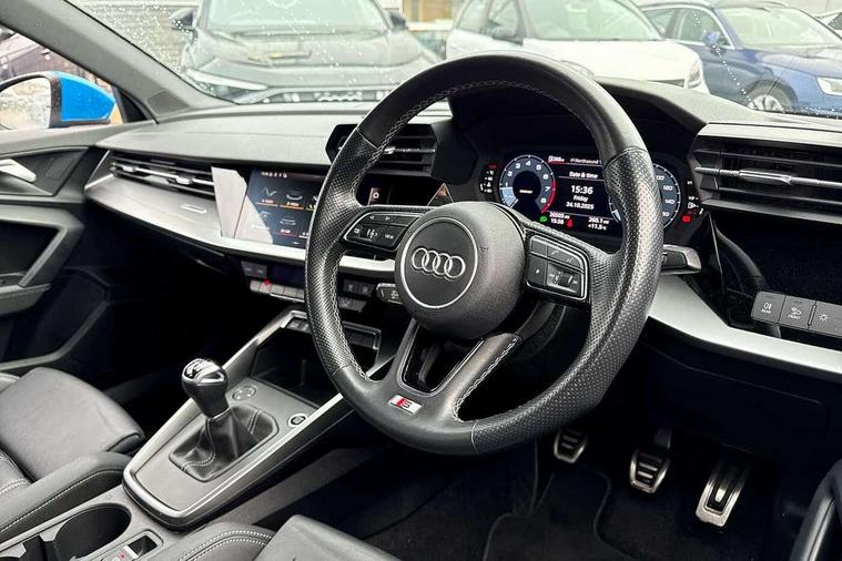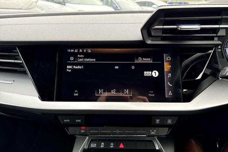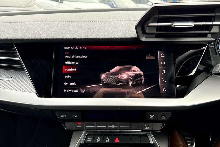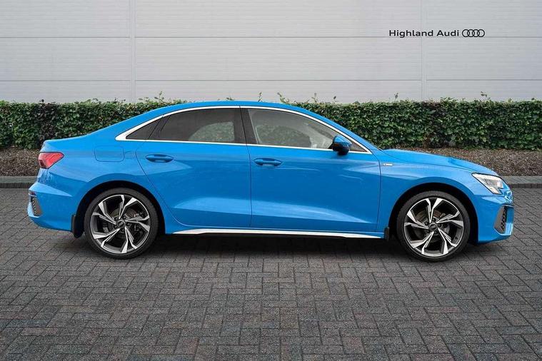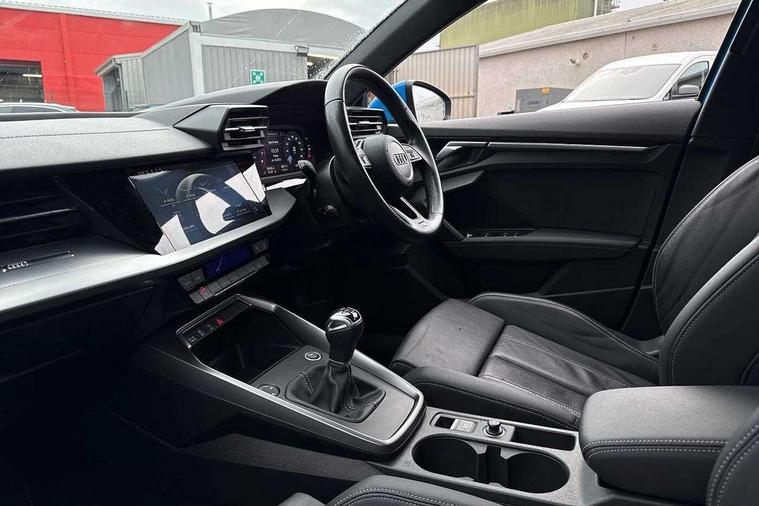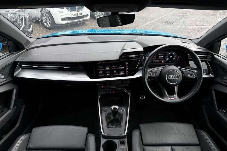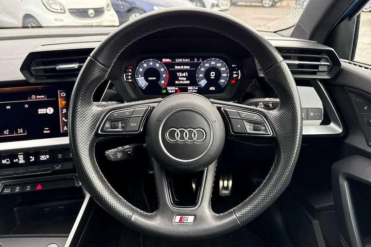 Audi connect emergency call and service, Audi drive select (Auto, Comfort, Dynamic, Efficiency and Individual), Audi smartphone interface, Audi Virtual Cockpit - 10.25" digital and colour instrument cluster, Automatic start/stop system with recuperation, Bluetooth interface, Collision avoidance assistant, Cruise control + speed limiter, Electromechanical power speed sensitive steering, Lane departure warning system, MMI Navigation Plus with high resolution 10.1" colour touch screen display, Rear parking sensors, Service indicator, Voice control system with natural language interaction, 2x USB Type C ports (for charging and data transfer), 6 passive loudspeakers, CD player, DAB Digital radio, 3rd brake light, Acoustic glass windscreen, Aluminium window trim, Auto dimming frameless rear view mirror, Electrically adjustable/heated/folding/auto dimming door mirrors with integrated LED indications + kerb view function for passenger side, Front electric windows, Illuminated door sills with aluminium inserts at the front with S logo, LED daytime running lights, LED headlights with LED rear lights and dynamic rear indicators, Light and rain sensors, Model and engine designation badges at rear, Privacy glass - dark tinted rear window, rear door and side windows, Rear boot, Rear electric windows, Rear side wing doors, S line bumpers, S roof spoiler, 12V socket and storage compartment in front centre console, 3 seat bench in 2nd row, 40/20/40 split folding rear seat bench with cupholder, Black cloth headlining, Dual zone electronic climate control, Front and rear centre armrest in leather, Front and rear headrests, Front/rear floor mats, Height and reach adjustable steering wheel, Illuminated vanity mirror, Interior lighting - glove compartment light and right hand side, Luggage compartment floor covering, Manual boot compartment lid, Manually adjustable front sport seats, Seat side bolsters, Single front passenger seat, Stainless steel pedals and front footrest in black, Twin leather upholstery with front sports seats S embossed logo, Aluminium interior elements pack - A3, S line styling pack - A3 Saloon, 3x3 point rear seat belts, Driver and front passenger airbag with passenger airbag deactivation, Electronic Stabilisation Control (ESC) including ABS, ASR and EDL, First aid kit with warning triangle and 2 safety vests, Front side airbags with head airbags and interaction airbag, Hill hold assist, Pre-sense front with pedestrian and cyclist detection, Seatbelt monitoring, Tyre pressure loss indicator, Anti theft alarm, Anti-theft wheel bolts, Immobiliser, Manual child locks, Remote control central locking, Aluminium air vent surrounds, Aluminium trim elements, Dark spectrum aluminium inlays, accent surfaces in the dashboard and centre console in platinum grey silk effect paint finish,