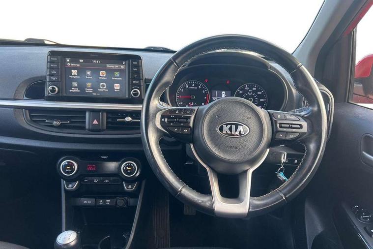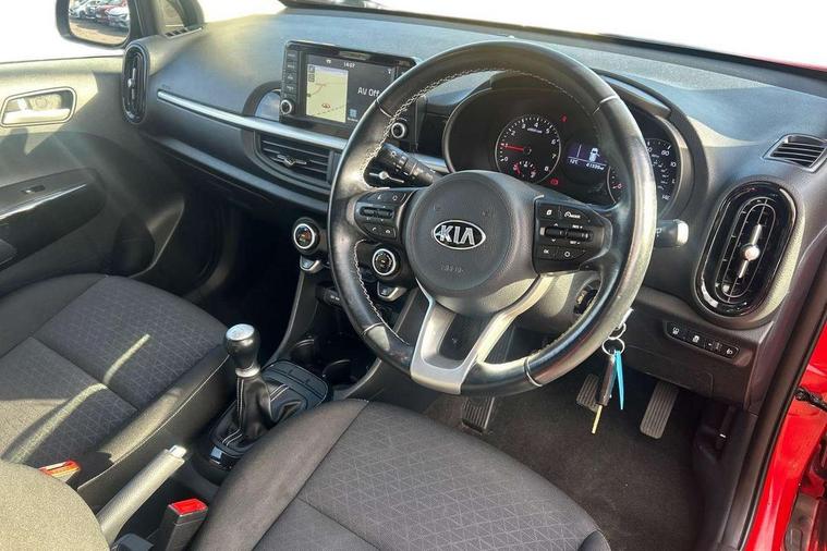 High gloss black centre fascia, 15" alloy wheels, Tyre repair kit, Anti theft alarm, Engine immobiliser, Folding key, Locking wheel nuts, Remote central door locking, Speed sensitive auto door locking, 6 speakers, Bluetooth connectivity including audio streaming, DAB Digital radio, Steering wheel mounted controls, USB and auxiliary socket, 3x3 point rear seatbelts, ABS/EBD, Automatic unlocking of doors in case of impact, Autonomous emergency braking, Curtain airbags, Dual front airbags, ESC + BAS + VSM + HAC, Front seatbelt pretensioners + load limiters, Front side airbags, Height adjustable front seatbelt anchors, Hill start assist, Passenger airbag deactivate switch, Rear child proof door locks, Seatbelt warning, Side impact protection, Traction control, Tyre pressure monitoring system, Automatic headlights, Black grille with chrome surround, Body colour bumpers, Body colour door mirrors, Chrome door handles, Day/night rear view mirror, Daytime running lights, Electric adjustable/heated/folding door mirrors, Front and rear electric windows, Front fog lights, Headlamp levelling, Heated rear window, Rear wash/wipe, Tinted glass, Variable front intermittent wipers, Welcome home function, 12V power point front, 60/40 split/folding 2nd row of seats, Assist grips, Automatic air conditioning, Centre console storage and sliding armrest, Coat hooks, Cupholders in centre console, Driver seat height adjust, Driver's sun visor with vanity mirror, Front interior light, Glovebox, Height adjustable front seat head restraints, Height adjustable rear seat head restraints (x2), Isofix child seat attachment, Leather steering wheel and gear knob, Load area light, Passenger front seat pockets, Passenger sunvisor with vanity mirror, Premium cloth upholstery, Rear parcel shelf, Silver interior door handles, Slide/reclining front seats, Tilt adjustable steering wheel, 7" touch screen, Apple car play/Android Auto, Cruise control + speed limiter, Digital clock, Emergency stop signalling system, External temperature gauge, Kia connected services, PAS, Rear parking sensors, Reversing camera, Satellite navigation system, Supervision cluster, Tachometer, Trip computer, Voice control system,