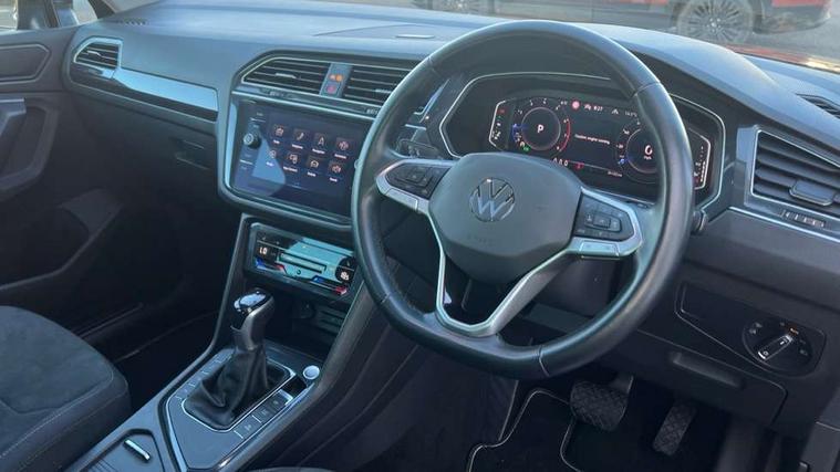 Adaptive cruise control ACC stop and go including speed limiter, App-Connect incl. App-Connect Wireless for Apple CarPlay and Android Auto, Bluetooth phone integration system, Digital Cockpit Pro - Active info display, Distance control assist, Driver alert system, Driver profile selection, Dynamic road sign display, eCall emergency call system, Electromechanical speed sensitive power steering, Front/rear Parking distance control, Lane keeping system Lane Assist, Lights on warning, Multifunction front facing camera, Outside temperature display, Premium multifunction display with multi colour display, Service interval indicator, Start/stop system with regenerative braking, Tailgate/trunk lid unlocking from outside, Warning sound and light for doors and tailgate open, Battery regeneration during braking, XDS electronic differential lock for improved traction and handling, 2 USB-C ports in the front, 1 USB-C charging socket on the center console in the rear, Diversity antenna for FM reception, Radio, SD card slot, Simultaneous pairing of 2 compatible mobile devices, SMS functionality - read, compose and send SMS messages using touch-screen display, Title and cover art display, Auto dimming interior rear view mirror, Automatic headlight control system, Body colour door handles, Body coloured bumpers, Coming/leaving home lighting function, Dynamic headlight range control, Front and rear electric windows, Heated rear window, High level 3rd brake light, IQ light with advanced high beam control and dynamic light assist for LED matrix headlamps + Dark red rear combination lamp in LED technology, Laminated safety glass windshield, heat and sound insulating, LED rear number plate lights, LED separate daytime running light, Poor weather light and cornering light, Power adjustable, folding and heated door mirrors with surround lighting, front passenger exterior mirror lowering function, Privacy glass for rear side windows and rear window, Rain sensor windscreen wipers, Rear exhaust tailpipe, Rear fog lamp, Rear windscreen washer and wiper with interval delay, Side and rear windows in heat insulating glass, Tilting and sliding panoramic sunroof with rear panoramic sunroof, Trailer Stability Programme, Windscreen wipers/ intermittent wipe + 4 position delay, 12V outlet in center console rear and in luggage compartment, 12V outlet in front and tray, 2 cup holders in front, 2 LED front reading lights, 2 LED rear reading lights, 3 rear headrests, 4 load lashing points, 40:20:40 split folding rear seats, Air Care Climatronic 3 zone automatic climate control with enhanced air filter and controls in the rear, Backrest release for left front seat, Door and side trim panel in foam film and woven fabric, Front + rear carpet mats, Front footwell illumination, Front seats head restraints (x-adjustment), Height adjustable front seats, Height/reach adjust steering wheel, Instrument lighting white adjustable panel illumination, Interior light with delay, Isofix Preparation 2 Rear child seats, Leather gear knob, Leather wrapped multifunction steering wheel with paddle shift, Lockable cooled glovebox, Luggage compartment lighting, Rear bench seat asymetrically split folding, longitudinally movable and folding with load-through hatch and center armrest, Remote unlocking for rear seat backrest, Removable luggage cover, Safety optimised front head restraints, Sliding/reclining rear seats, Standard rear seat release, Storage compartment in driver's door, Storage compartment in passenger's door, Storage compartment in rear doors, Storage compartments in luggage area left and right, Storage tray on dashboard, Sun visors with illuminated vanity mirrors, Tool kit, Variable boot floor, height adjustable and removable, Ambience pack - Tiguan, Chrome pack - Tiguan, Easy open and close pack with safelock - Tiguan, 3 point seat belt for centre rear seats, 3 point seat belts with seat belt pretensioners for the outer rear seats, Active bonnet, Curtain airbags for front and rear passengers, Driver/Front Passenger airbags, Drivers knee airbag, Electronic parking brake with auto hold, Electronic Stability Control with driver steering recommendation, ABS, ASR, EDL, EDTC and trailer stabilization, Front assist with autonomous emergency braking (for Adaptive Cruise Control ACC up to 130 mph), Front disc brakes, Front passenger airbag deactivation, Front side airbags, Height adjustable front 3 point seatbelts + pretensioners, Hill hold control, Pedestrian monitoring system, Rear disc brakes, Rigid safety cell with front and rear crumple zones, Two tone horn, Warning sound and light for front seat belts if unfastened, Warning triangle, Anti theft alarm system with interior monitoring, backup horn and towing protection, Anti theft wheel bolts, Central locking system with safelock radio remote control and 2 remote control folding keys, Electronic engine immobiliser,
