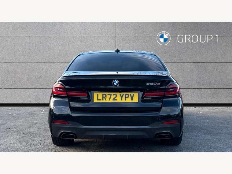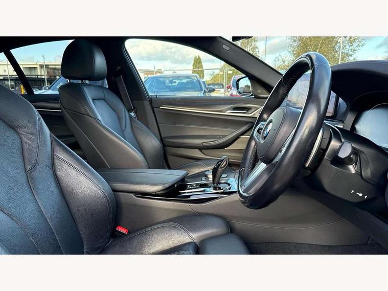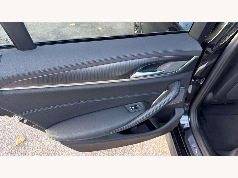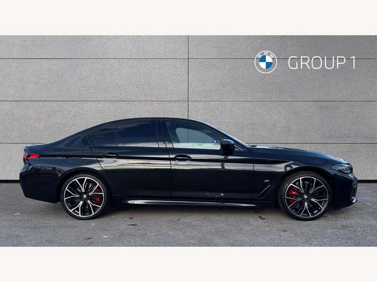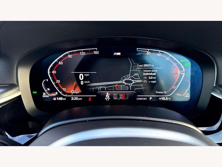 32GB hard disc drive (HDD) memory, Active Guard, Bluetooth connection, BMW ConnectedDrive online services, BMW Live Cockpit Professional sat nav system with 12.3" instrument display and high resolution control display, BMW Teleservices, Brake pad wear indicator, Cruise control with brake assist, Driving experience switch, eCall emergency call system, Electric Power Steering (EPS) with Servotronic, iDrive controller with shortcut buttons, Intelligent emergency call, Multifunctional instrument panel, Oil sensor for level and grade, On board computer inc. average speed, fuel consumption, liquid crystal Info display, journey computer, outside temperature display, personal profile, On-board diagnosis - OBD, Powered by Operating System 7.0, Service interval indicator, Speed limiting function, Stop/start button, 48V Mild hybrid technology, Diesel particulate filter, Drive performance control with ECO PRO comfort + sport mode, Engine cover with twin turbo designation, M sport suspension, Steptronic sport transmission with gearshift paddle switches on steering wheel, DAB Digital radio, Favourite buttons, Acoustic glazing, All round anti-corrosion system, Automatic windscreen wipers and automatic headlight, Automatically dimming rear view mirror, BMW Individual high gloss shadow line includes exterior mirror frame, window frame surround, B pillar finish, air breather in high gloss black, Body colour door handles, Body coloured bumpers, Door handle illumination, Dynamic brake lights with LED technology, Electric front and rear windows with fingertip open/close + anti-trap facility and comfort closing function, Electrically adjustable and heated exterior mirrors includes integrated direction indicators and automatic parking function, Folding exterior side mirror with auto- dimming, Follow me home headlight function, Heated windscreen washer jets, High gloss black active air stream kidney grille, LED daytime running lights, LED Headlights, LED third brake light, M designation on front side panels, left and right in chrome, M Sport exterior styling, Preparation for high beam assistant, Rear boot, Rear side wing doors, Trapezoidal visible exhaust tailpipes, 12V power socket in front and rear, 3 seat bench in 2nd row, Armrest - front and rear integrated door trim, centre console includes storage compartment, rear centre includes 2 cupholders, Child seat ISOFIX attachment with rear outer seats includes top tether, Cup holders (2 front and 2 rear), Front and rear footwell lights, Front reading lights, Height and length adjustable steering column and activation via lateral lever on the steering column, Lockable glove compartment with light, M door sill finishers, M specific pedals, M specific velour floor mats, Multifunction controls for leather steering wheel, Rear headrests, Single front passenger seat, Three spoke sport M leather steering wheel, Ambient lighting pack - 5 Series, Connected package professional - 5 Series, M Aerodynamic pack - 5 Series, Parking assistant pack - 5 Series, Airbags - driver/front passenger, rear and side, first and second row seats head airbags, front passenger seat airbag deactivation, Anti-lock braking system (ABS), Automatic Stability Control (ASC), Brake assist function, Brake energy regeneration, Cornering brake control (CBC), Crash sensor activating central locking release, hazard warning lights, fuel cut off and interior lighting, Deformation zones - front and rear with door reinforcements and bumpers up to 2.5 mph, DSC - Dynamic Stability Control, Dynamic brake control, Dynamic Traction Control - DTC, Electromechanical parking brake with automatic drive away release and auto hold function, Electronic brake force distribution, Engine drag torque control, Front and rear brake discs with interior ventilation, Front head restraints with anti-whiplash, Hill start assist, Mechanical child proof lock on rear doors, Passive protection for pedestrians, Rear door child safety locks, Side impact protection, Three point seat belts for all four seats, Two tone horn, Tyre pressure indicator, Warning triangle and first aid kit, Alarm system (Thatcham 1) with remote control and electronic engine immobiliser, Locking wheel bolts,