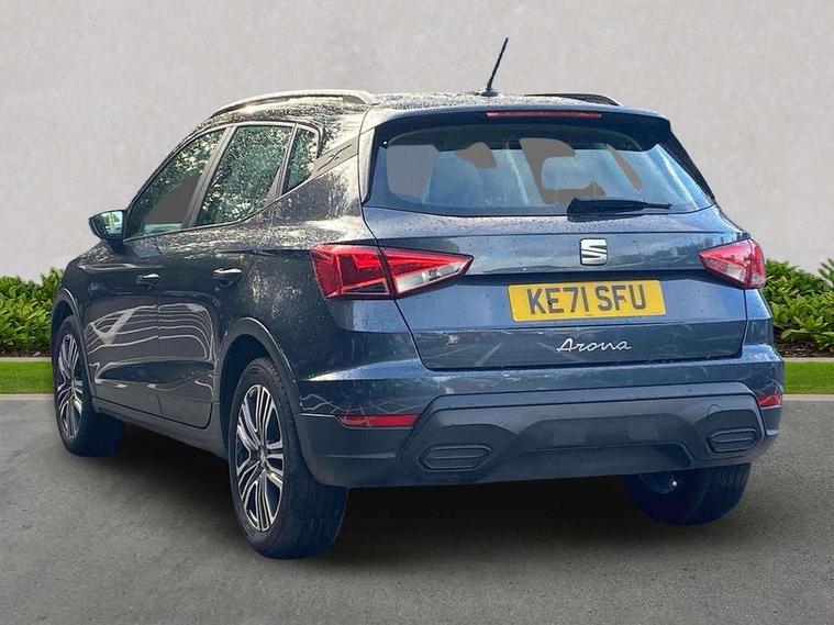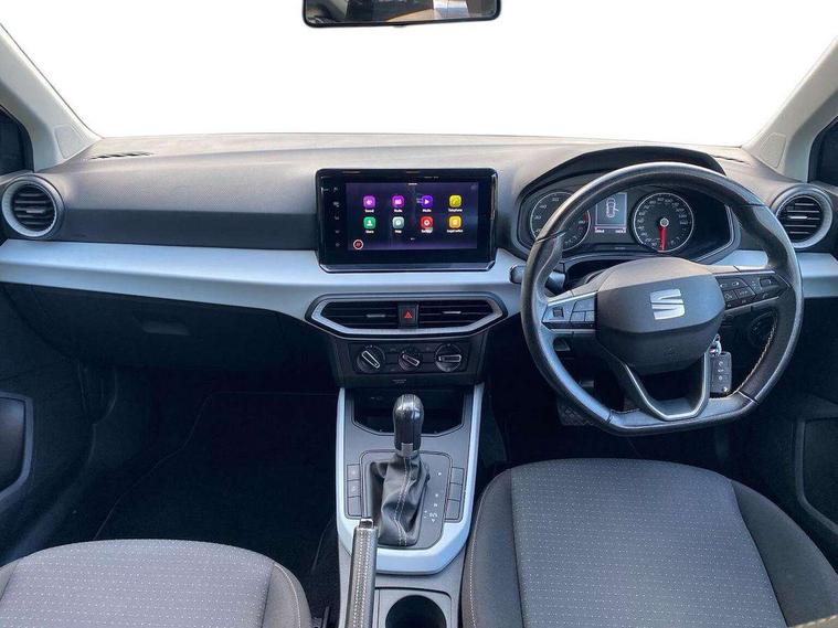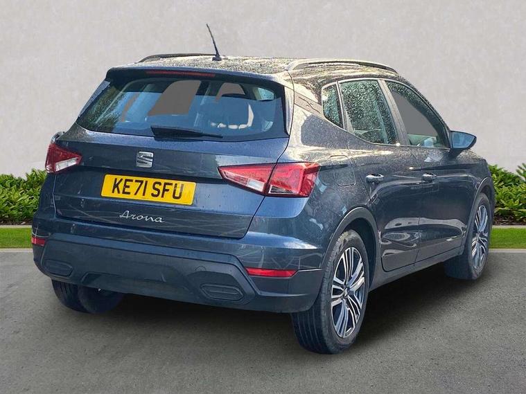 'Lights On' Reminder warning buzzer, Cruise control and speed limiter, Digital clock, Electric speed sensitive power steering, Full Link Smartphone Integration with Mirror Link, Apple Car Play, Google Android Auto with USB Type C cable for Apple and Android compatibility, Lane keeping system, Low fuel warning light, Outside temperature display, Rear parking sensor, RPM counter, Seat connect with safety, service, remote and online, Trip computer, Bluetooth interface for hands free and audio streaming, DAB digital radio and AM/FM radio, Steering wheel mounted audio controls, Anti theft roof antenna, Automatic activation of hazard warning lights, Black roof rails and window surrounds, Black window trims, Body coloured bumpers, Body coloured door handle inserts, Body coloured door mirrors, Dimming rear view mirror, ECO LED automatic headlights and LED daytime running lights, Electric adjustable door mirrors, Electric front/rear windows, Hidden exhaust pipe, Protective side mouldings, Rear spoiler, Rear window wash/wipe, Visible VIN plate, Windshield wiper with intermittent control and potentiometer, 2 cupholders, 60/40 split folding rear seat, Air conditioning, Cloth upholstery, Double boot floor, Driver sunvisor with covered mirror + card holder, Dust/pollen filter, Flat bottomed leather steering wheel/gear knob/handbrake, Front courtesy light with front reading lights, Gear shift indicator, Grey interior roof, Height adjustable front seats, Height/reach adjustable steering column, Honey mustatd coloured air vent, Illuminated boot, Instrument lighting with brightness control, ISOFIX points in outer rear seats with top tether anchorage points, Passenger sunvisor with vanity mirror, Two front and three rear height adjustable headrests, Connectivity pack plus - Arona, Interior chrome pack - Arona, 3 point seatbelts on all rear seats, ABS, Active front headrests, Child locks on rear doors, Driver and front passenger airbags with front passenger airbag de activation, front side and curtain airbags, Electronic stability control, Emergency Brake Assist (EBA) and front assist, Front and rear seatbelt reminder, Hill hold control, Multi-Collision braking, Tiredness recognition system, Traction control, Tyre pressure monitoring system, Electronic engine immobiliser, Locking wheel bolts, Remote central locking + deadlocks, Titan black dashboard, 17" Dynamic machined alloy wheels,