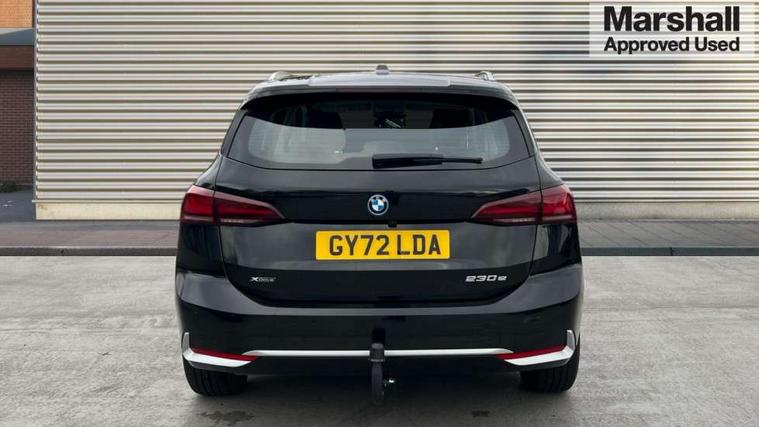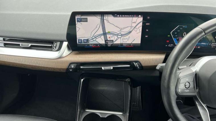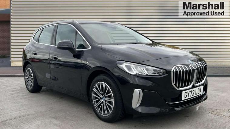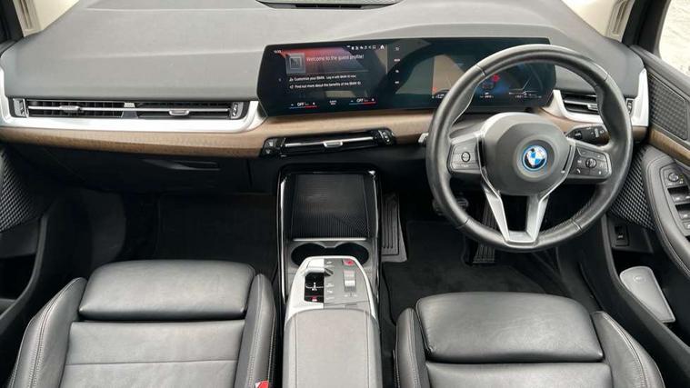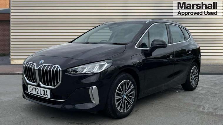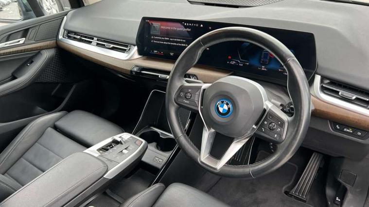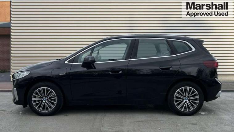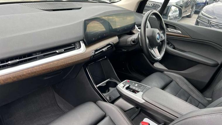 Active Guard incl speed limiting and lane departure functions with auto steering, and front collision warning with brake intervention, Automatic powered tailgate, Automatic start/stop function, BMW Iconic sounds electric, BMW Online services, BMW Teleservices, Brake pad wear indicator in front and rear, Condition based service, Drive off assistant, Flat air vents on instrument panel in high gloss black, adjustable slats with elements in pearl chrome, iDrive controller, Language version English, On board computer - average speed+fuel consumption, service interval, clock/date, odometer/trip meter, outside temperature display and ice warning, Parking assistant with active park distance control, reversing assistant, lateral parking aid and rear view camera, Servotronic variable electric power steering (EPS), Smartphone integration, Widescreen display, 45 Litre fuel tank, Drive performance control with ECO PRO comfort + sport mode, eDrive exterior sound, Flexible Fast Charger (Mode 2), Gear selector switch with toggle operation, Mode 3 charging cable, Petrol Particulate Filter, Standard suspension, Steptronic transmission with double clutch, 2x USB Type C ports in front centre console for charging and data transfer, 2x USB Type C ports in rear centre console for charging, DAB Digital radio, Welcome sound upon opening of the front driver or passenger door, Air inlet middle part on front apron in lines specific design with trim strip in satinised aluminium, Aluminium satinated roof rails, Automatic headlights, BMW emblem, engine compartment lid and tailgate, BMW Individual aluminium satinated exterior line, BMW radiator grille with grille struts, end face black high-gloss, radiator grille frame chrome high-gloss, Body colour roof mouldings, Body colour sill covers, Body coloured door mirror caps, Contoured rear roof spoiler in vehicle colour with side aeroblades in black high-gloss, Driver side exterior mirror lighting with BMW logo projection, Dynamic brake lights, Electric adjustable heated door mirrors, Electric windows - front and rear, with open/close fingertip control, anti-trap facility and comfort closing, Folding door handles integrated flush with surface, Front and rear windscreen wipers with heated front washer nozzles, Front bumper cover with air inlet trims for air curtains in matt black, Front bumper design elements in satinised aluminium, Front door exit lights, Front entry sills with aluminium inserts + BMW inscription, Front oramental grille with radiator grille bars in satinised aluminium, Heated rear window, Hidden exhaust pipe, LED Daytime running lights and parking lights with turn indicators, LED number plate light, LED third brake light in rear spoiler, Manual headlight range control, Model inscription on right tailgate, Rain sensor, Rear bumper cover with two L-shaped trims in Pearl chrome, Rear bumper trim strip in satinised aluminium, Rear side wing doors, Shark fin antenna, Trailer stabilisation logic, Visible VIN plate, Welcome lighting, Windscreen washer nozzle for rear view camera, 12V power socket in luggage compartment and front centre console, 12V socket in right side trim panel, 2 bag hooks in luggage compartment, 2 front reading lights, 2 open cup holders in front centre console, 3 seat bench in 2nd row, 40:20:40 split folding rear seat backrests, Ambient lighting front and rear, Automatic two zone climate control air conditioning, Bottle trays in all doors, Child seat ISOFIX attachment for two outer rear seats and front passenger seat with anchorage points, Driver and front passenger sports seats, Footrest and pedals in black plastic, Four grab handles integrated in roof lining, Front and rear door pockets, Front and rear footwell lighting, Front and rear side armrest integrated into door trim, Front and rear velour floor mats in anthracite, Front centre console storage compartment, Front head restraints, Glovebox with light, Heated front seats, Height adjustable 3 rear head restraints, Interior door handle recess light on all doors, Luggage compartment lighting, Map pockets, Mechanical rear seats with fore/aft adjustment, Multi-function controls for steering wheel, One piece parcel shelf opens together with tailgate and removable, Rear cloth hooks, Single front passenger seat, Steering wheel column manual adjustment, Storage compartment lighting in centre console and storage tray in centre stack, Storage compartment net in left side trim panel, Storage compartment with folding cover under centre console armrest cushion, Sunvisors with illuminated vanity mirrors, Three spoke sport leather steering wheel, Vernasca leather upholstery, Connected pack professional - 2 Series Active Tourer, 3 point seatbelts on all seats, front pyrotechnic belt tensioners, stopper and belt force limiters, rear coded belt buckles, Acoustic protection for pedestrians, Airbag - Front driver and passenger, front and rear head, front side, curtain head protection, manual deactivation of front passenger airbag possible, Anti lock braking system (ABS) with brake assist, Automatic hold function, BMW emergency call, Brake drying, Braking readiness, Child proof locking system in rear door, Cornering brake control, Crash Sensor - activates hazard/interior lighting + unlocks doors, DSC - Dynamic Stability Control, Dynamic brake control, Dynamic Traction Control - DTC, Electromechanical parking brake, Energy recovery system, Front disc brakes, Integrated braking system, PC iBrake PostCrash approach control warning with light braking function, Rear disc brakes, Tyre pressure monitoring system, Warning triangle and first aid kit, Anti theft alarm system, Closing system with central locking, Engine immobiliser, Locking wheel bolts, Front centre console trim in high gloss black with my mode expressive, BMW mobility tyre sealing system, Reduced rolling resistance tyres,