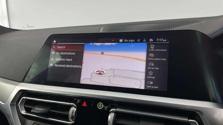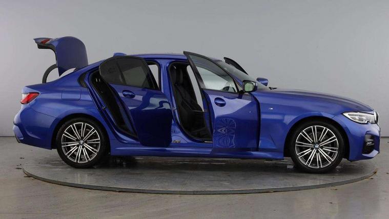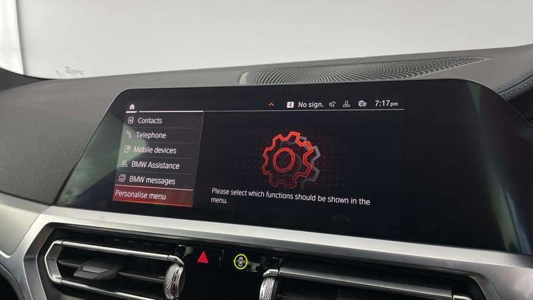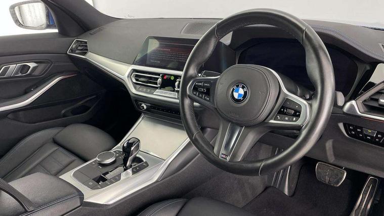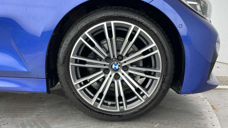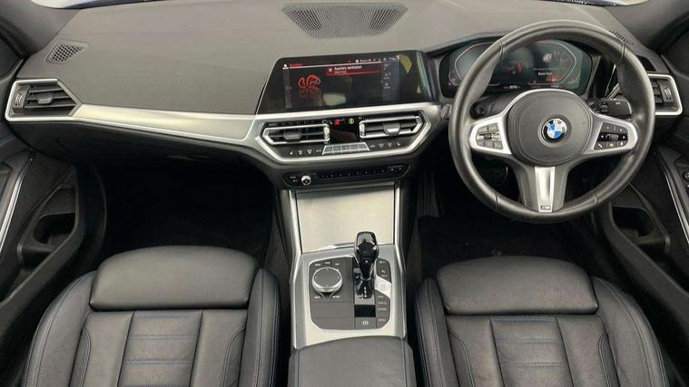 Active guard plus, Attentiveness assist, Auto start-stop, BMW Live Cockpit Professional Nav with 12.3" instrument display + 10.25" display, Intelligent Voice Assist, BMW OS 7, HDD, 2USB, 4G LTE connect, BMW service history, BMW Teleservices, Brake pad wear indicator in front and rear, Check Control warning system for monitoring of lights and door/luggage compartment open warning, Condition based service, Electric power steering with Servotronic steering optimised at all speed ranges, iDrive controller on centre console, Instrument cluster with speedometer with mph readout, tachometer, fuel gauge and oil temperature gauge, Integrated owners handbook, Oil sensor for level and grade, warning by check control system, On board computer - average speed+fuel consumption, service interval, clock/date, odometer/trip meter, outside temperature display and ice warning, Optimum shift indicator, Personal Profile - automatic lock when driving away selectable, Variable sport steering, 8 speed automatic steptronic transmission, Balanced 50/50 weight distribution, Battery cut-out switch, Drive performance control - ECO PRO, comfort and sport modes, Larger capacity fuel tank, M sport suspension, Petrol Particulate Filter, Stroke dependent dampers, DAB tuner, Electronic service booklet, Acoustic glazing, Automatic headlight beam throw control with load dependent regulating reaction, dynamic compensation of braking dive and acceleration squat, Black roof mouldings, Body colour door handles, Body colour fuel filler flap, Body colour mirror caps, Dynamic brake lights, Electric windows - front and rear, with open/close fingertip control, anti-trap facility and comfort closing, Exhaust tailpipe - split left and right, Exterior mirrors - electrically folding with anti-dazzle, Fading support, Front and rear bumper system with replaceable deformation elements, Front black door sill finishers with BMW designation, Green tinted heat protection glazing, High gloss shadow line exterior trim, Interior rear view electrochromatic mirror with automatic anti dazzle function, LED daytime running lights, LED front fog lights, Lightweight engineering, M designation on front side panels, left and right, Matt black exterior B pillar, Model designation on right side of tailgate, Rain sensor with automatic headlight activation, Shark fin antenna, Two part LED tailights in L-shape with components in smoked glass, brake light, LED turn indicator and rear fog light, Visible VIN plate, Welcome lights in interior and door handle area, Windscreen wipers with integrated washing jets, 12V power socket in front storage compartment, 2 front cupholder in centre console with clamping elements and matt black inlay, 3 rear seats with non folding headrests with 3 point seat belts, 3 zone automatic air conditioning, 4 pieces lashing eyelets in luggage compartment, 40:20:40 split folding rear seat with loading system, Ambient lighting with welcome carpet light, Anthracite headlining, Armrest integrated in front and rear door trim + front centre console armrest, Centred top Luggage compartment lights, Four grab handles integrated in roof lining, Front and rear door exit lighting (left / right), Front and rear door pockets, Front and rear reading lights, Front and rear velour floor mats, Front head restraints, Front sport seats, Heated driver and front passenger seats, Height adjustable mechanically and infinitely variable steering column, Illuminated armrest storage compartment, Illuminated glove compartment with separate small compartment, Interior lighting - front centre over interior mirror with soft light, rear centre and front and rear footwell lighting, M Sport multifunction leather steering wheel, Make-up mirror lights, Rear centre armrest with 2 cupholders, Rear centre console with storage compartment and ventilation grille, Sunvisors with vanity mirrors and ticket pocket, Toolkit located in luggage compartment, Connected pack professional - 3 Series Saloon/Touring, M Aerodynamics pack - 3 Series Saloon/Touring, 2 tone horn, BMW emergency call, Brake energy regeneration, Braking pre-tensioning, Child proof locking system in rear door, Child seat ISOFIX attachment rear outer seats, Coasting in idle in ECO PRO mode, Crash sensor activating of airbags, Unlocking doors, hazard warning lights, fuel cut off, interior lighting+activation of safety battery terminal clamp, Driver and front passenger side airbags, integrated in the door side seat backrest bolsters for all seat variants, Driver/Front Passenger airbags, Dry braking, Dynamic brake control, Dynamic stability control + (DSC+) - Anti-lock Braking System (ABS) with brake assist and cornering brake control + Automatic Stability Control (ASC), Dynamic Traction Control - DTC, Electromechanical parking brake including automatic hold function and automatic release of the parking brake when pulling away, Electronic differential lock control (EDLC), Front passenger manual airbag deactivation, Head airbags for all 4 outer seats, Hill start assist, Seat belt security check for driver and front passenger, Side impact protection, Three 3 point seat belts on all seats including front belt stopper, pyrotechnic belt tensioners and belt force limiters, Tyre pressure monitoring with three level warning strategy, Ventilated front and rear disc brakes, Warning triangle and first aid kit, Alarm system (Thatcham 1) with remote control and electronic engine immobiliser, Central locking switch for all doors, fuel filler cap and luggage compartment, Remote control with integrated key one button open/close vehicle and windows, sole opening of the luggage compartment lid and panic mode, Start/stop button with Comfort Go keyless engine start and auto Start/stop deactivation button, Vehicle key with M specific designation, Reduced rolling resistance tyres,