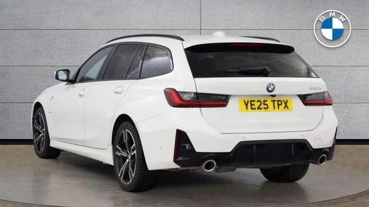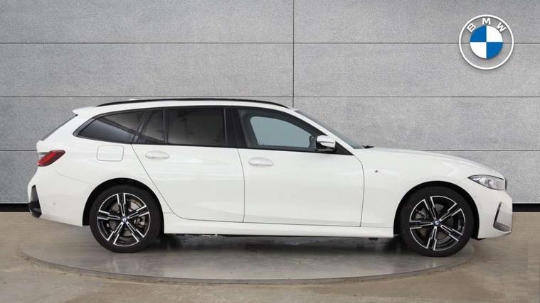 Active guard plus, Attentiveness assist, Automatic Start/stop button, Bluetooth Wi-Fi interface, BMW iDrive, BMW Teleservices, ConnectedDrive Services - last state call, Electric bootlid, Live cockpit plus with Navigation + 12.3" instrument display + 14.9" display, Intelligent voice assist, 2 USB, 4G LTE connect, Oil sensor for level and grade, Personal e-SIM, Shifting point display, Double joint spring strut front axle, Fuel tank breather system, Public mode 3 professional fast charging cable with 5m length, Steptronic Sport automatic transmission with steering wheel mounted gearshift paddles launch control and xtreme drive lever control, DAB tuner, 3rd brake light, Auto dimming rear view mirror, Automatic headlight beam throw control with load dependent regulating reaction, dynamic compensation of braking dive and acceleration squat, Bi-LED Low and high beam headlights, BMW emblem, engine compartment lid and tailgate, Body colour roof fin, Door sill strips, Electric windows - front and rear, with open/close fingertip control, anti-trap facility and comfort closing, Fading support, Follow me home headlight function, Front and rear bumper system with replaceable deformation elements, Front apron plastic in body colour, Fuel filler flap - right rear in body colour, Heat protection glazing on front windows and windscreen, Heated washer jets, High gloss chrome kidney frame with high gloss black kidney struts, High gloss shadow line roof rails, LED daytime running lights, LED rear lights, LED turn indicator, Licence plate panel integrated into front bumper and tailgate, M high gloss shadow line exterior trim, Matt black B-pillar finsher, Matt black window recess cover, Model designation on right side of tailgate, One piece front bumper cover including towing eye cover in body colour, Rain sensor with automatic headlight activation, Rear side wing doors, Rear wiper, Reversing lights, Side frame decorative moulding black matt, Trailer stabilisation logic, Visible exhaust tailpipe finisher, Welcome lights in interior and door handle area, 12V power socket in front storage compartment, 2 front cupholder in centre console with clamping elements and matt black inlay, 3 seat bench in 2nd row, 3 spoke M Sport multifunction flat bottom leather steering wheel, 3 zone automatic air conditioning, 40:20:40 split folding rear seat with loading system, Anthracite headlining, Armrest integrated in front and rear door trim + front centre console armrest, Battery in luggage compartment, BMW ID, Cruise control operation in steering wheel, Driving experience mode switch, Folding rear centre armrest with 2 cupholders, Front and rear headrests, Front and rear velour floor mats, Front reading light, Heated front seats, Height adjustable mechanically and infinitely variable steering column, Illuminated armrest storage compartment, Illuminated glove compartment, Illuminated luggage compartment, Lashing eyelets in luggage compartment, Single front passenger seat, Sunvisors with illuminated vanity mirrors and ticket pocket, Toolkit located in luggage compartment, Connected pack professional - 3 Series Saloon/Touring, Interior and exterior mirror pack - 3 Series Touring/Saloon, M sport exterior styling pack - 3 Series Saloon/Touring, Parking assistant pack - 3 Series, 3x3 point rear seatbelts, BMW emergency call, Child locks on rear doors, Crash sensor activating of airbags, Unlocking doors, hazard warning lights, interior light, safety battery terminal, Drive-off assistant, Driver and front passenger with seat occupancy detection for driver's and passenger side, Driver and passenger side airbags, body protection at side and airbags deploy from seat backrests, Dry braking, Dynamic brake control, Dynamic stability control + (DSC+) - Anti-lock Braking System (ABS) with brake assist and cornering brake control + Automatic Stability Control (ASC), Dynamic Traction Control - DTC, Electric parking brake including automatic hold function and automatic release of the parking brake when driving off, Electronic differential lock control (EDLC), Front airbag deactivation, Front airbags for driver and front passenger, Head airbags in 1st and 2nd row, head protection at side, curtain airbags open from headliner above 1st and 2nd row, Plastic fuel tank, Side impact protection, Tyre pressure sensors, Ventilated front and rear disc brakes, Warning triangle and first aid kit, Alarm system, Centre lock switch, Closing system with central locking, Electronic vehicle immobiliser, Locking wheel bolts, Tyre repair kit,