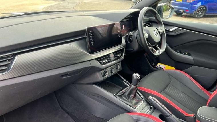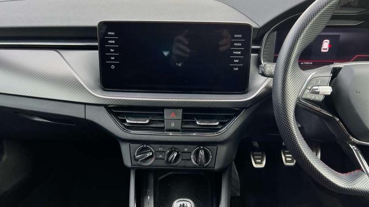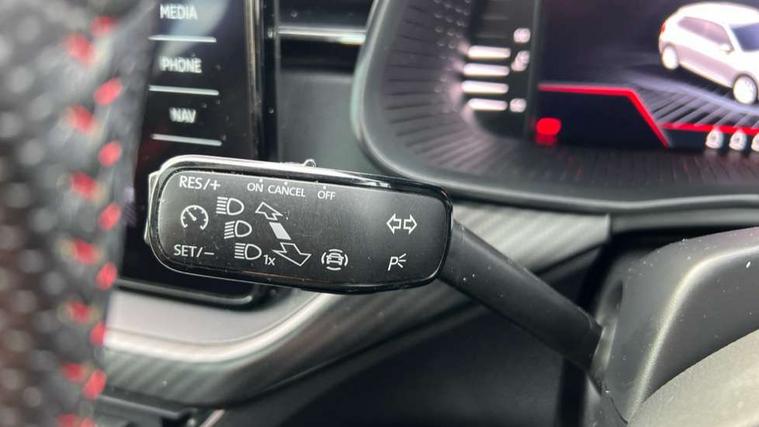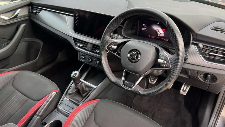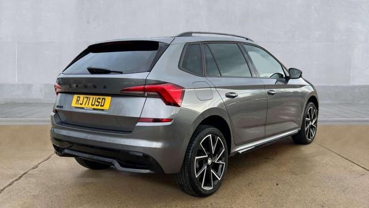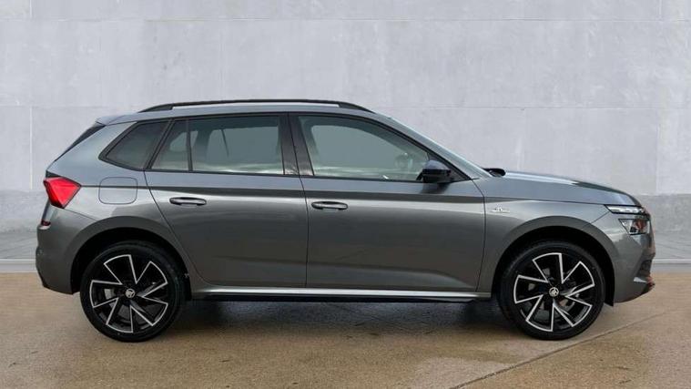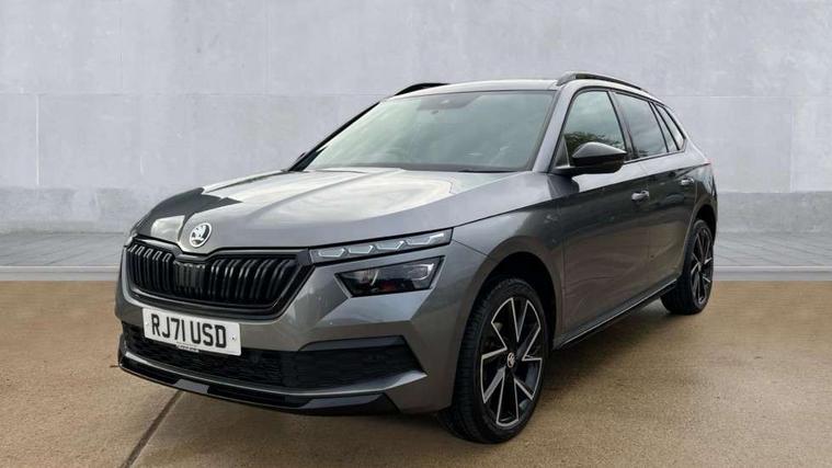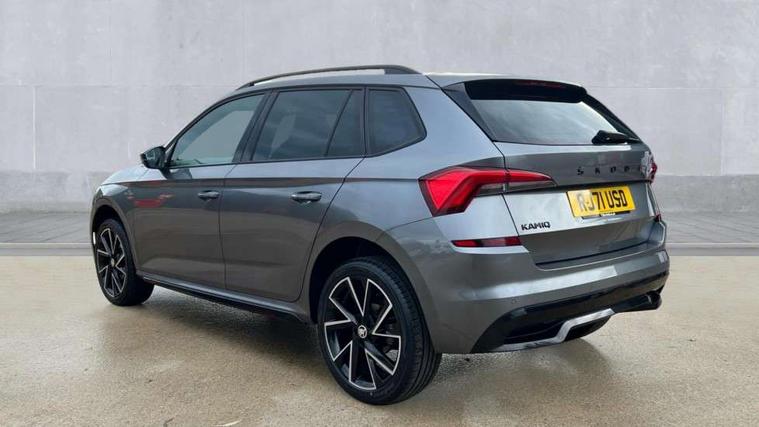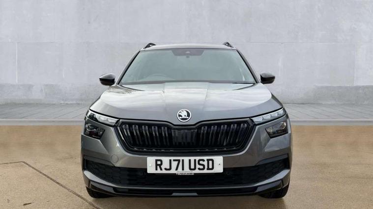 Amundsen satellite navigation with 9.2" touchscreen display, voice control, virtual cockpit and web radio, Bluetooth system, E-call, Front assist system, Gesture control, PAS, Service indicator, Speed limiter, Virtual cockpit with 10.25" display, Wireless SmartLink for apple car play, android auto and mirrorlink, 8 Speakers, Auxiliary input socket, DAB Digital radio, Black door mirrors, Black radiator grille, Black rear diffuser, Body colour bumpers, Body colour door handles, Body colour roof spoiler, Boot lettering in black, Chrome grille surround, Dimming rear view mirror with black surround, Electrically adjustable and heated door mirrors, Fixed panoramic sunroof with black roof rails, Front and rear electric windows, Front sport bumper, Full LED headlights with adaptive front light system, dynamic indicators, cornering function and fog lights, Headlight range control, Heated rear window, High functionality rear led lights with dynamic indicators, KAMIQ Door sills, Light sensors, Monte carlo plaque, Privacy glass, Rear fog lights, Rear side wing doors, Rear wiper, 12V Accessory socket in centre console, 3 seat bench in 2nd row, Aluminium pedals, Black ceiling for black/beige interior, Chrome inner door handles, Cloth upholstery, Front head restraints, Glove compartment with illumination, Ice scraper, Isofix child seat fittings on outer rear seats, ISOFIX on front passenger seat, Leather gear lever, Manual lumbar support for front seats, Rake/reach adjustable steering wheel, Reading lights, Single front passenger seat, Sports seats, Sun visors with illumination on front passenger, Textile floor mats, Third rear headrest, Top tether for front passenger seat, Umbrella in driver's door, 3x3 point rear seatbelts, Airbags - driver and front passenger, ESP, Front passenger airbag deactivation switch, Front side airbags with curtain airbags, Hill hold control, Manual parking brake, Manual rear child locks, One tone horn, Rear disc brakes, Seatbelt reminder for driver an co-driver, Traction control, Tyre pressure monitor, Anti-theft alarm system with interior monitoring, backup horn, towing protection and remote central locking with SAFE system, Anti-theft wheel bolts, Electronic engine immobilizer, Chrome air vent surrounds, 18" Vega alloy wheels in black,