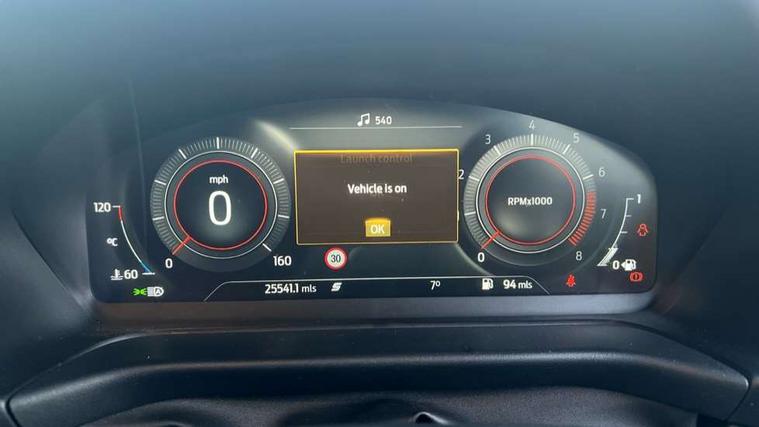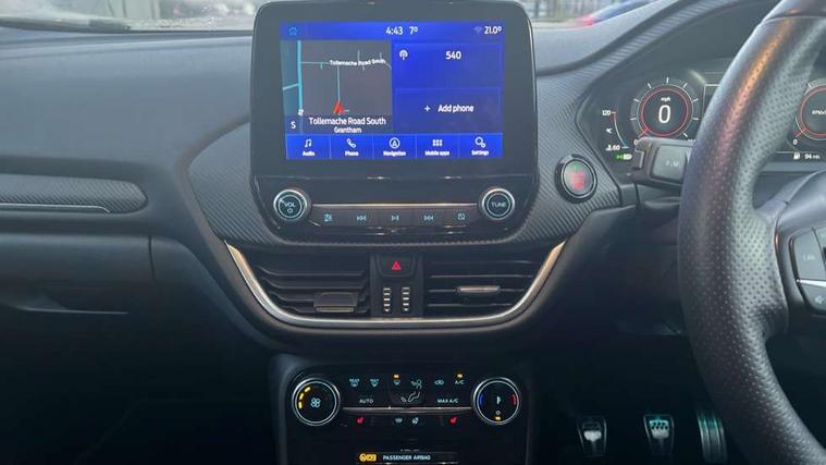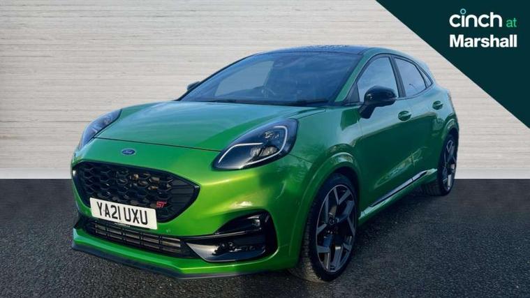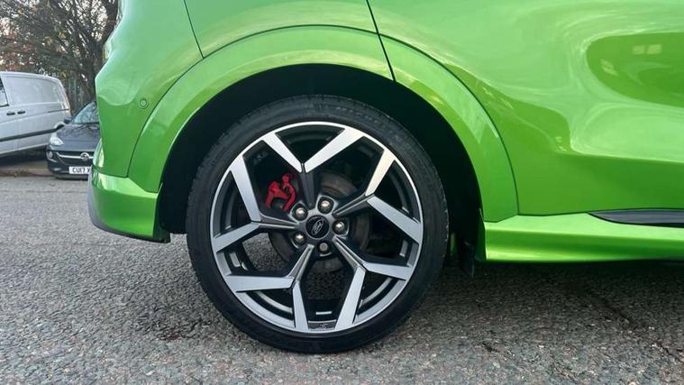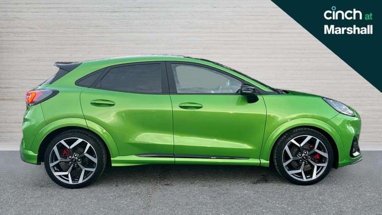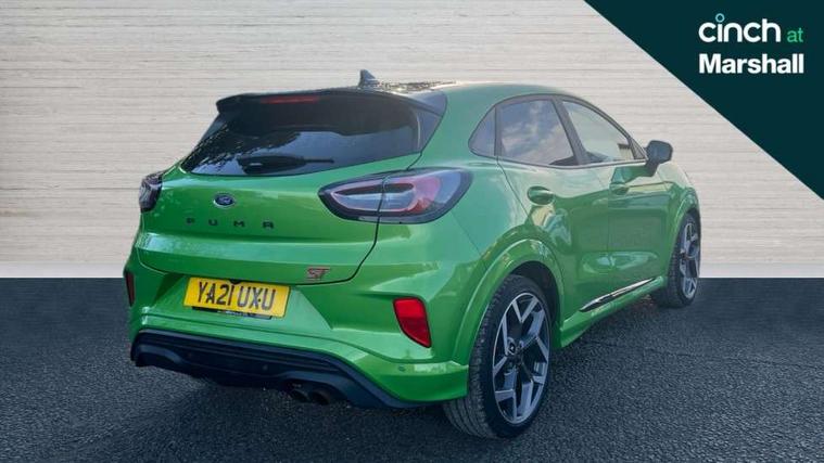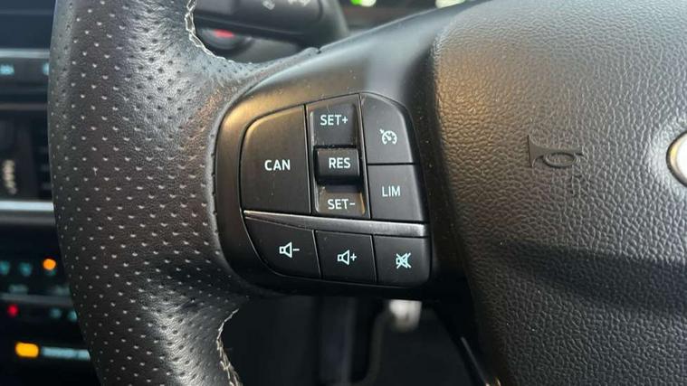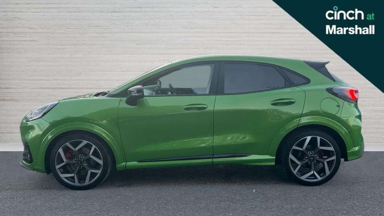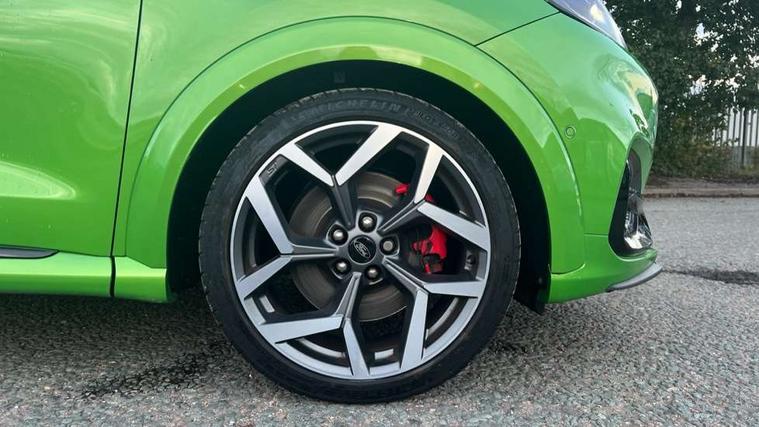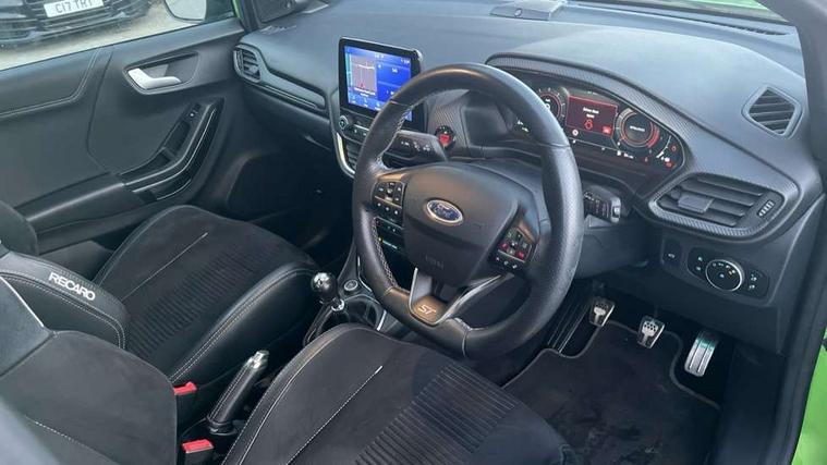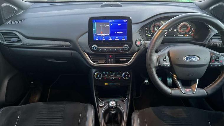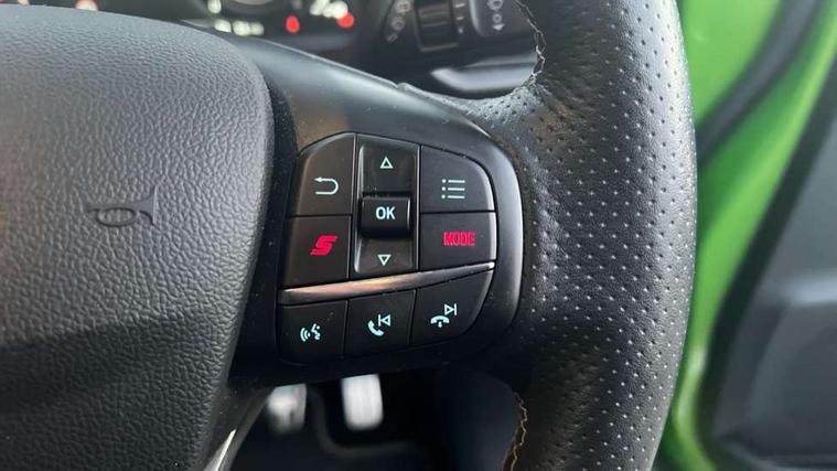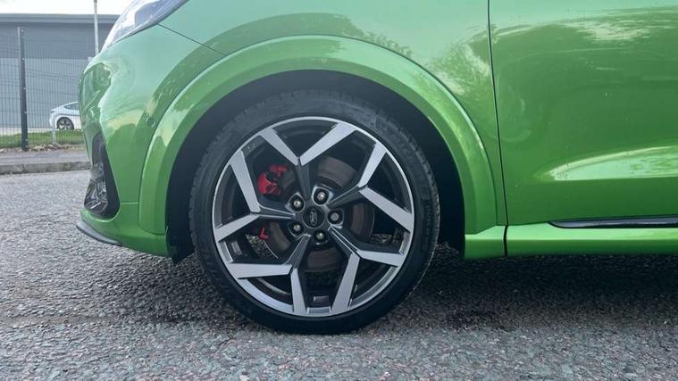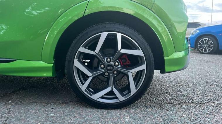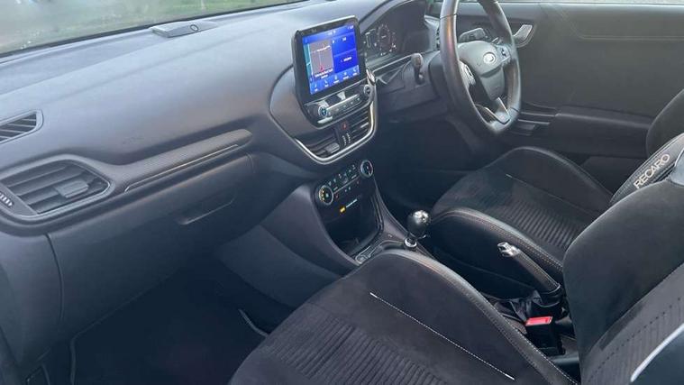 Cruise control, Ford easy fuel, Front parking sensor, Full digital 12.3" instrument cluster, Lane keeping aid with lane departure warning, Power assist steering, Power start button, Rear parking sensor, Selectable drive modes (normal, sport, eco, track), Wireless charging pad, Engine sound enhancer, ST suspension, Automatic headlights with rain sensing wipers and auto high beam, Black door mirrors, Dual chrome exhaust, Fixed LED headlamps, Front fog lights with cornering lights and LED rear lamps, Gloss black with chrome elements on front and rear bumpers, High chrome waistline, LED daytime running lights, Power foldable heated door mirrors with puddle lamps, Privacy glass to side rear windows and tailgate glass, Quickclear heated windscreen, Rear wiper, ST scuff plates, Unique ST elements to front and rear body styling kit including Ford Performance embossed splitter, Alloy sports pedals, Centre console with armrest and stowage, Ford megabox extended bootspace, Front and rear floor mats, Front and rear head restraints, Heated front seats, Heated steering wheel, Lumbar massage for driver and passenger, Manual air conditioning, Premium sensico wrapped instrument cluster, Recaro sport seats partial leather upholstery, ST flat bottomed steering wheel with metal grey stitching, ST logo projection, Unique ST gear shift knob, Wireless charging pad with electronic air temperature control (EATC), B&O Premium Audio system + Ford SYNC 3 navigation pack - Puma, 3 rear seatbelts, Electronic stability control (ESC) and hill start assist, Pre-collision assist with autonomous emergency braking, pedestrian/cyclist detection & post-collision braking, Red brake calipers, Tyre pressure monitoring system (TPMS), Thatcham alarm, Carbon look interior deco spears, Tyre inflation kit,