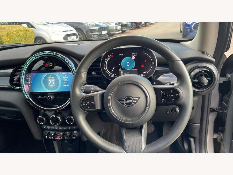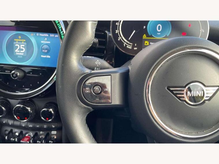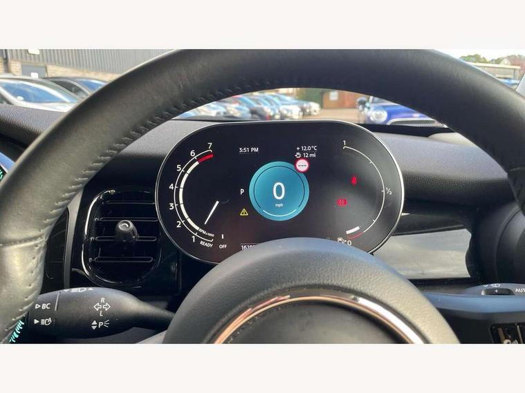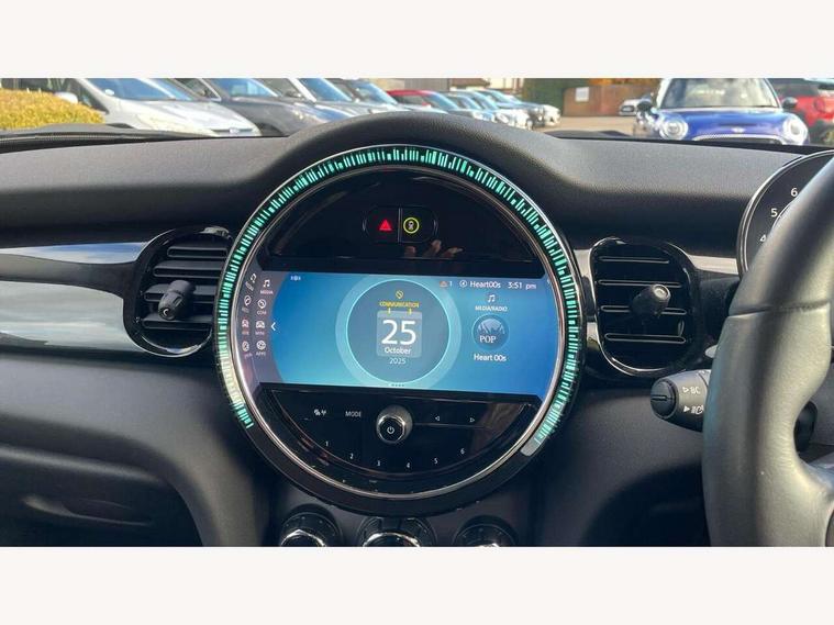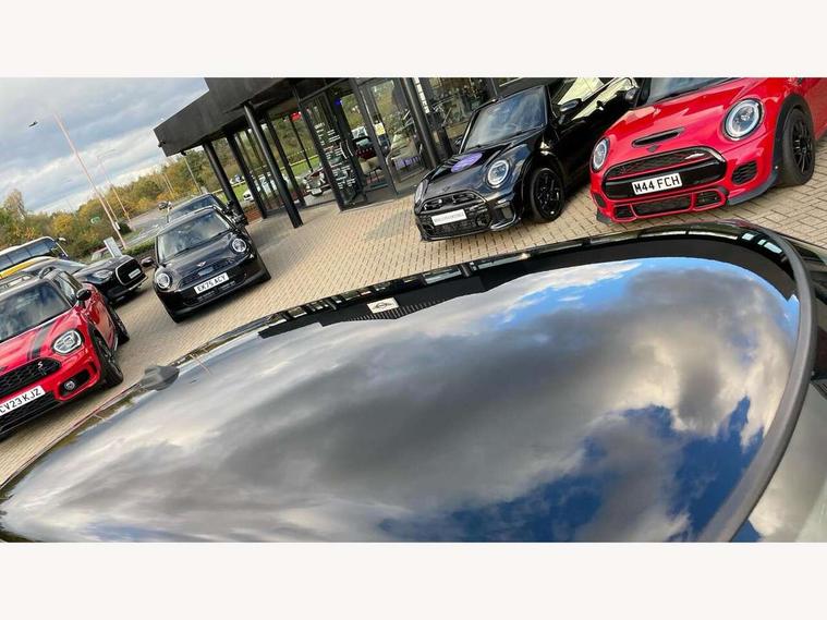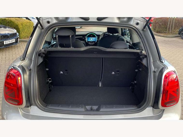 Apple CarPlay, Automatic start/stop function with brake energy recuperation, Compatible mobile phone bluetooth with audio streaming, Cruise control with brake assist, Electro-mechanical speed dependant steering assistance, Flexible car sharing preparation, Instrument cluster, Mini E-call, MINI TeleServices, On board computer, Service interval indicator, Double Vanos system, Fully variable valve control, High precision injection, Performance Control, Steptronic transmission with double clutch, 8.8" touchscreen with LED ring, FM tuner and DAB digital radio, 3rd brake light, Automatic headlight activation switch, Body colour fuel filler cap, Chrome border high gloss black slats radiator grille, Dynamic brake lights, Electric front windows, Exhaust tailpipe on left with chrome finisher, Heated rear window, Heated windscreen washer jets, LED headlight with closed ring and daytime driving lights, Metal door sill strips with MINI imprint, Model logo Cooper on right of tailgate, Rain sensor window wipers, Rear fog lights, Rear LED lights with union jack design, Rear window wiper, Side scuttle panel with integrated indicator, Sun/heat protection glass, White indicator lenses, 12V Accessory socket in centre console, 2 seat bench in 2nd row, 4 lashing eyes in luggage compartment, 60/40 split folding rear seat, Ambient lighting, Carbon black colour line - Knee roll and door armrest, Chrome interior highlights, Cupholders, Front and rear head restraints, Front and rear isofix with front passenger airbag deactivation, Front floor mats in velour, Glove compartment, Height and length steering column adjustment, Interior lighting with 12 different colours across the dashboard, underneath door bezel with illuminated laser-engraved design on central display, Leatherette gearshift lever and handbrake gaiters, LED reading lights, vanity mirror lights, front foot well light and spotlight on front seats, Manual air conditioning, Mechanical seat adjustment - forward/back & backrest for front seats and driver seat height adjust, Multifunction steering wheel, Passenger seat height adjuster, Satellite grey headlining including grab handles and clothes hooks, Single front passenger seat, Sport leather steering wheel with speed limiter and audio/communication controls, Storage compartments in doors, Sunvisors with vanity mirrors, 3 point seatbelts on all four seats, 6 Airbags - front, side, head and seat belt tensioners, Anti-lock braking system (ABS), DSC - Dynamic Stability Control, Front and rear disc brakes, Single tone fanfare horn, Tyre pressure monitoring system, Alarm system with tilt sensor, monitoring doors, bonnet interior and tailgate, Electronic vehicle immobiliser, Start/stop toggle with keyless go, Piano black interior trim, Tool kit, Tyre repair kit,