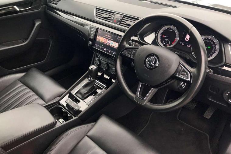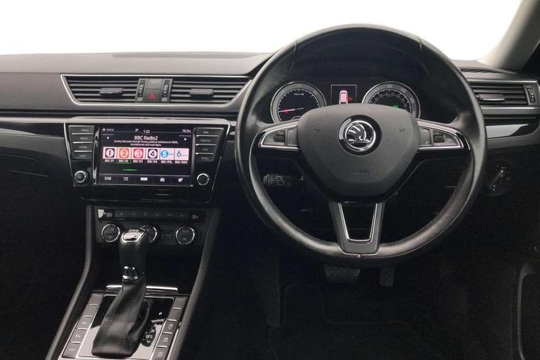 Adaptive cruise control, Apple car play/Android Auto, CareConnect and Emergency Call, Columbus colour 9.2" touch screen satellite navigation system, Radio/MP3/aux-in/USB, DVD, SD card and Wi-fi, Drive mode selector, Dynamic steering response (DSR), Electro-mechanical PAS, External temperature gauge, Fatigue detection system, Front assistant collision mitigation, Lane change assist and blind spot monitor, Mirror link, Multifunction colour trip computer, Park assist (inc front/rear parking sensors), Power boot opening and closing, Remote fuel cap release, Service interval indicator, SmartLink, Speed warning indicator, Voice control system, Diesel particulate filter, Dynamic chassis control, XDS electronic differential lock, Canton sound system, DAB Digital radio, Aero wiper + intermittent function, Auto dimming rear view mirror, Bi-Xenon headlights with AFS + integrated headlight washers + LED daytime running lights, Body colour bumpers, Body colour door mirrors and handles, Chrome plated radiator grille, Cornering front fog lights, Electrically adjustable/heated/folding door mirrors with puddle lights/Integrated indicators and memory function, Front and rear electric windows, Heated windscreen, LED brake lights, Privacy glass, Rain sensor, Rear wiper, Silver roof rails, 12v power point in centre console, 12V power point in luggage area, 3 rear height adjustable headrests, 3 Spoke leather multi function steering wheel, Boot net, Electric front seats including lumbar adjustment + memory + auto dimming door mirrors, Front armrest with storage box, Front/rear floor mats, Heated front and rear seats, Height/reach adjust steering wheel, Height/tilt adjustable front headrests, Illuminated air conditioned glovebox, Isofix on 2nd row rear seats, Leather gearknob and handbrake lever, Leather upholstery, Luggage compartment lighting, Rear centre armrest with cupholders, Removable LED light in boot, Split folding rear seats, Sunglasses storage, Ticket holder, Tri zone climate control, Virtual pedal for boot opening, LED package plus - Superb, LED rear pack - superb, 3 point height adj front seatbelts + pretensioners, 3 rear 3 point seatbelts + pretensioners, ABS + EDL + ASR + MSR + ESC, Cornering brake control (CBC), Curtain airbags, Door open warning, Driver and passenger seatbelts with warning light, Driver/Front Passenger airbags, Driver/front passenger side airbags, Drivers knee airbag, Electronic parking brake, Hill hold control, Hydraulic Brake Assist (HBA), Multi-Collision braking, Passenger airbag deactivate switch, Rear door child safety locks, Tyre pressure monitor, Anti theft alarm with interior monitor and tilt sensor, Anti-theft wheel bolts, Immobiliser, Keyless entry and start, Remote central locking with SAFE system, Piano black inserts,