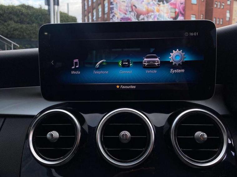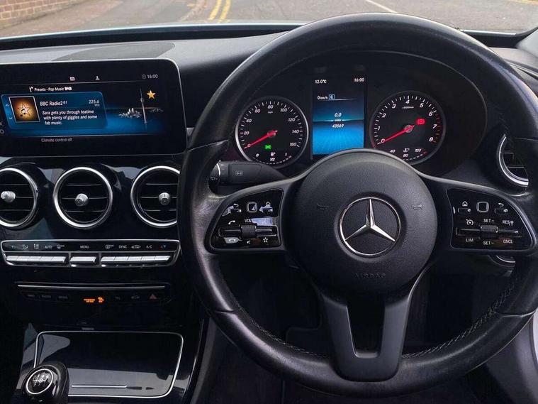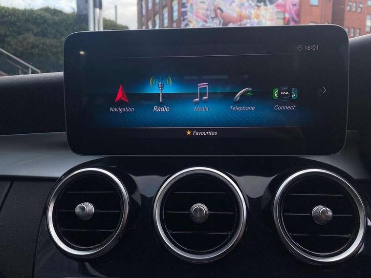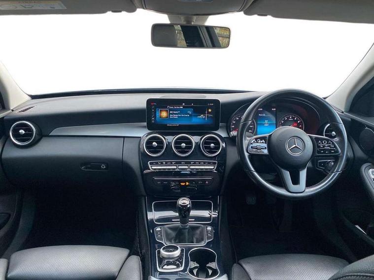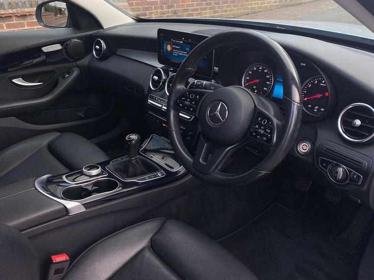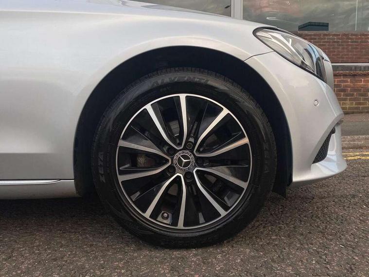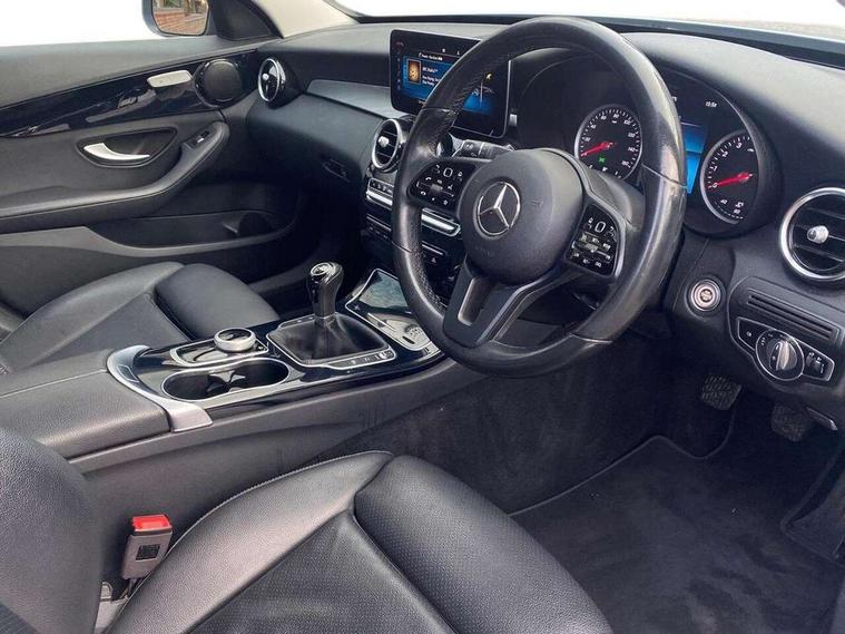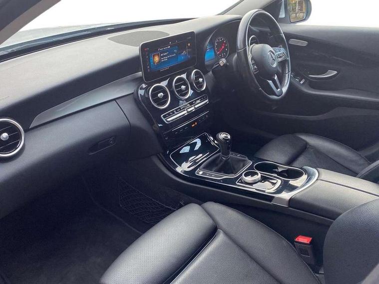 Active park assist with parktronic system, Attention assist, Collision prevention assist plus, Colour display - 10.25" colour display screen, Cruise control with speedtronic variable speed limiter, Direct steer speed sensitive steering, DYNAMIC SELECT with a choice of driving modes (ECO, Comfort, Sport, Sport+ and Individual), Instrument cluster with two tube design round dials and 5.5" TFT multifuction display, Mercedes connect me, Multi function trip computer, Outside temperature gauge, Remote boot release, Reversing camera, SD card based satellite navigation system, Service indicator (ASSYST), Status display for rear seat belts in instrument cluster, 66 litre fuel tank, Agility control comfort suspension, Petrol Particulate Filter, 2 USB ports and one SD card slot centre console, Audio 20 with integrated media interface and bluetooth handsfree function, DAB Digital radio, Frontbass loudspeakers, Steering wheel mounted audio controls, Adaptive brake lights, Automatically dimming rear view mirror and driver's exterior mirror, Body coloured bumpers, Body coloured door mirrors, Electric windows with one touch opening/closing and obstruction sensors, Electrically adjustable and heated door mirrors, Green tinted glass, Halogen headlights, Heated windscreen washers, LED daytime running lights, LED Indicators, LED third brake light, Part LED tail light, Radiator grille with integral star and 2 louvres in matt iridium silver, Radio aerial integrated into rear window, Rain sensor windscreen wipers, Side windows surround in matt black, 2 cupholders in front centre console, 3 spoke multi function leather steering wheel with perforated leather grip, 40:20:40 split folding rear seats, Artico man-made leather gear lever gaiter, Artico man-made leather upholstery, Auto Mercedes-Benz child seat recognition sensor, Black floor mats, Dual zone automatic climate control, Front and rear head restraints, Front centre armrest with storage compartment, Front door sills with Mercedes Benz lettering, Gear lever with high gloss black insert, Heated front seats, Height/reach adjustable steering column, Illuminated glovebox, Rear top tether child seat ISOFIX attachment, Lighting pack - C class, Mirror pack - C Class, Seat comfort pack - C Class, Stowage space pack - C Class, 3 rear 3 point seatbelts, Active bonnet, Adaptive brake system with HOLD function and brake drying in the wet, Anti-lock braking system (ABS), Black seat belts, Child proof door locks, Drivers knee airbag, Drivers pelvis airbag, Dual stage driver/passenger airbags, Electronic parking brake, ESP with ASR, Front passenger seat occupancy sensor, Front side airbags, Hill start assist, Rear seatbelt warning indicator, Tyre pressure monitoring system, Warning triangle and first aid kit, Window airbags, Alarm system/interior protection/immobiliser, Central locking with interior switch, automatic locking and crash sensor with emergency opening function, Chrome surround in electric key, Black high gloss trim, 17" 5 spoke light alloy wheels painted in high-gloss black with a high-sheen finish, TIREFIT with tyre inflation compressor,