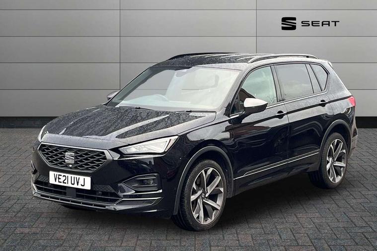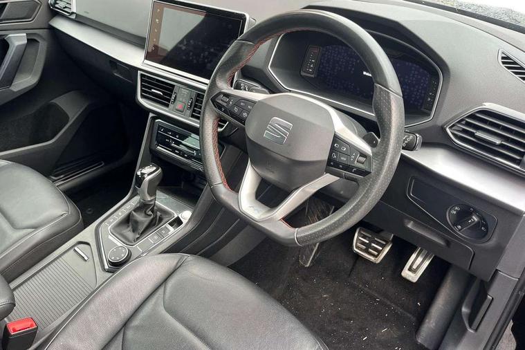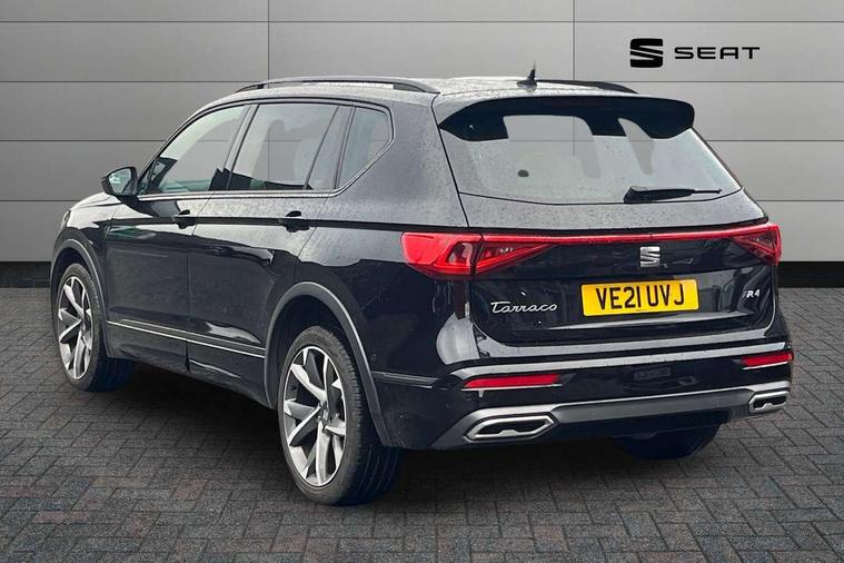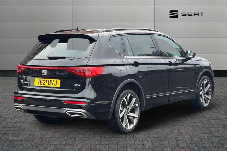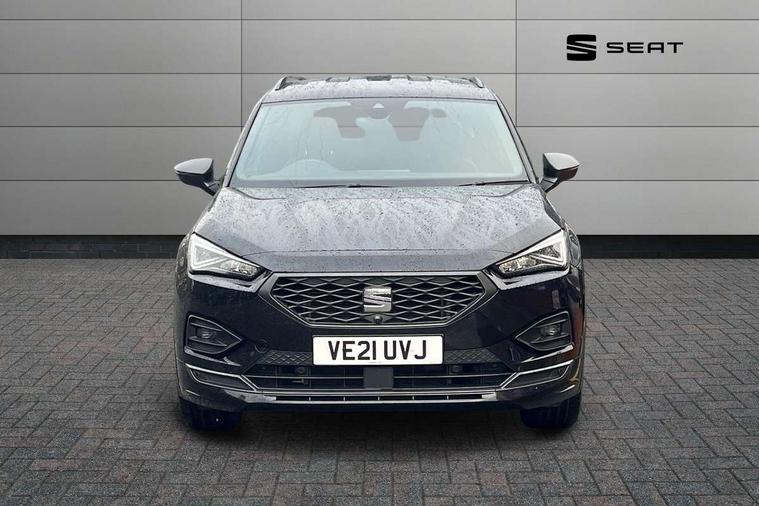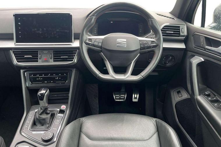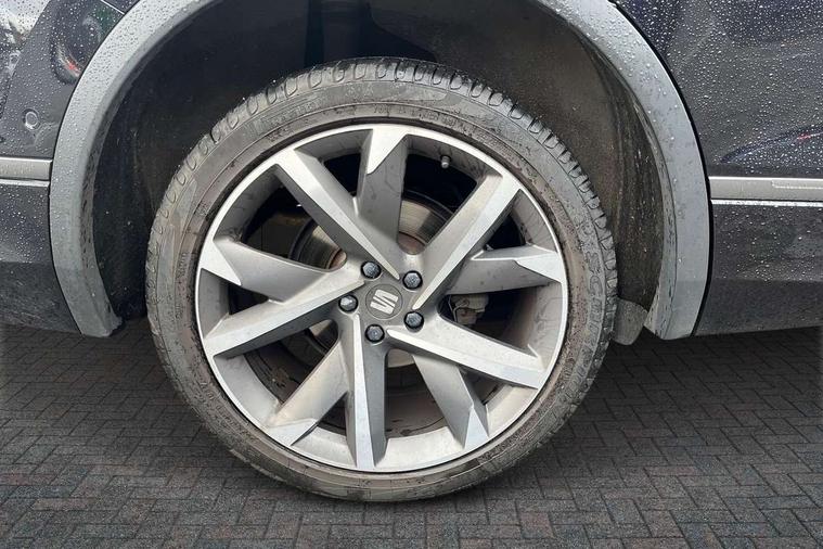 'Lights On' Reminder warning buzzer, 10.25" digital cockpit, Adaptive cruise control with speed limiter, Bluetooth audio streaming with handsfree system, Digital clock, Digital cockpit, e-Call (emergency call), Front assist city emergency braking and pedestrian protection, Full Link Wireless Smartphone Integration with Mirror Link, Apple Car Play, Lane assist, Low fuel warning light, Outside temperature gauge, PAS, Rear view camera, RPM counter, Seat connect with safety, serivice, remote and online, SEAT Drive profile-4 different modes, progressive steering, 4Drive versions with off-road/snow, steering response, throttle response, gear shifts mode, Self parking functionality (includes front and rear parking sensors), Top view camera, Trip computer, Wash water level indicator, Comfort suspension, Sports rear shock absorption, XDS electronic differential lock, Navigation system with 9.2" colour touchscreen with proximity sensor, 3D Map display, DAB, AM/FM Radio, 3 USB (type C), Aux-in, 8 speakers, SD card, Steering wheel mounted audio/telephone controls, USB (type C) cable for Apple and Android compatibility, Auto dimming rear view mirror, Auto headlights with automatic coming and leaving home function, Automatic headlight adjustment, Black bumpers, Black door mirrors, Black roof rails, Black window trims, Body coloured side skirts, Coast to coast lighting, Dark tinted rear windows, Dynamic rear indicators, Electric adjustable/heated/folding door mirrors with memory, Electric front/rear windows, Exterior black mouldings, Front grille frame in black, Front halogen fog lights with cornering function, Fuel door linked to central locking, Full LED headlights with LED rear lights, Illuminated aluminium front door sill with trim logo, LED daytime running lights, LED licence plate lighting, Rain sensing wipers, Rear fog lights, Rear spoiler, Rear wash/wipe, Sports bumpers, Twin exhaust pipes, Welcome lighting, 3 zone climate control, Ambient spot lighting and front footwell illumination, Black interior roof, Centre armrest in front with air outlet in rear, Driver and passenger sunvisor with covered and illuminated mirror, Driver's electric lumbar adjustment, Easy fold rear seat system - second and third row, Electric driver's seat with memory, Folding table on front seat backrests, Forward and backward adjustable seats 2nd row, Four cargo rings in the boot, Front bucket seats, Front cupholders, Front passenger seat lumbar adjustment, Front seat back storage pockets, Gear shift indicator, Height adjustable front headrests, Height adjustable passenger seat, Illuminated boot, Illuminated glovebox, Instrument lighting with brightness control, ISOFIX points in outer 2nd row seats and front passenger seat with top tether anchorage points, Leather gear knob, Leather upholstery with sports seats, Leather wrapped multifunction steering wheel, Luggage compartment floor with split function, Rear armrest and easy back seat release mechanism from boot, Rear headrests, Sliding boot cover, Sports steering wheel, Storage compartment in roof console for sunglasses, Storage draw under front passenger seat, Three 12V sockets, Tool kit, White ambient lighting in front and rear door panels + LED lights in interior door handles, Winter pack - Tarraco, 3x3 point rear seatbelts, ABS, Active front head restraints, Driver/front passenger airbag, Drivers knee airbag, Electronic parking brake with auto hold, Electronic stability control, Front passenger airbag deactivation, Front side airbags, Hill hold control, Seatbelt reminders for all seats, Tiredness recognition system, Traction control, Two curtain airbags, Tyre pressure monitoring system, Alarm, Keyless enter and go with electric tailgate with virtual pedal, Locking wheel bolts, Power locking and remote control with two foldable keys and opening boot selector, Remote control central locking, Chrome interior detailing - door and dashboard decorative inserts, 20" 'Cosmo' Grey machined alloys wheels,